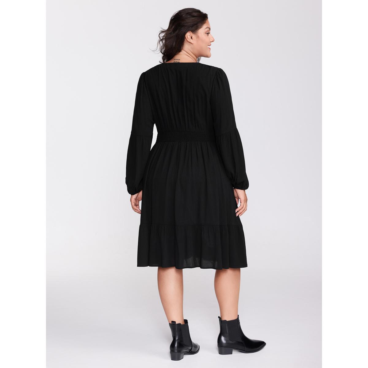 Plus Size Supersoft Essentials Solid Button Detail Dress Black Women Casual Plain Round Neck Long Sleeve Curvy Midi Dress BloomChic 30/6X