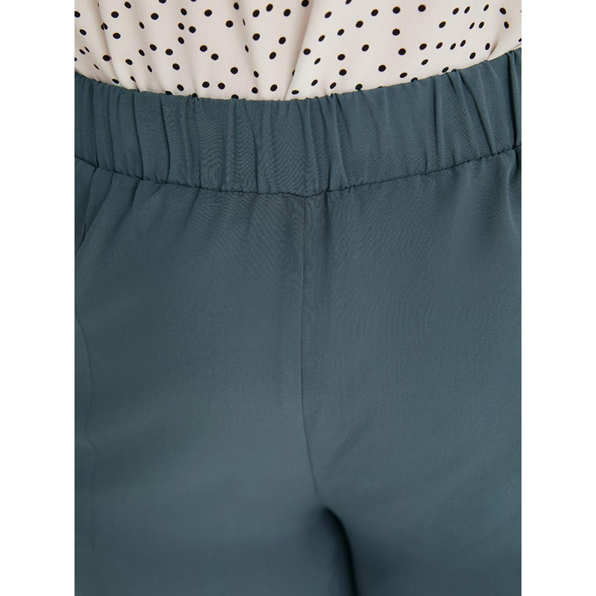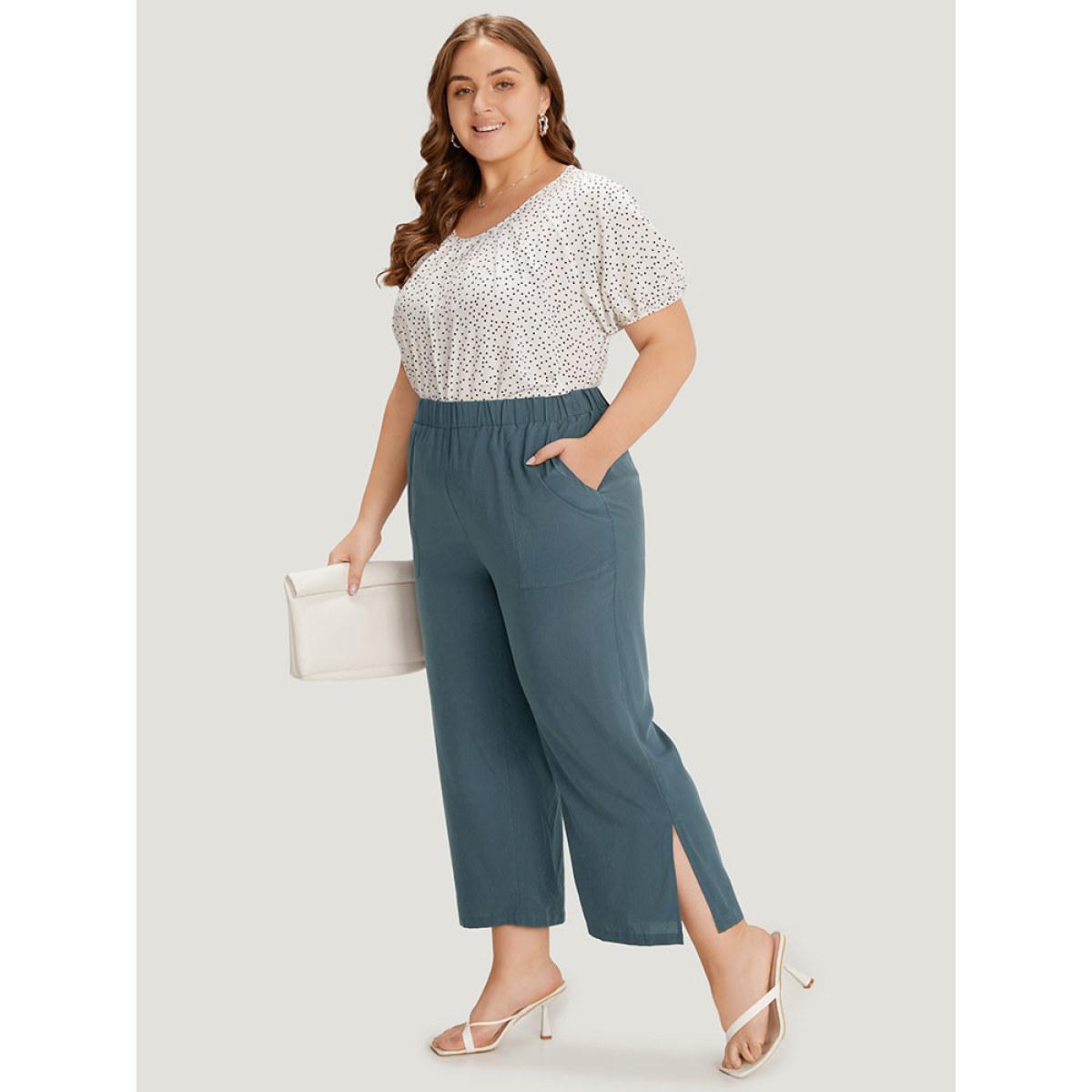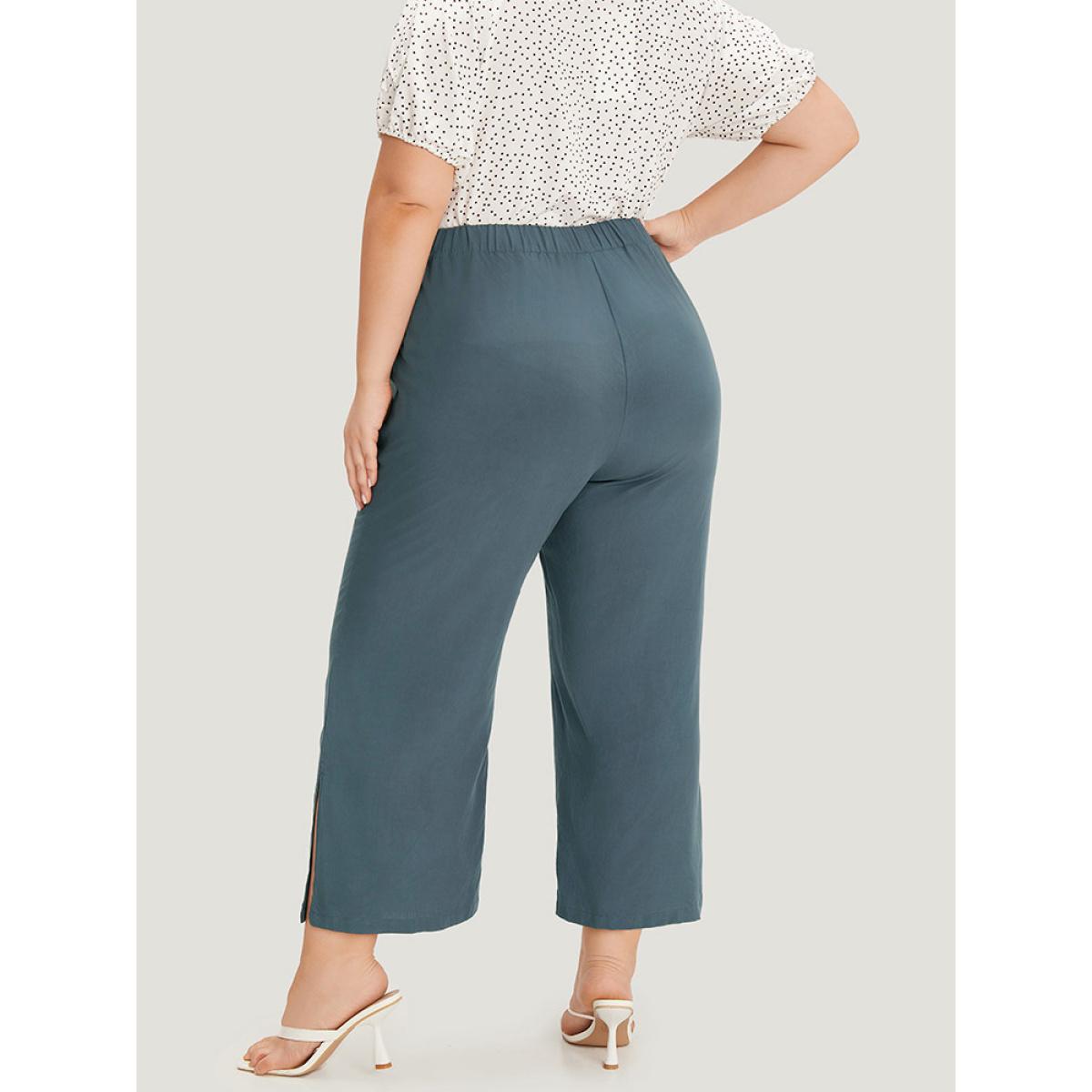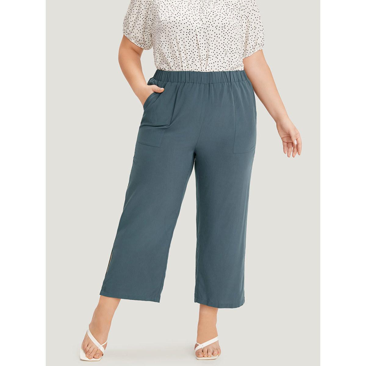 Plus Size Supersoft Essentials Solid Patched Pocket Split Side Pants Women Indigo Elegant Straight Leg High Rise Dailywear Pants BloomChic 30/6X