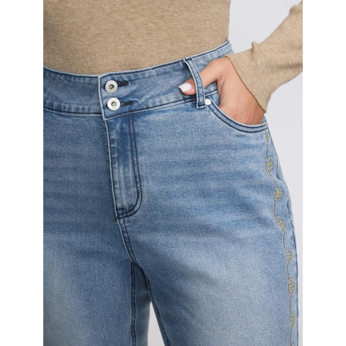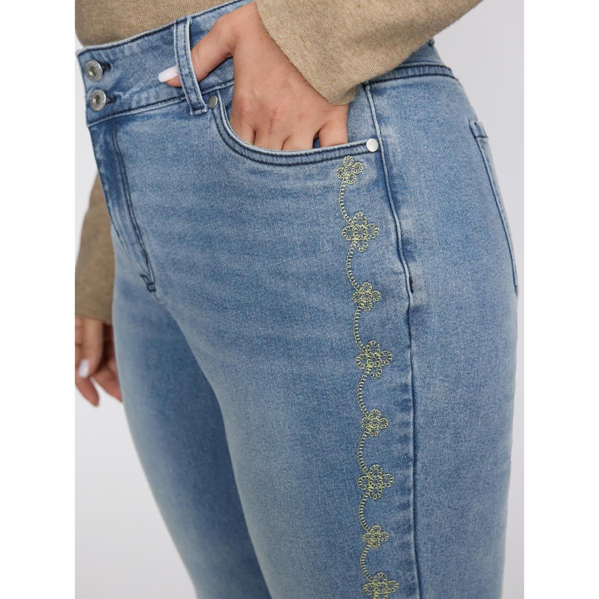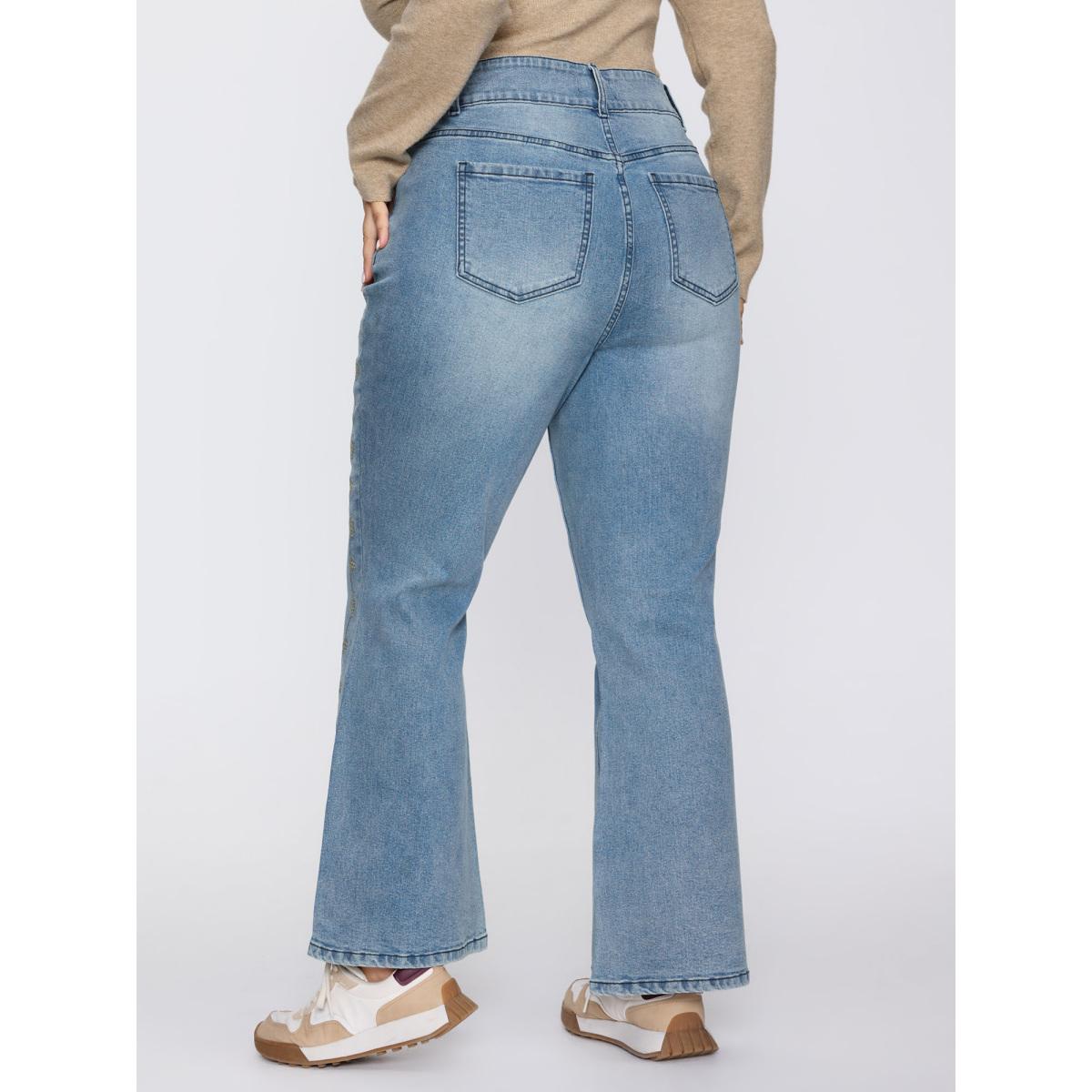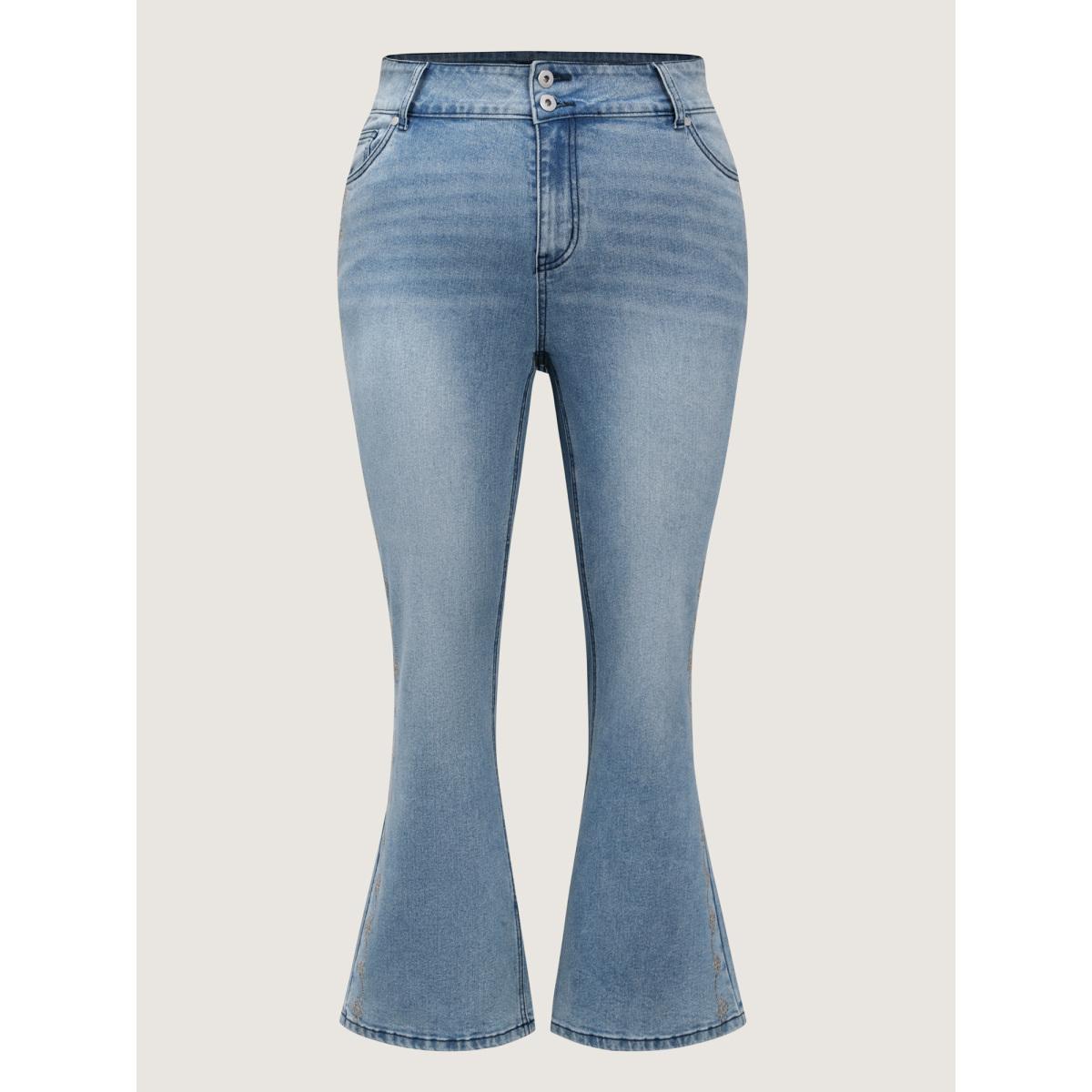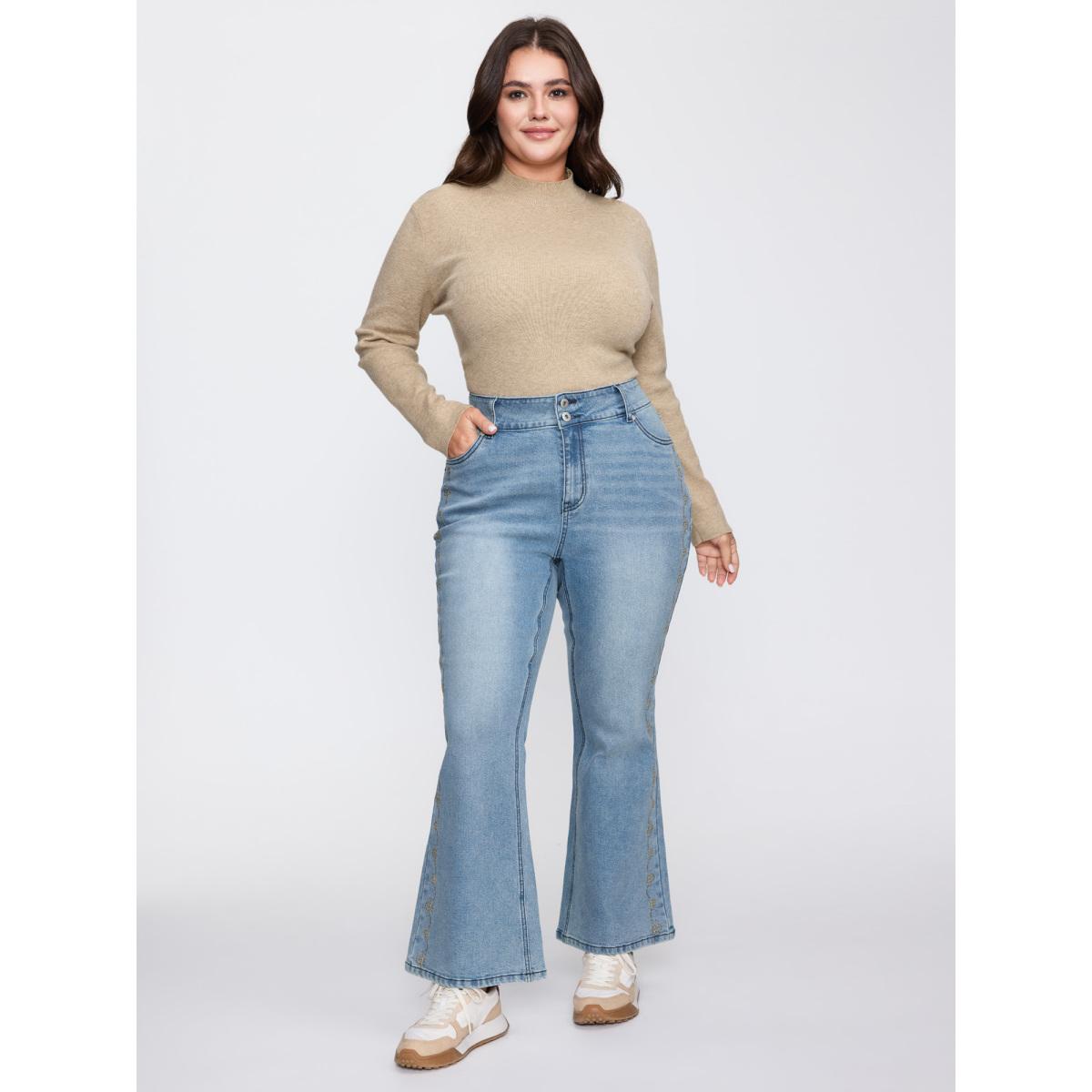 Plus Size Supersoft Floral Embroidered Flared Hem Jeans Women Denimindigo Leisure Embroidered High stretch Slanted pocket Jeans BloomChic 16/1X