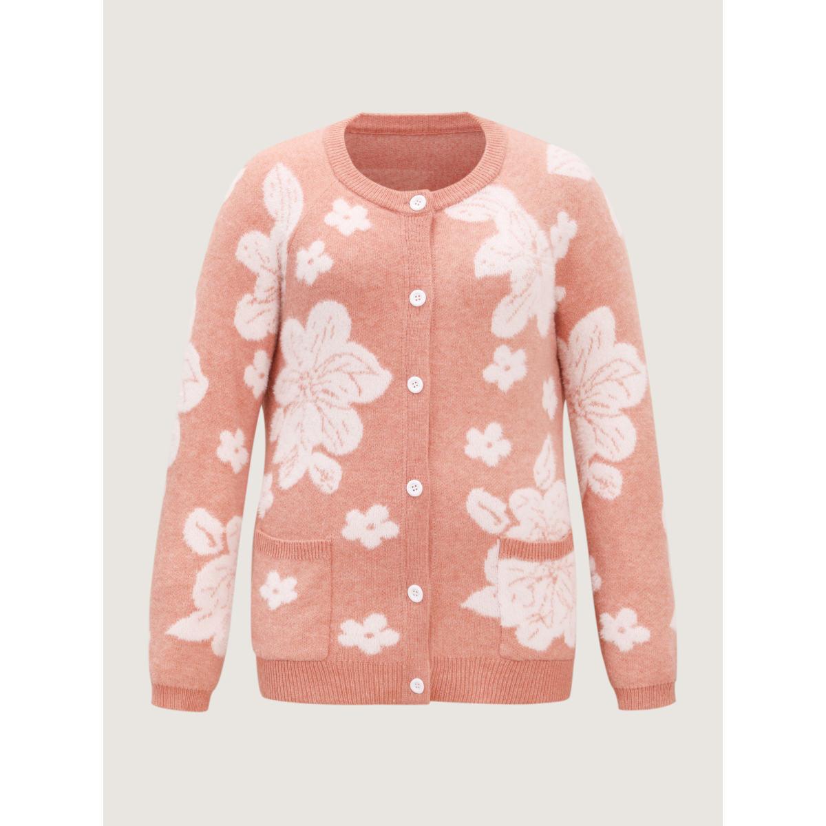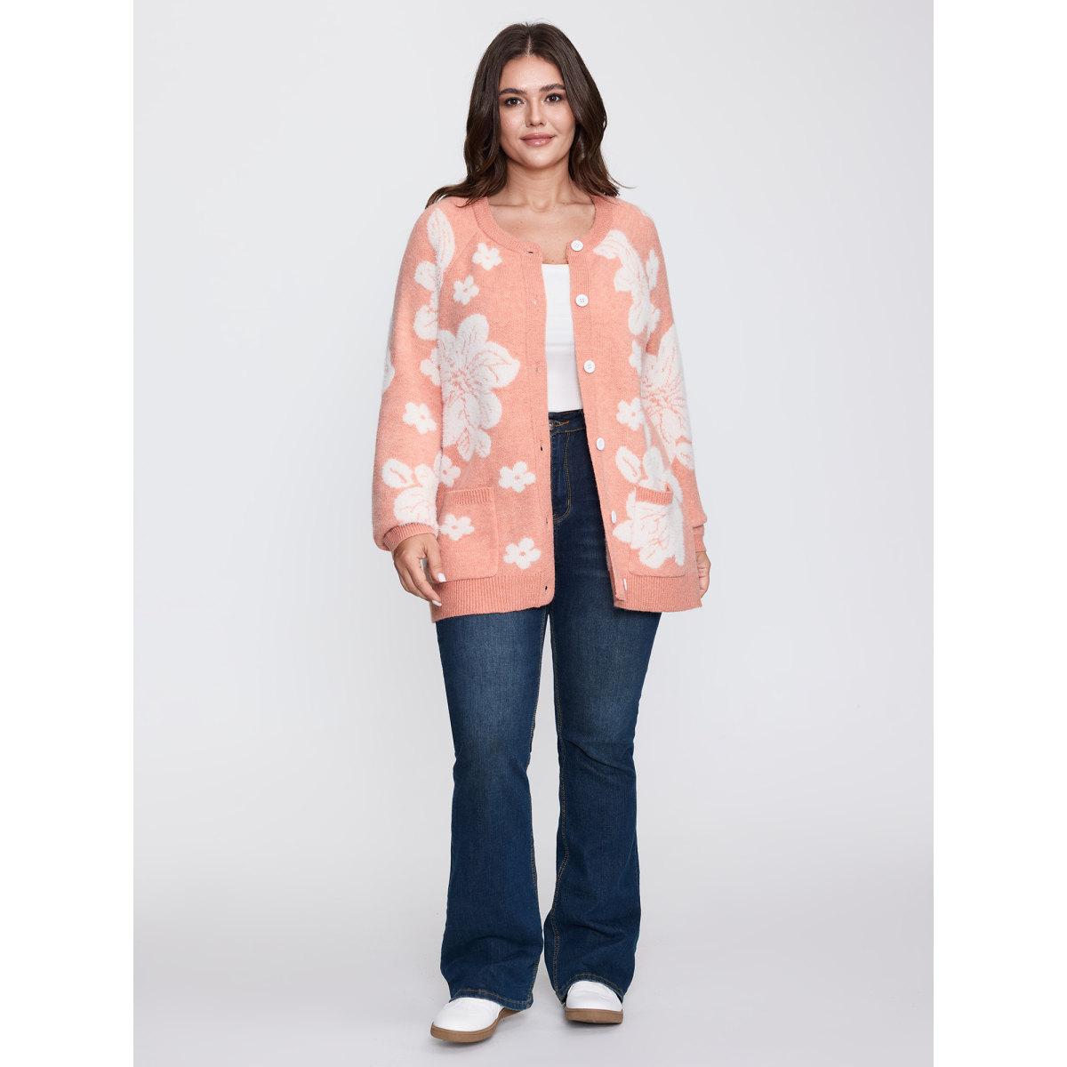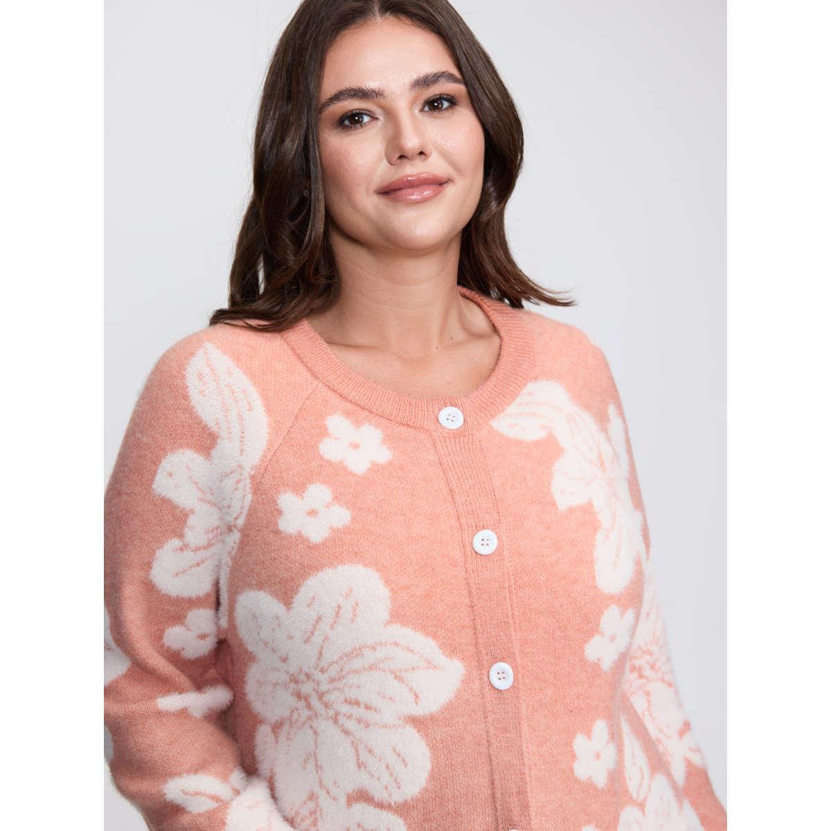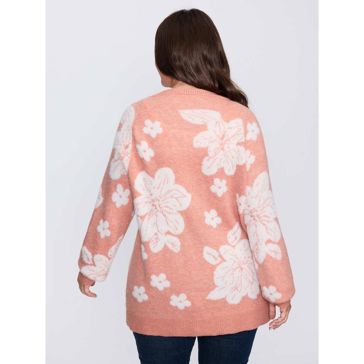 Plus Size Supersoft Floral Pattern Round Neck Stretchy Knit Cardigan Crepe Women Playful Loose Long Sleeve Casual Cardigans BloomChic 30/6X