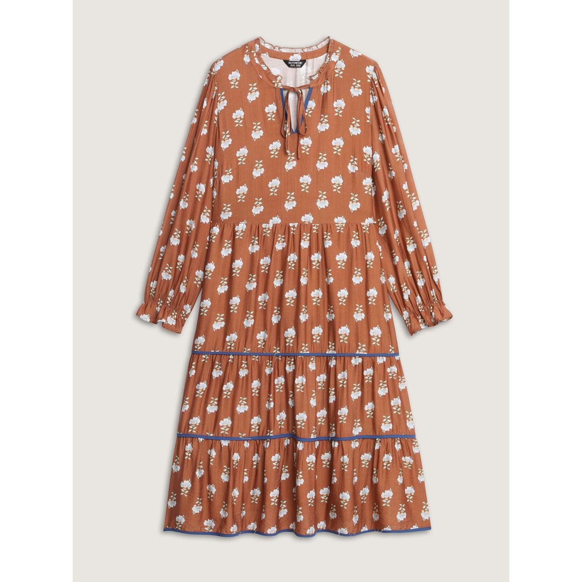 Plus Size Supersoft Floral Print Drawstring Neckline Midi Dress Multicolor Women Playful Tie knot Flat collar with V-notch Extra Long Sleeve Curvy BloomChic 18-20/2X Product Image