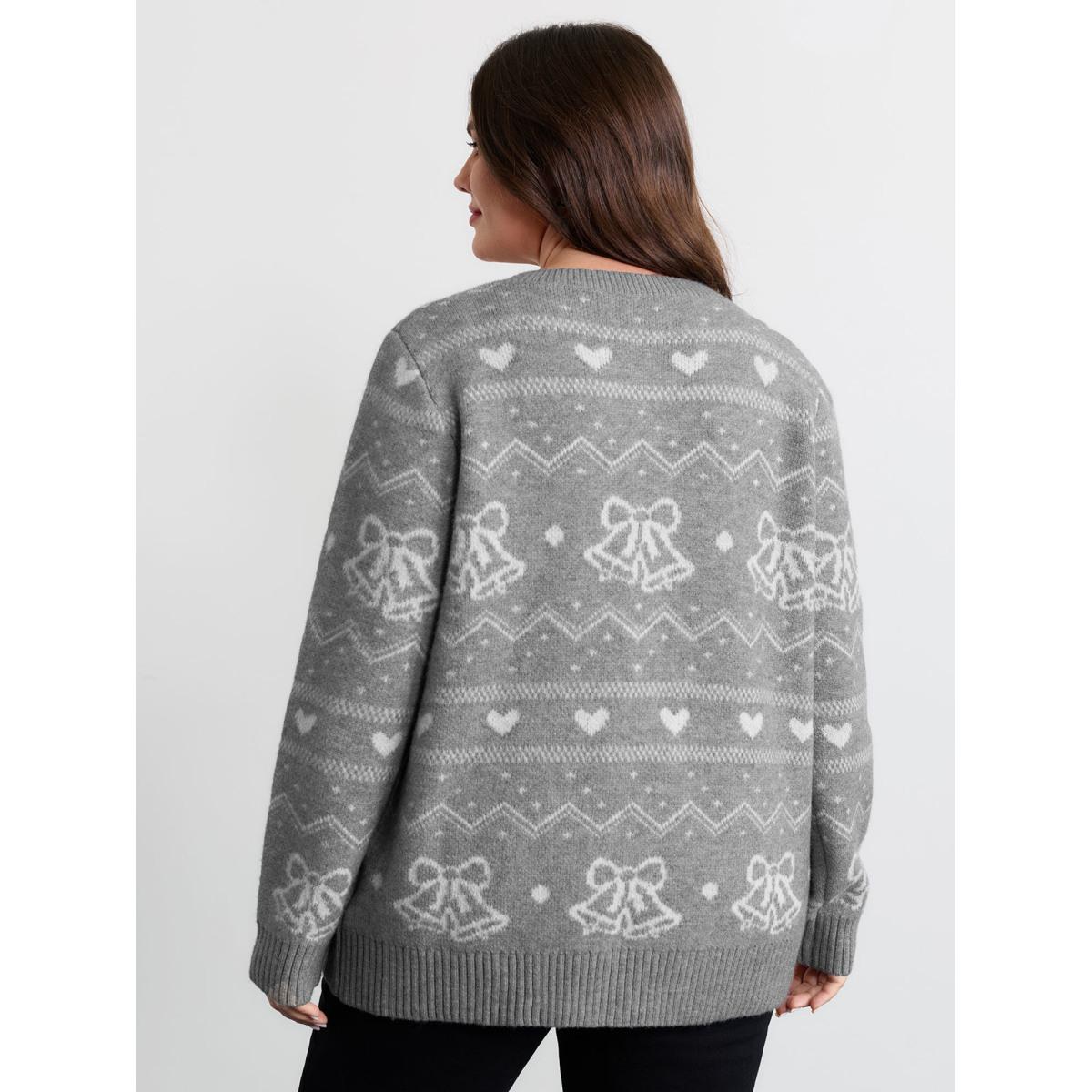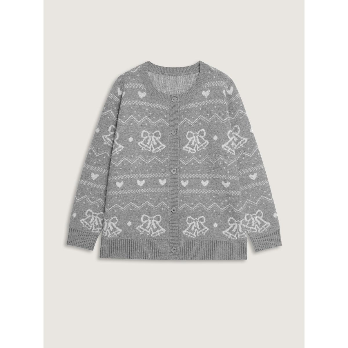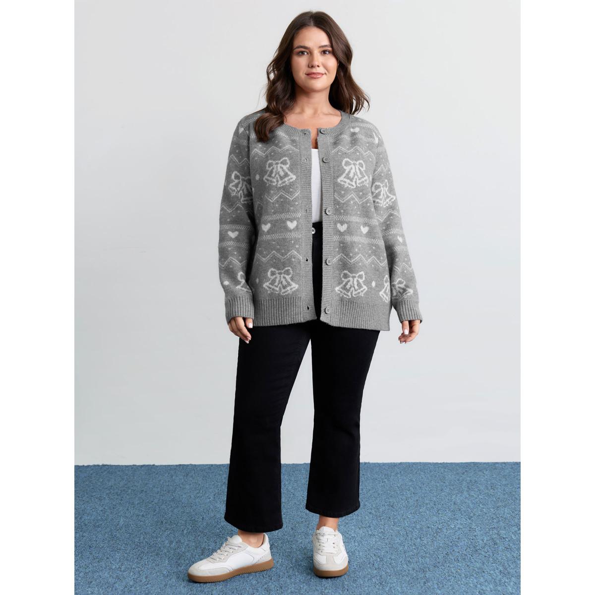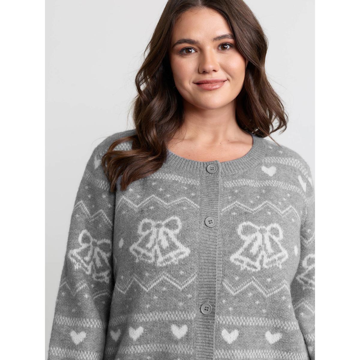 Plus Size Supersoft Holiday Bells Jacquard Button Knit Cardigan Mediumgray Women Leisure Loose Long Sleeve Casual Cardigans BloomChic 22-24/3X