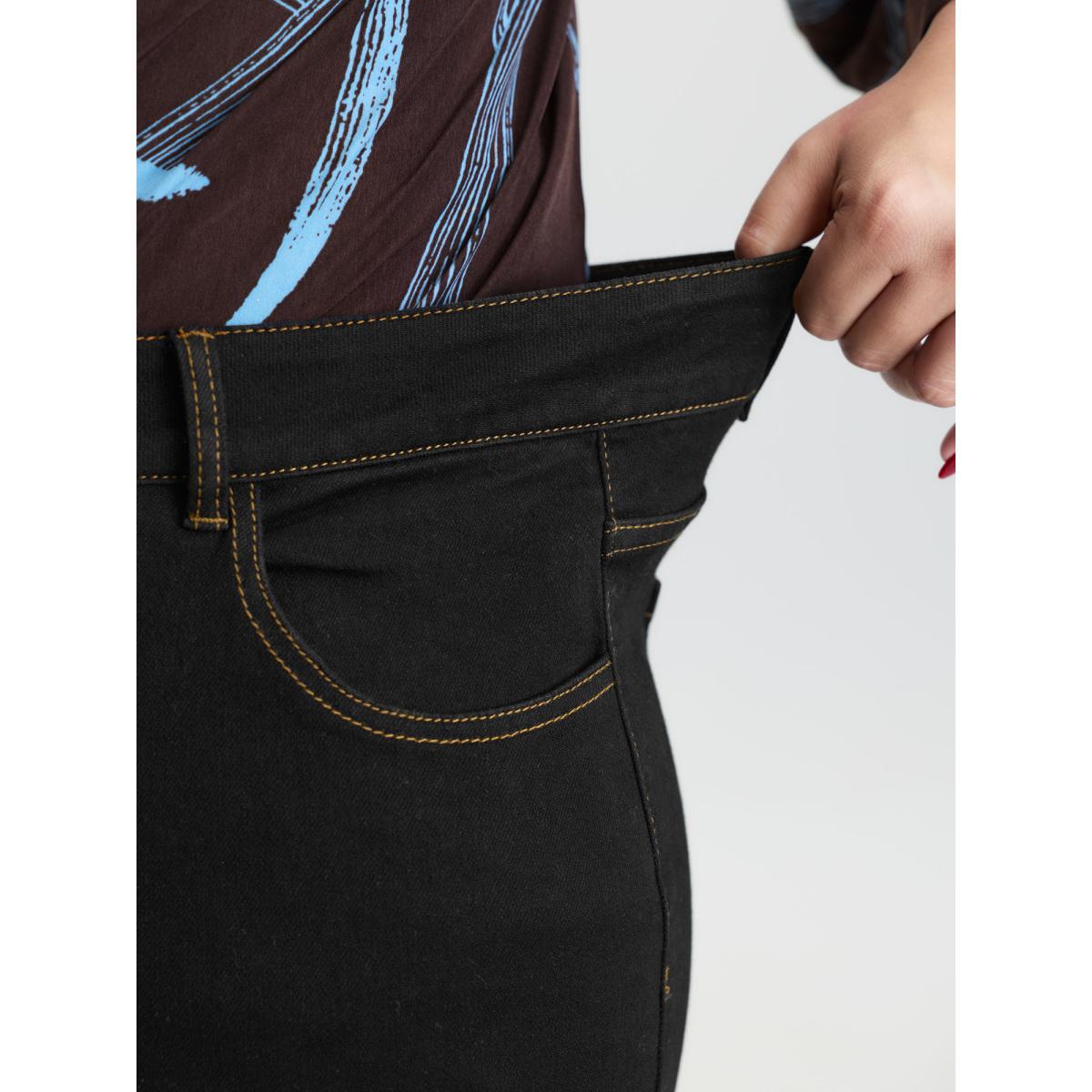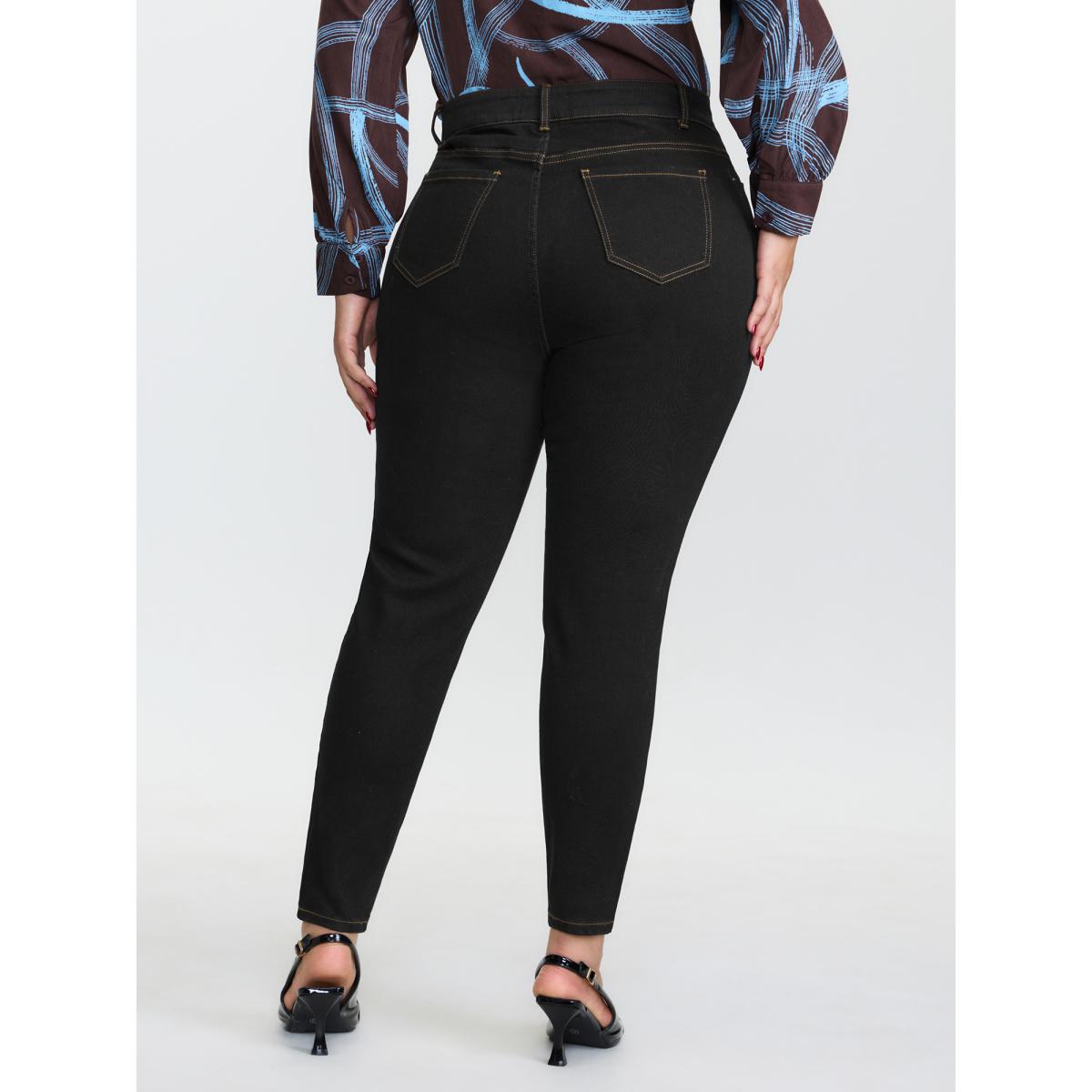 Plus Size Skinny High Rise Black Wash Jeans Women Black Casual Plain Plain High stretch Pocket Jeans BloomChic 10/M