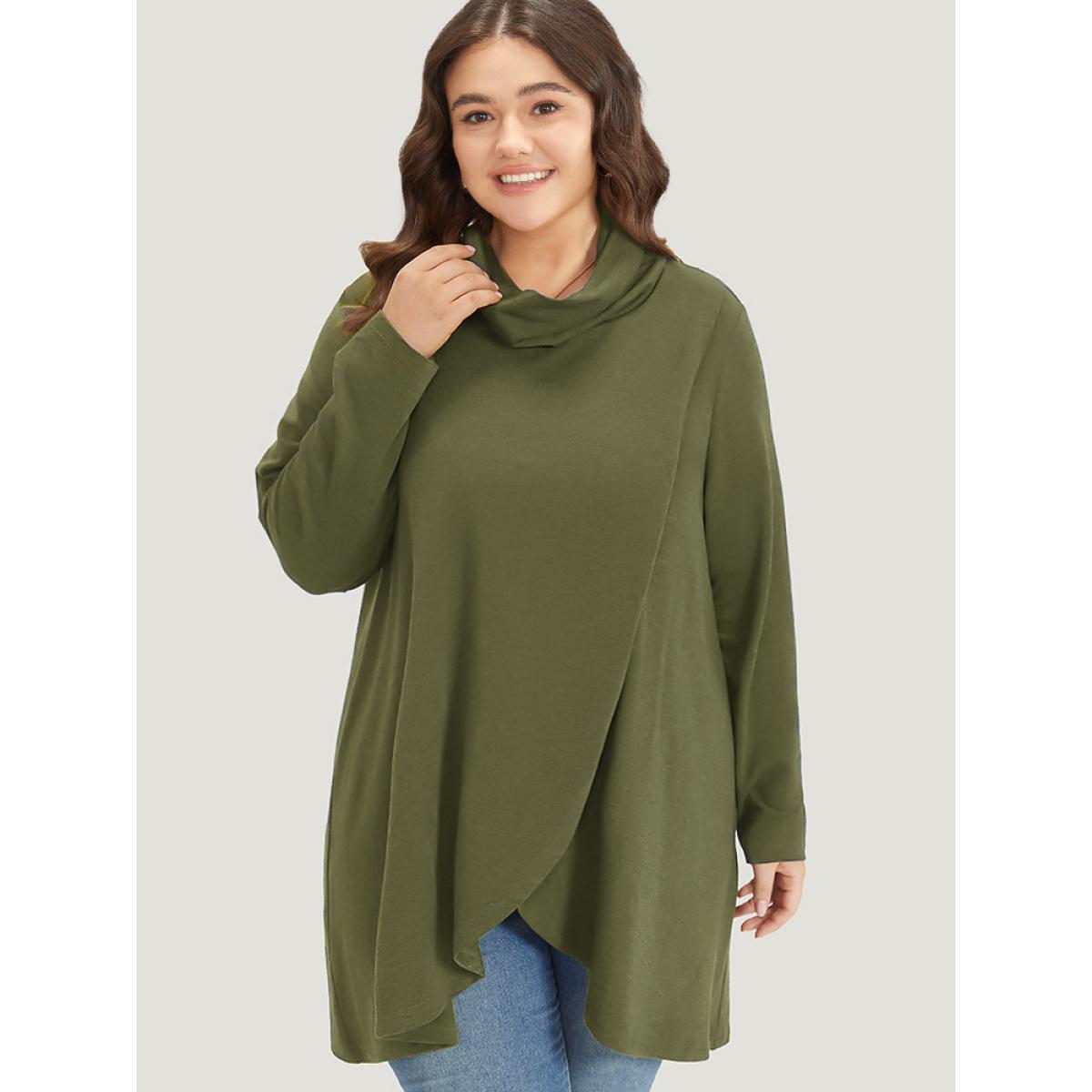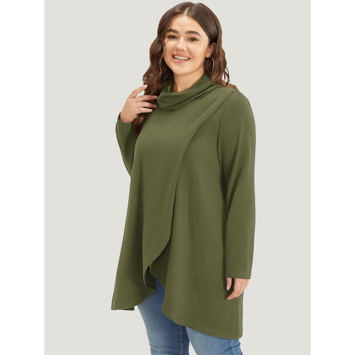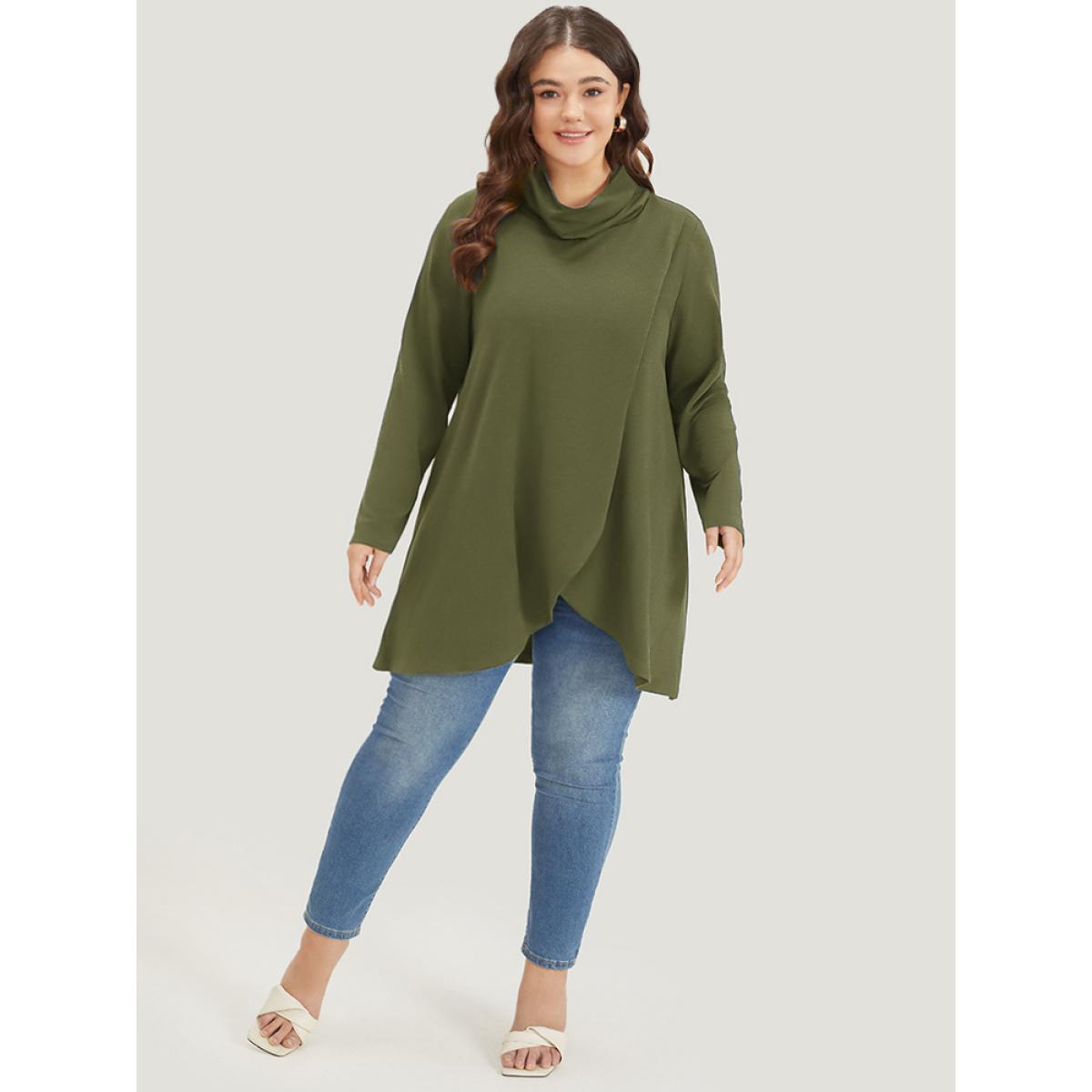 Plus Size Supersoft Plain Wrap Hem Turtleneck Sweatshirt Women ArmyGreen Leisure Wrap Turtleneck Casual Sweatshirts BloomChic 26/4X