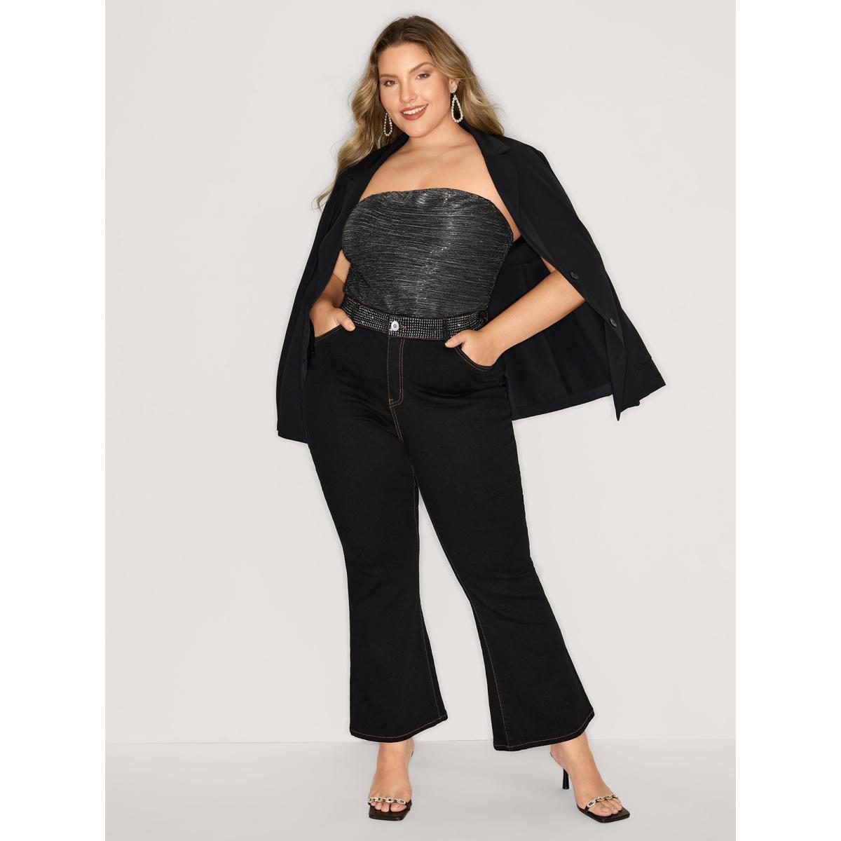 Plus Size Supersoft Rhinestone Detail Bootcut Jeans Women Denimblack Timeless Rhinestone detailing High stretch Slanted pocket Jeans BloomChic 14/1X