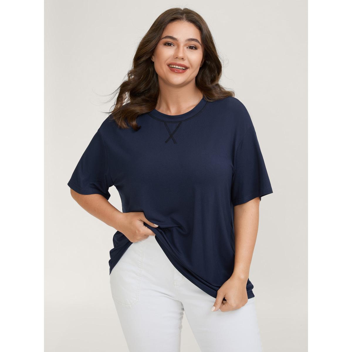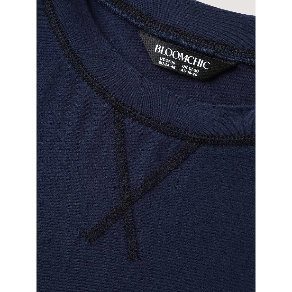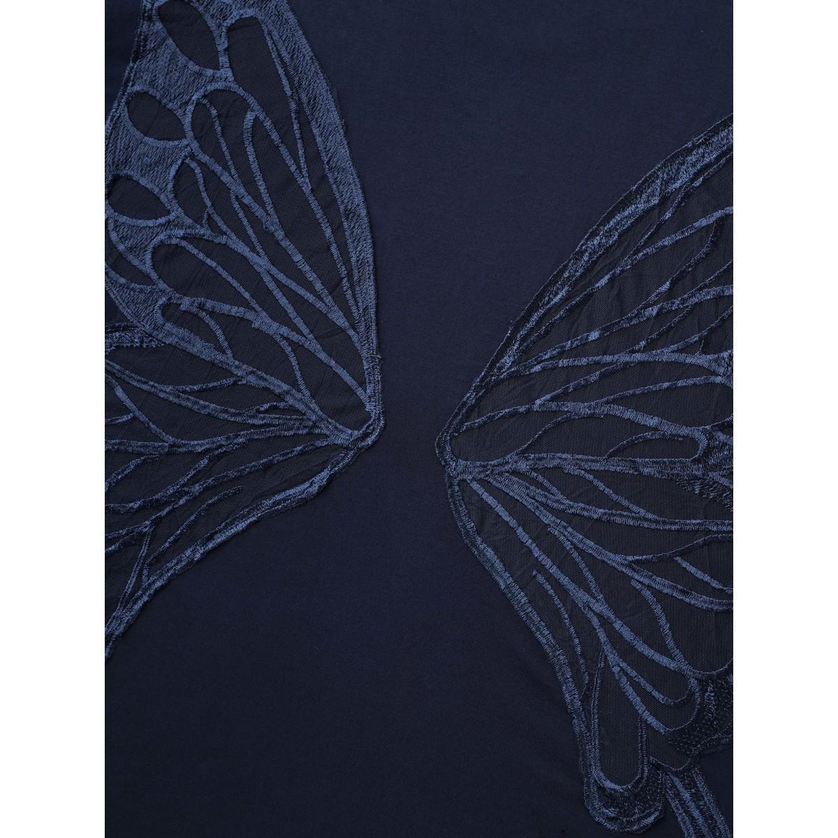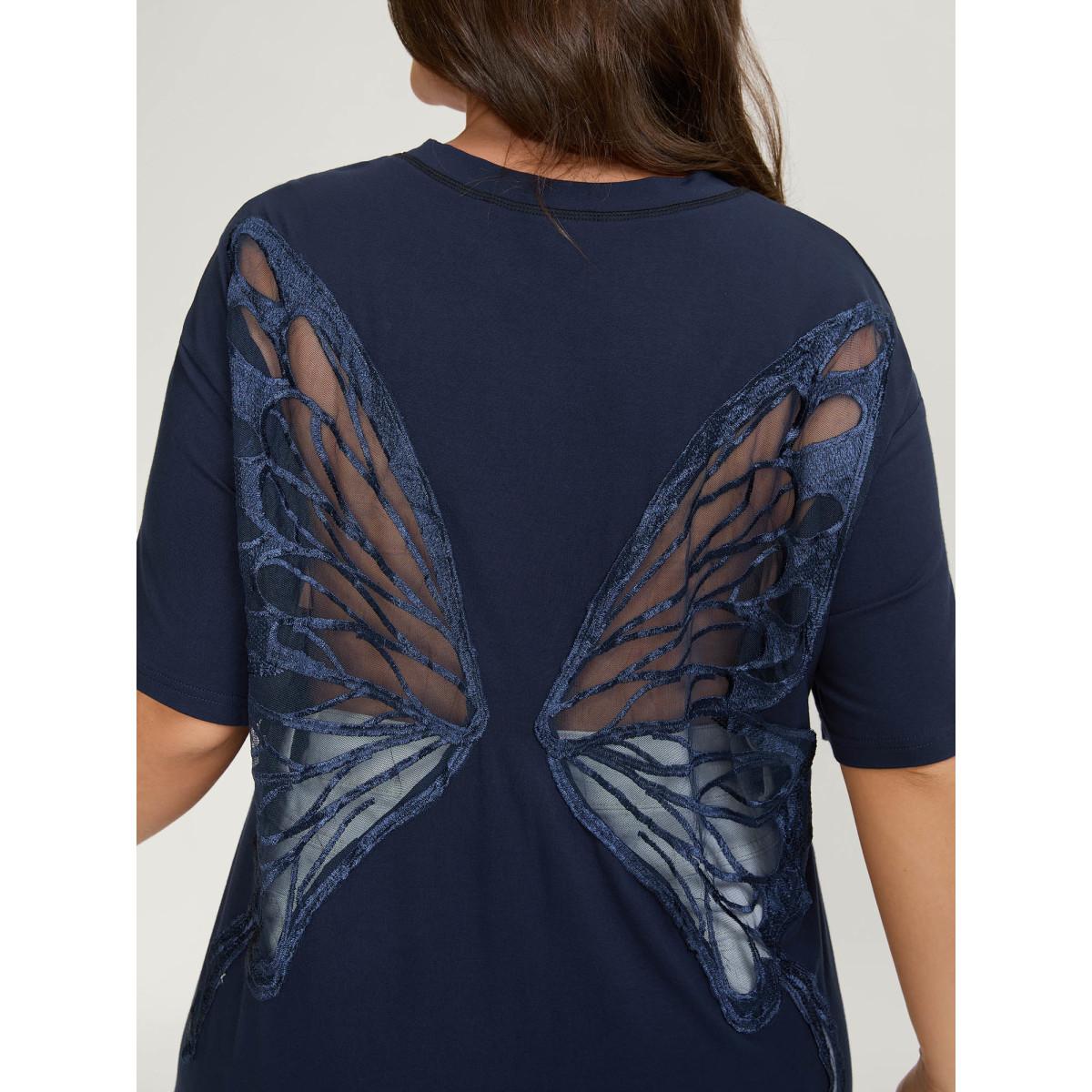 Plus Size Supersoft Sheer Butterfly Backless Embroidered T-Shirt Mediumblue Women Leisure Cut-Out Round Neck Casual T-shirts BloomChic 28/5X