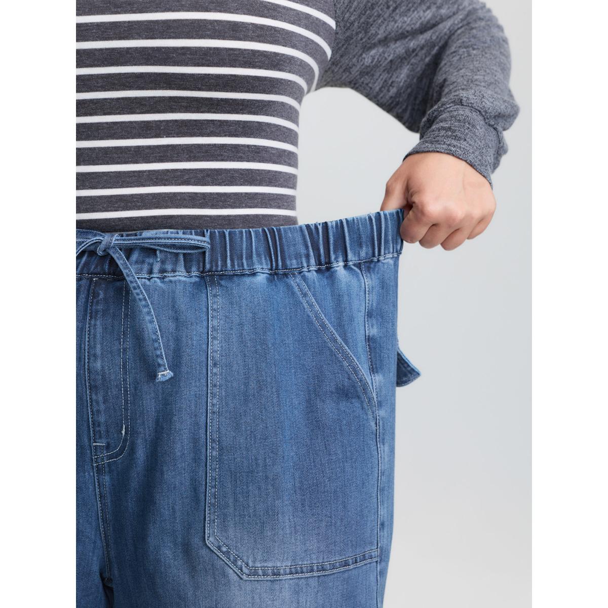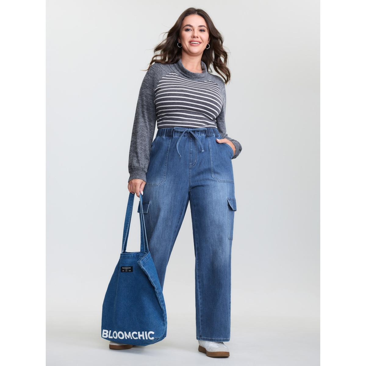 Plus Size Supersoft Stretchy Back Waistband Wide-Leg Jeans Women Midblue Leisure Low stretch Slanted pocket Jeans BloomChic 12/L
