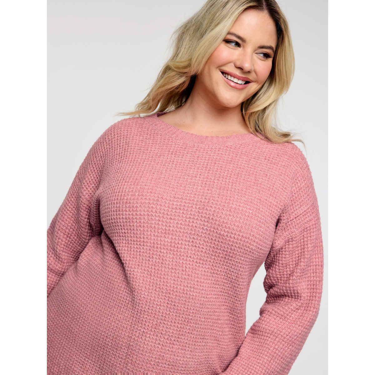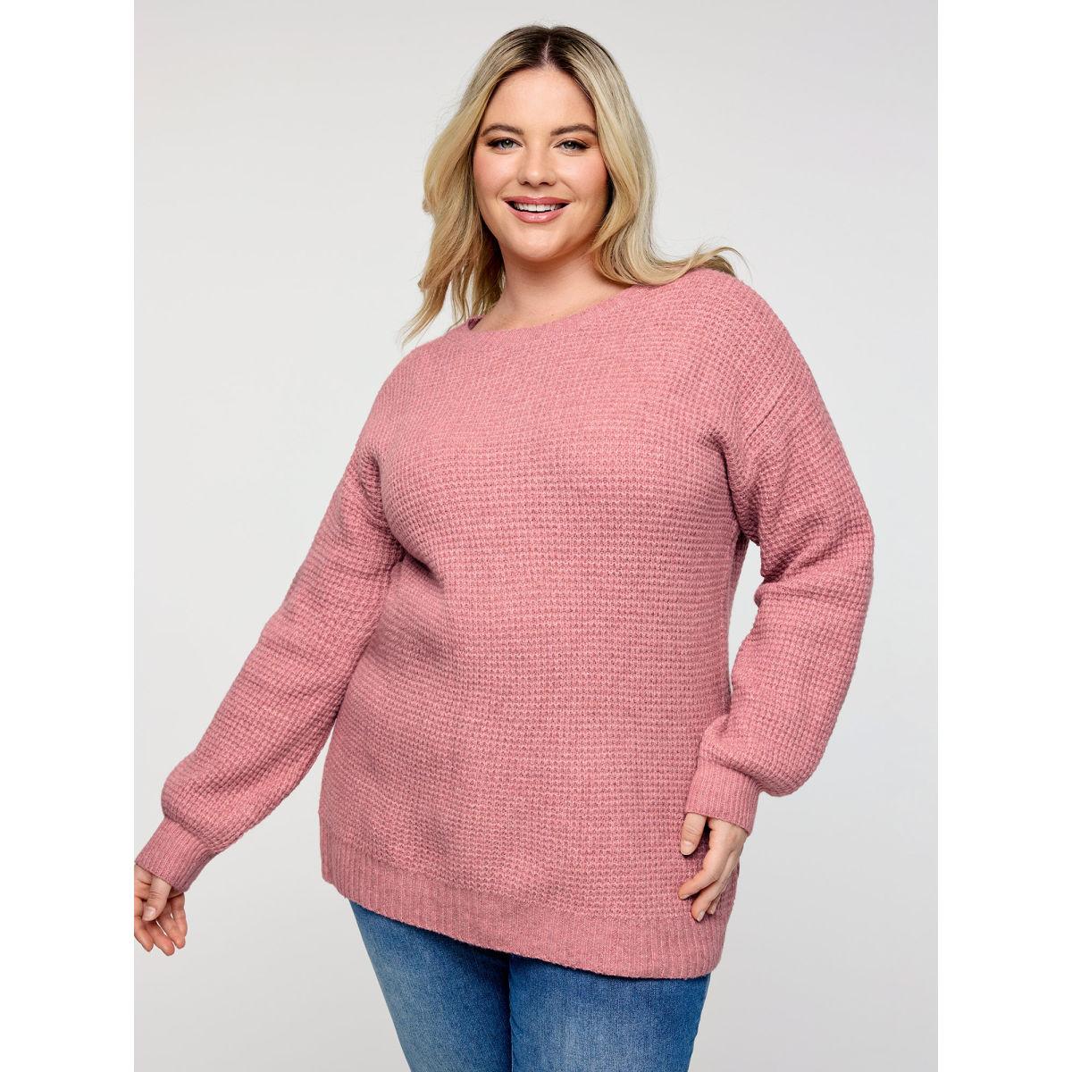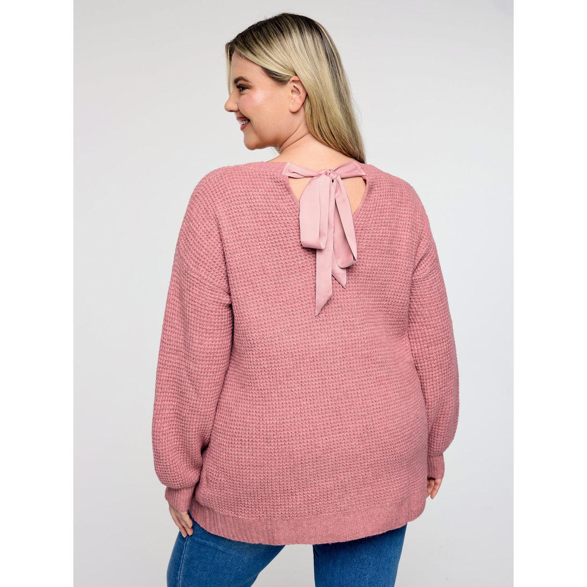 Plus Size Supersoft Stretchy Bowtie Back Textured Pullover Crepe Women Leisure Loose Long Sleeve Round Neck Casual Pullovers BloomChic 30/6X
