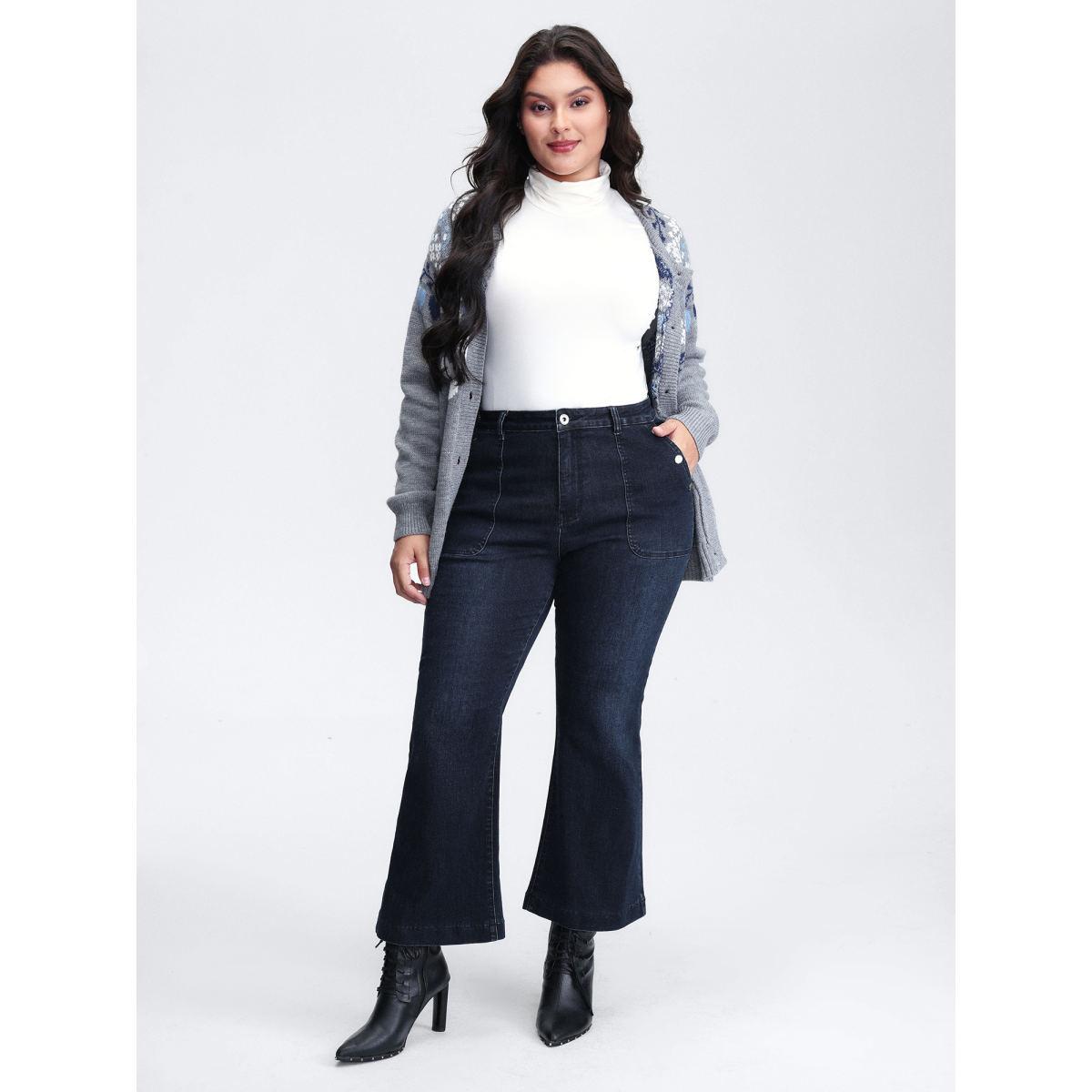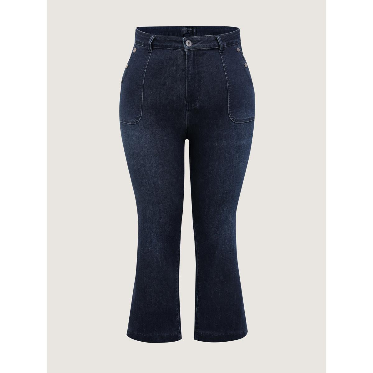 Plus Size Supersoft Stretchy Patch Pockets Bootcut Jeans Women Denimindigo Timeless High stretch Slanted pocket Jeans BloomChic 26/4X