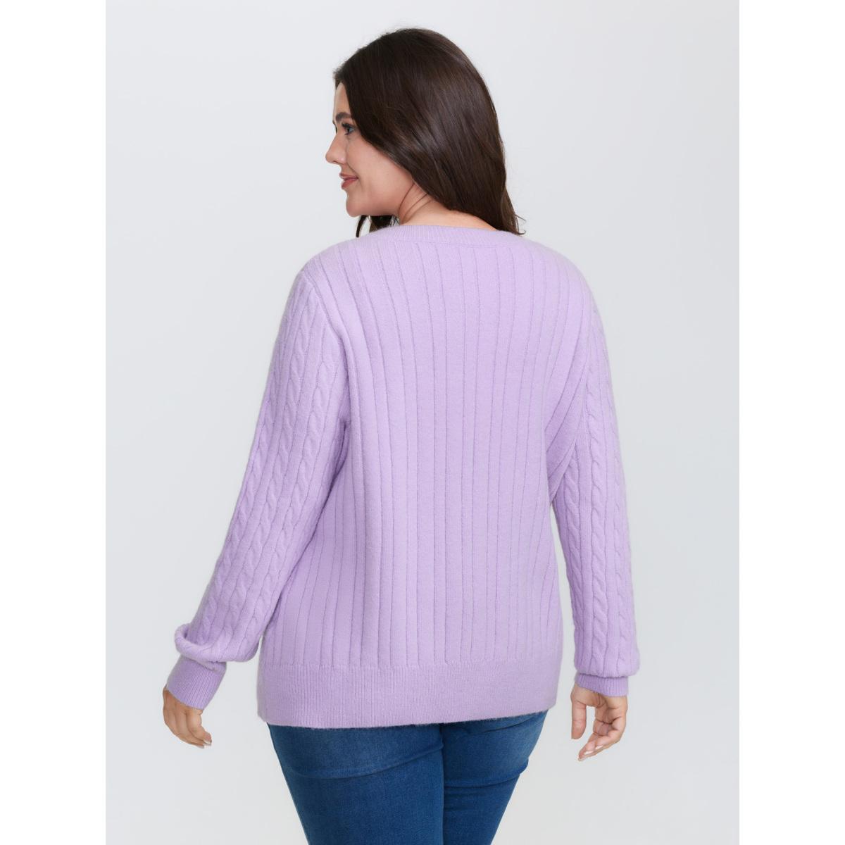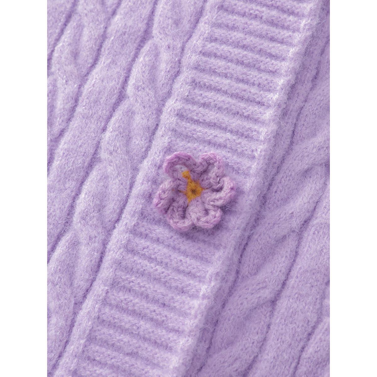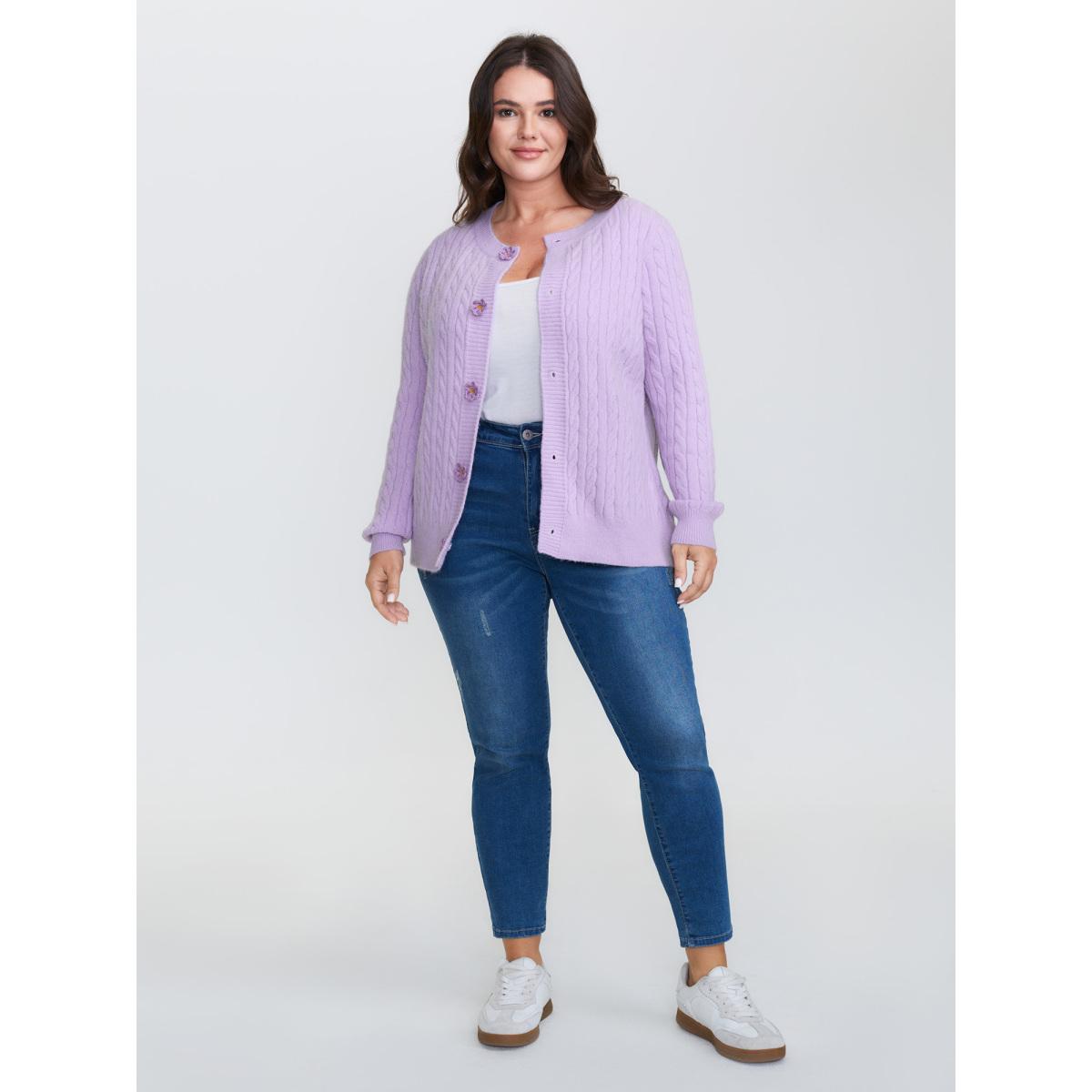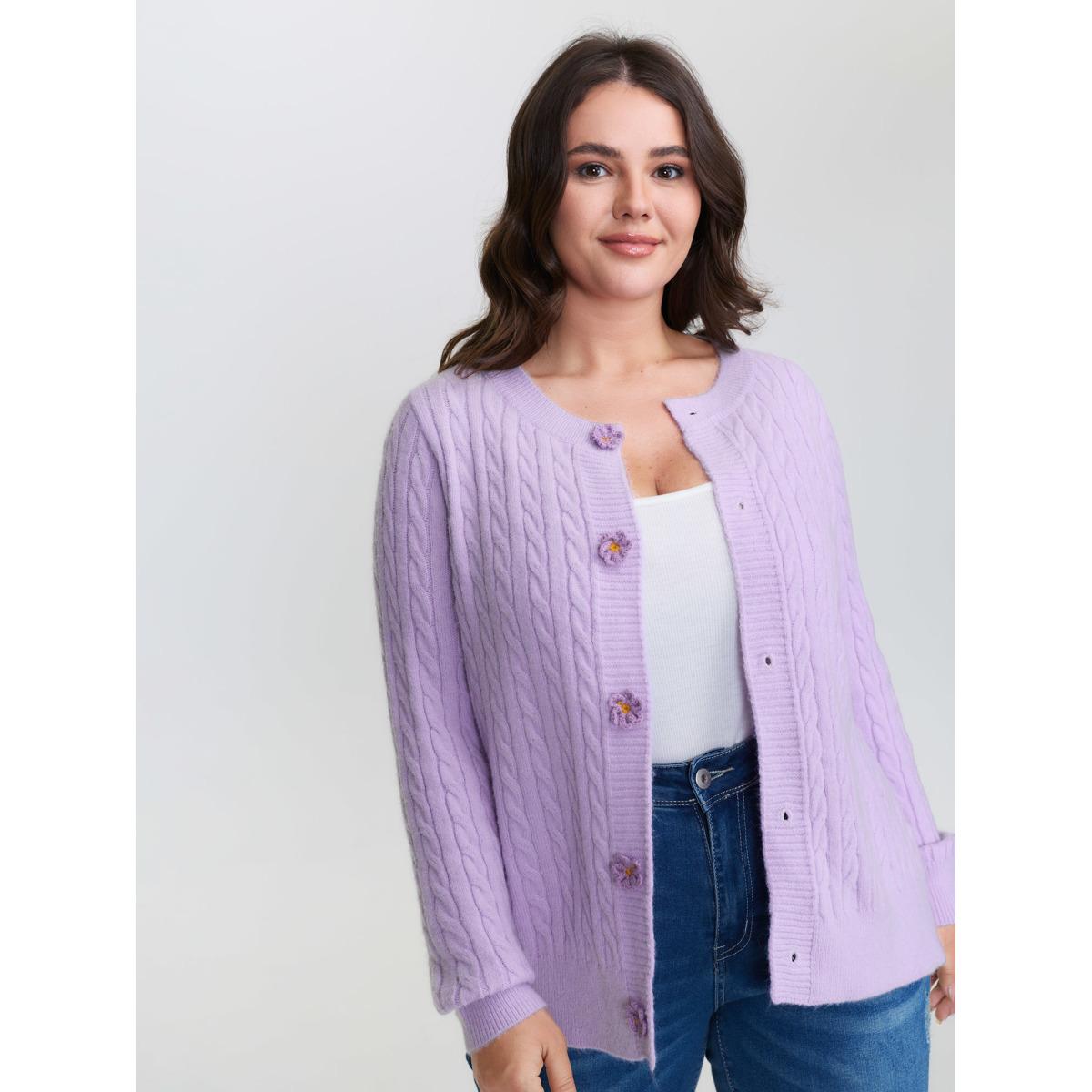 Plus Size Supersoft Twist Textured Floral Buttons Knit Cardigan Lilac Women Leisure Loose Long Sleeve Casual Cardigans BloomChic 18-20/2X