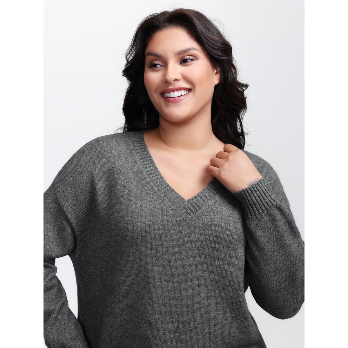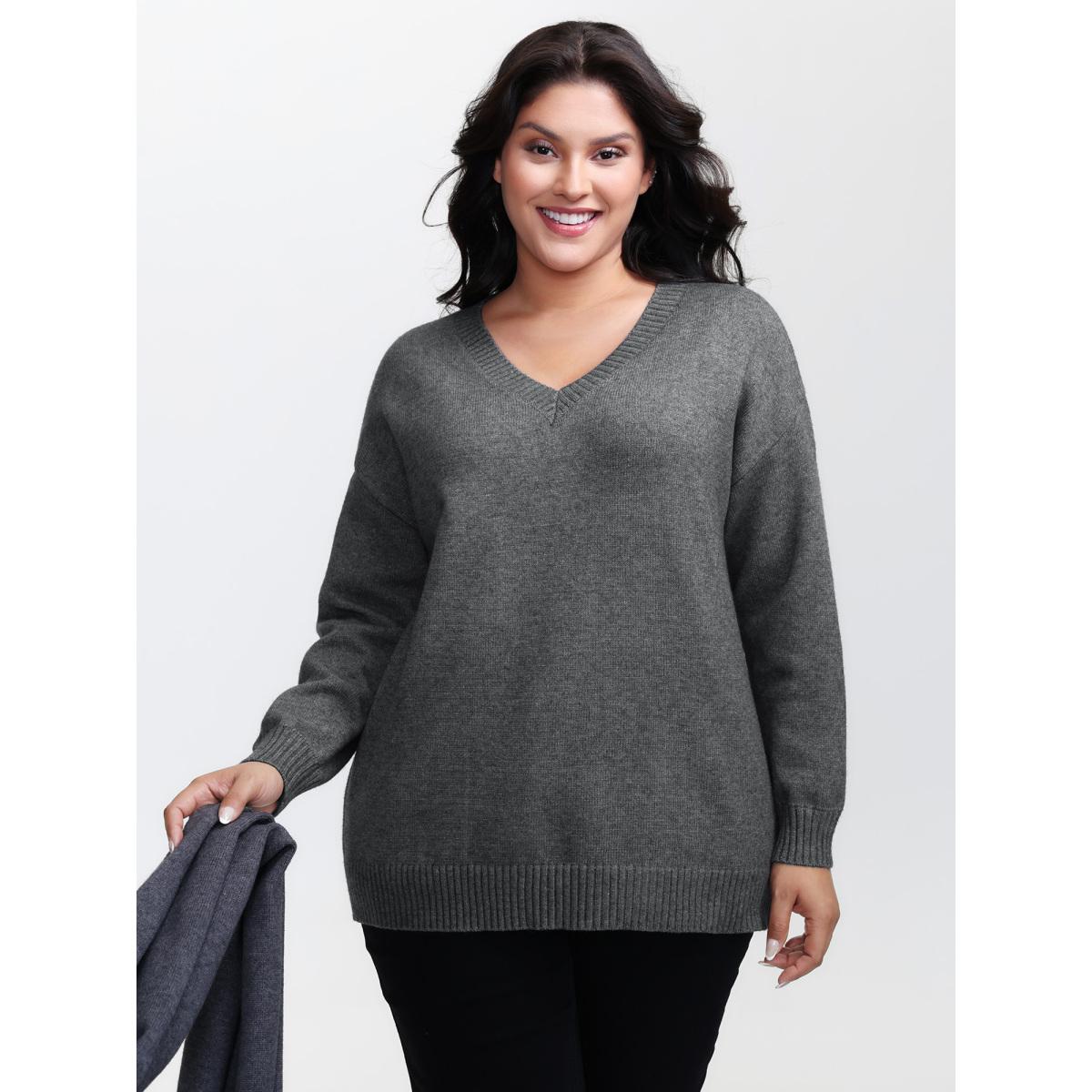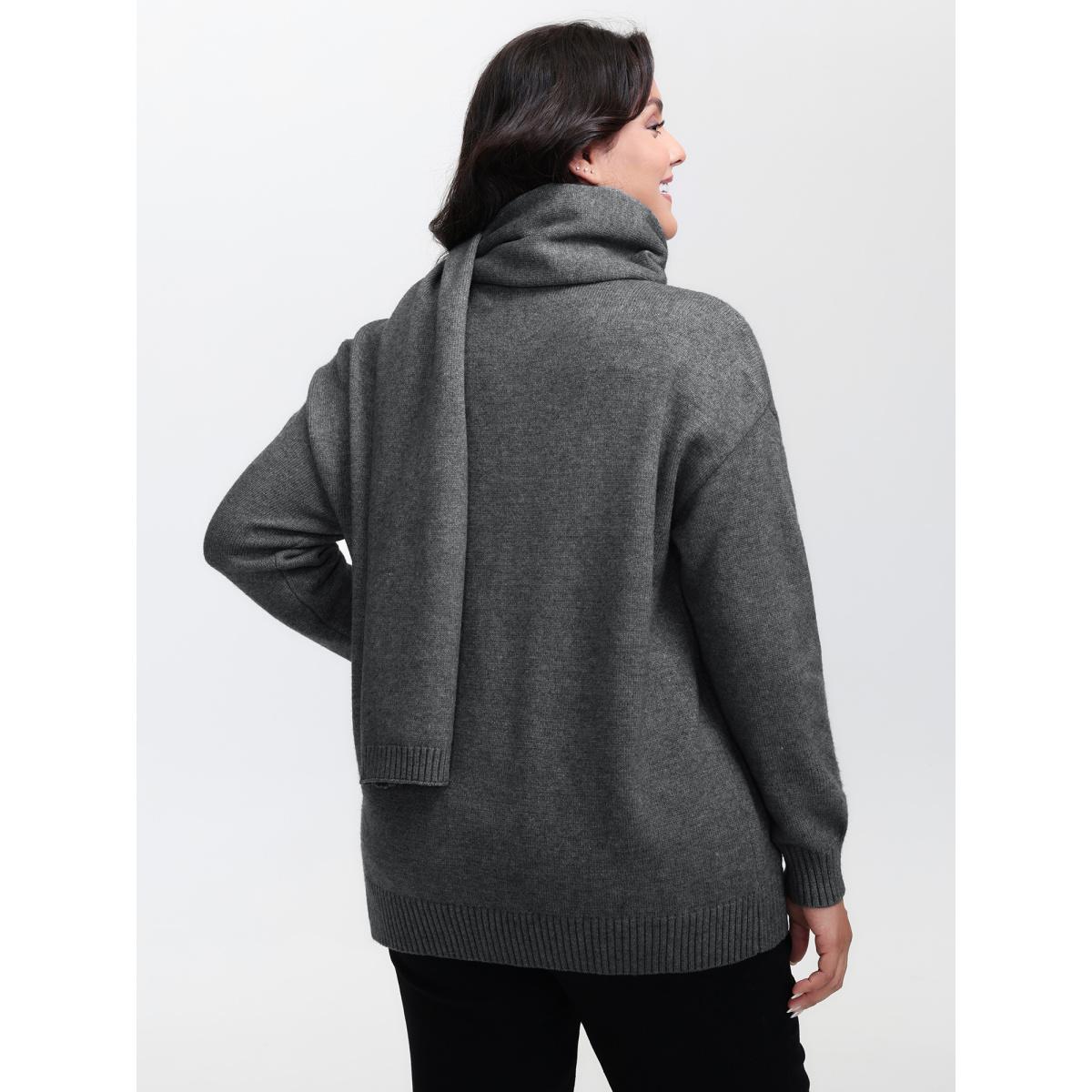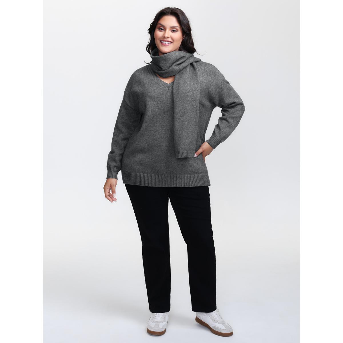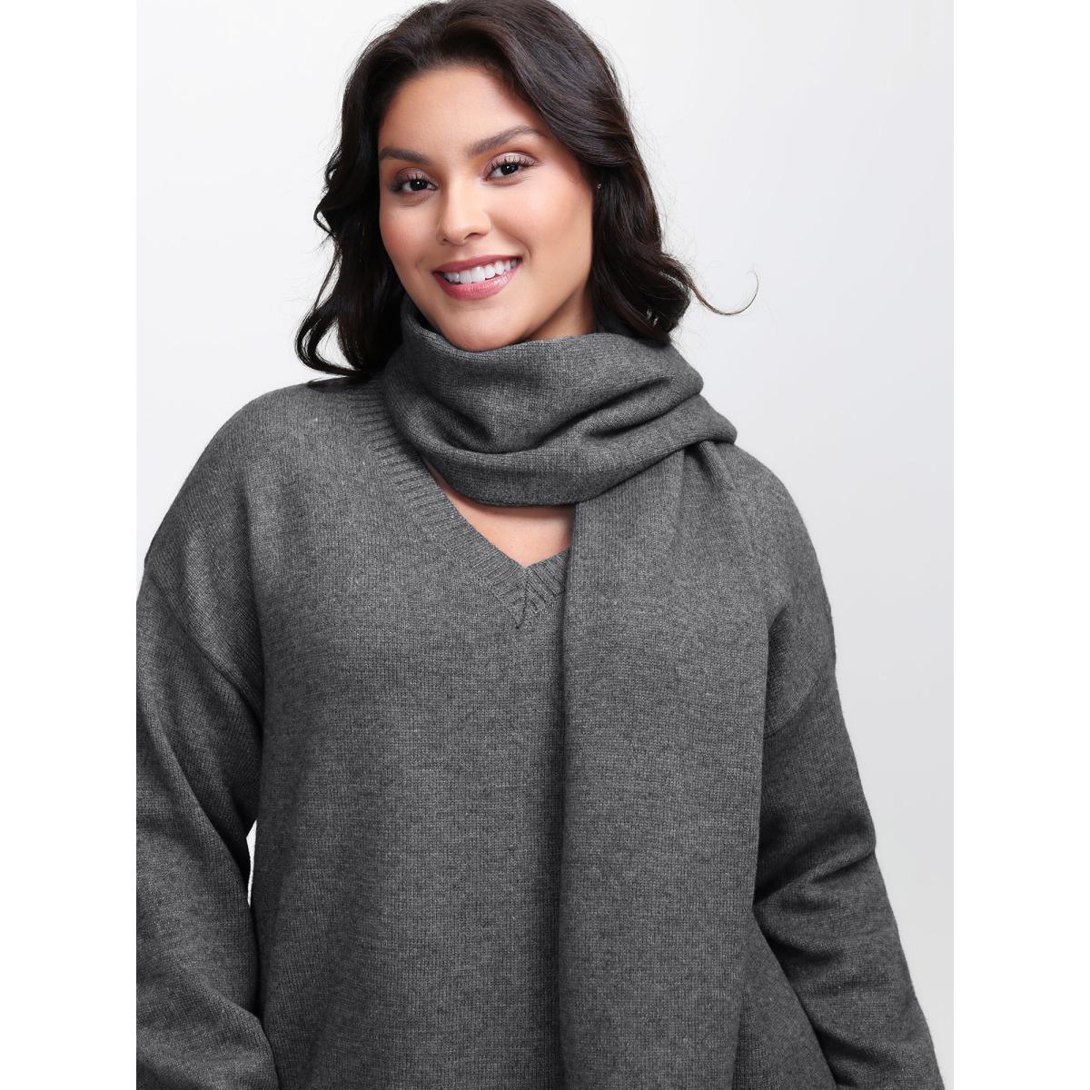 Plus Size Supersoft Two-Piece Scarf Cozy Pullover DarkGray Women Leisure Loose Long Sleeve V-neck Casual Pullovers BloomChic 18-20/2X