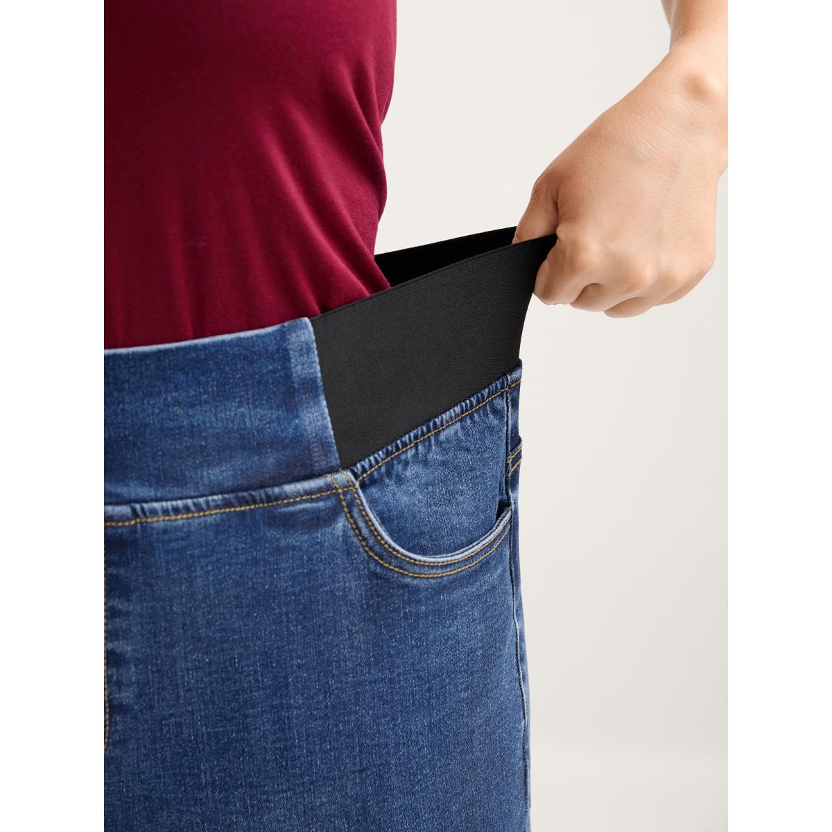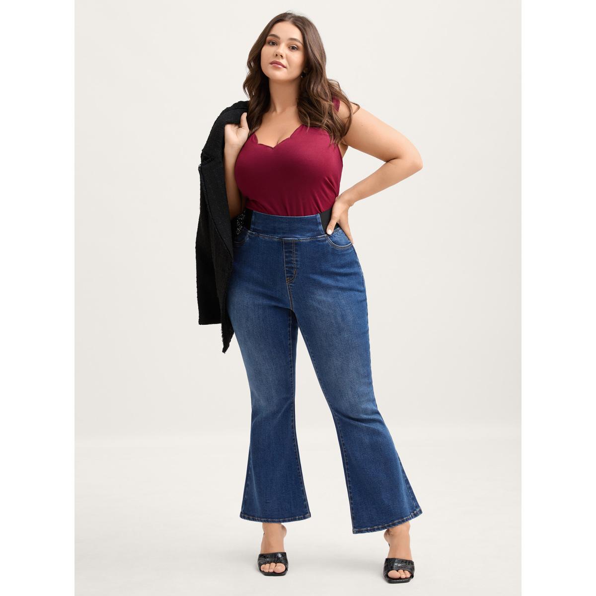 Plus Size Tapered Stretchy Waist Bootcut Jeans Women Bluevintage Timeless Contrast High stretch Slanted pocket Jeans BloomChic 28/5X