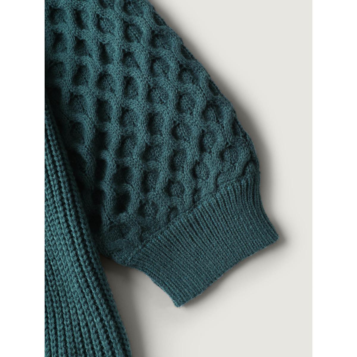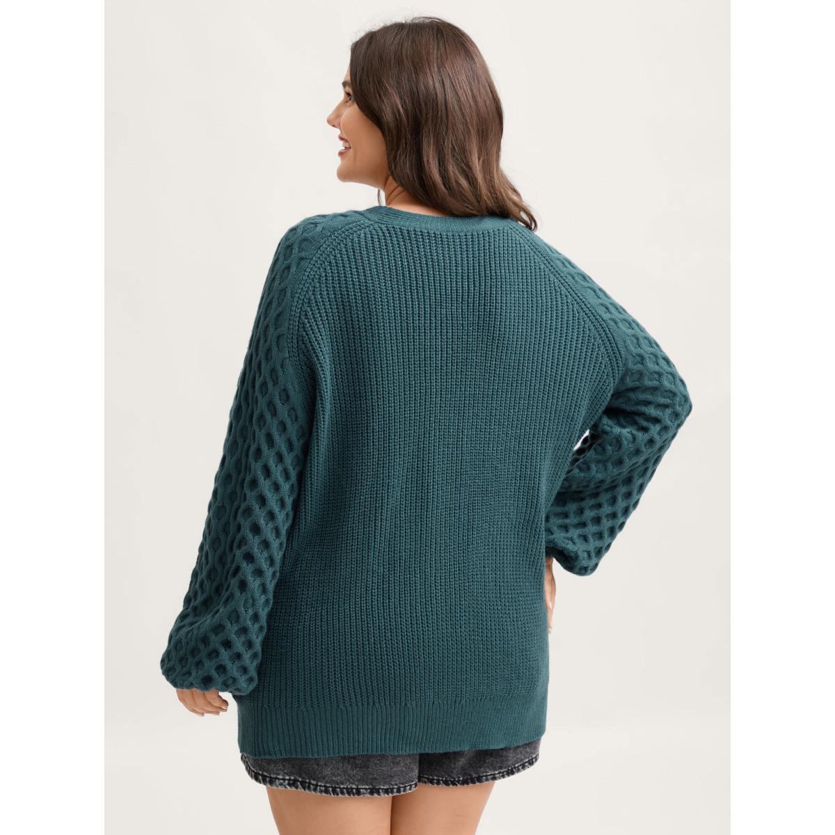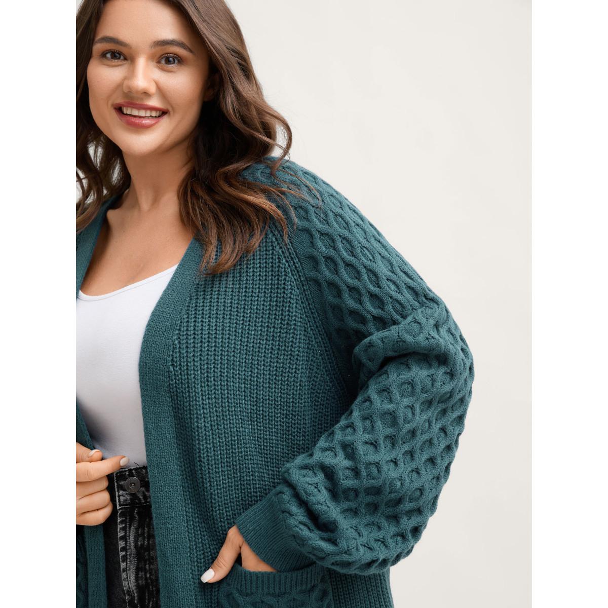 Plus Size Textured Balloon Sleeve Pockets Knit Cardigan Aegean Women Leisure Loose Long Sleeve Casual Cardigans BloomChic 22-24/3X