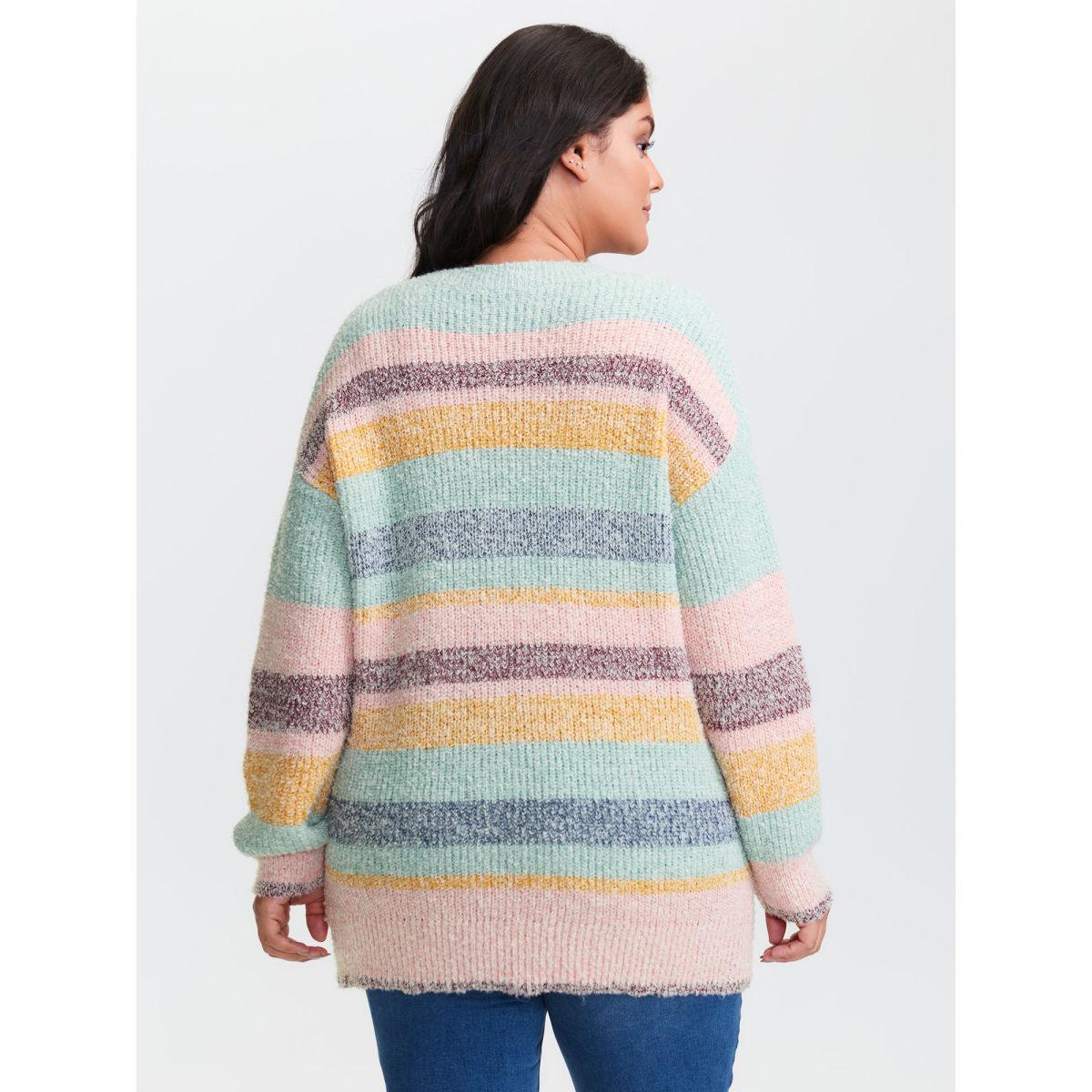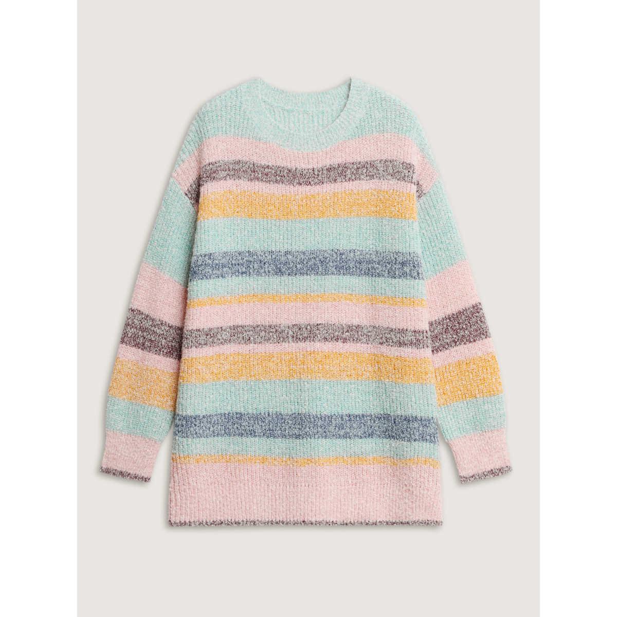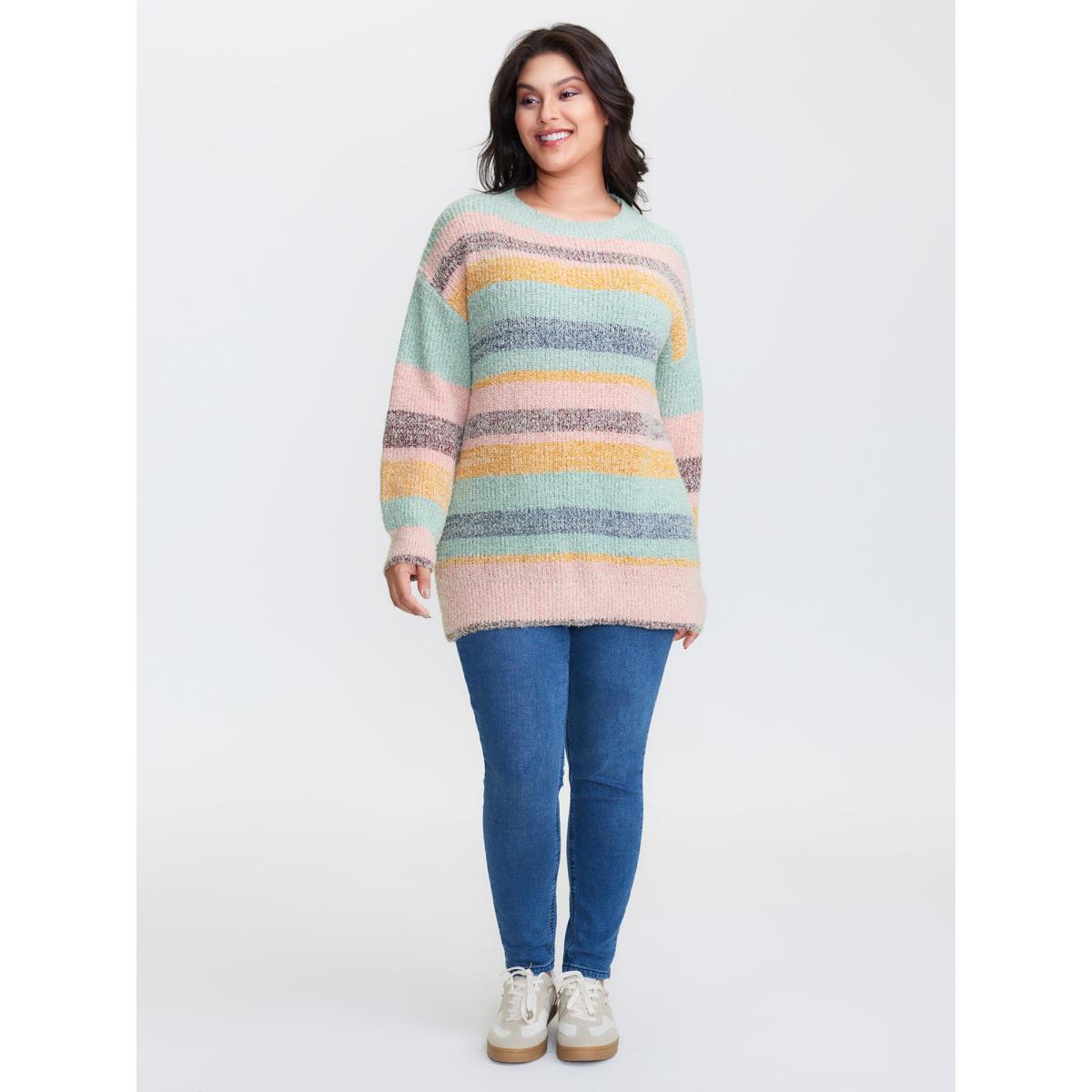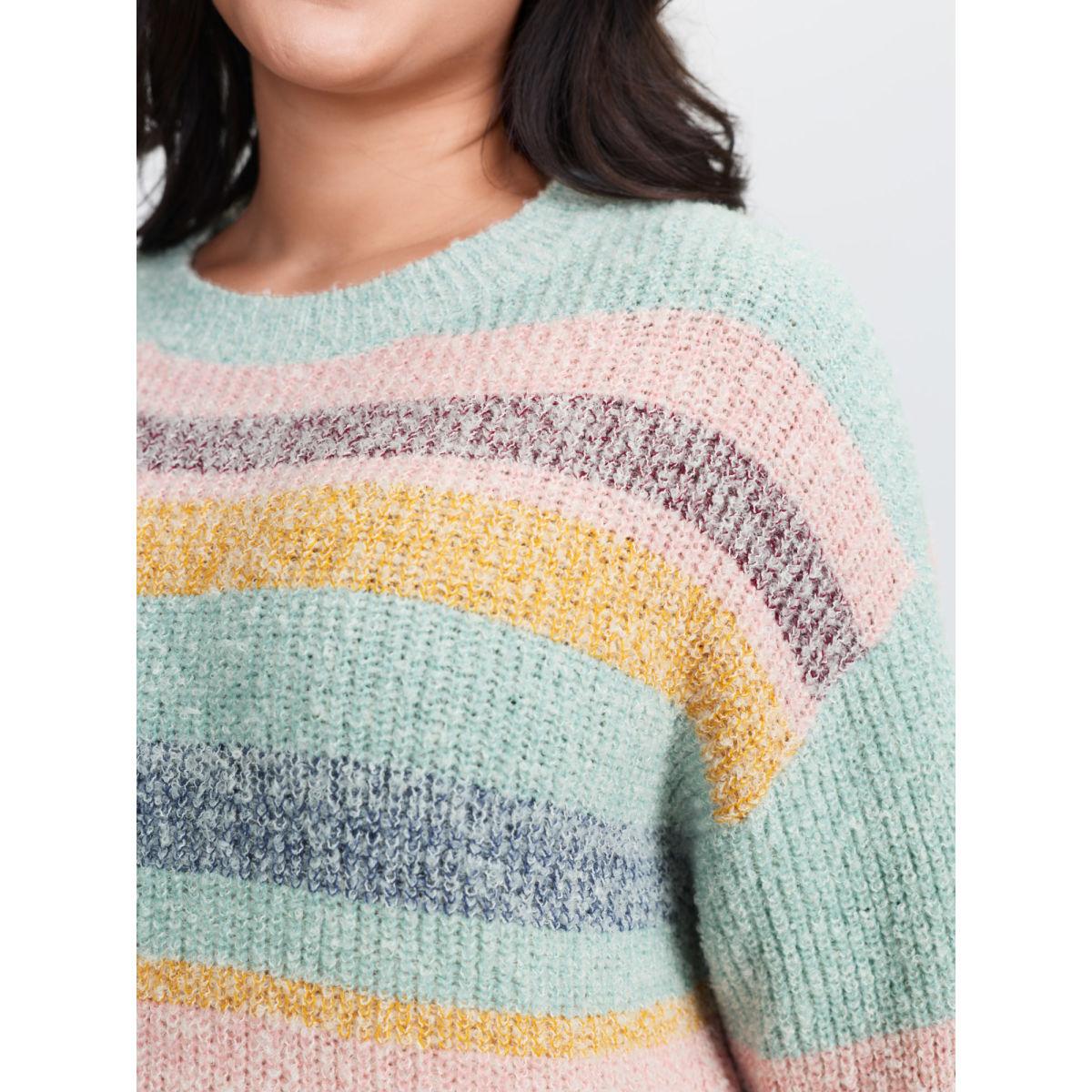 Plus Size Textured Colorful Stripe Drop Shoulder Pullover Multicolor Women Playful Loose Long Sleeve Round Neck Casual Pullovers BloomChic 14-16/1X