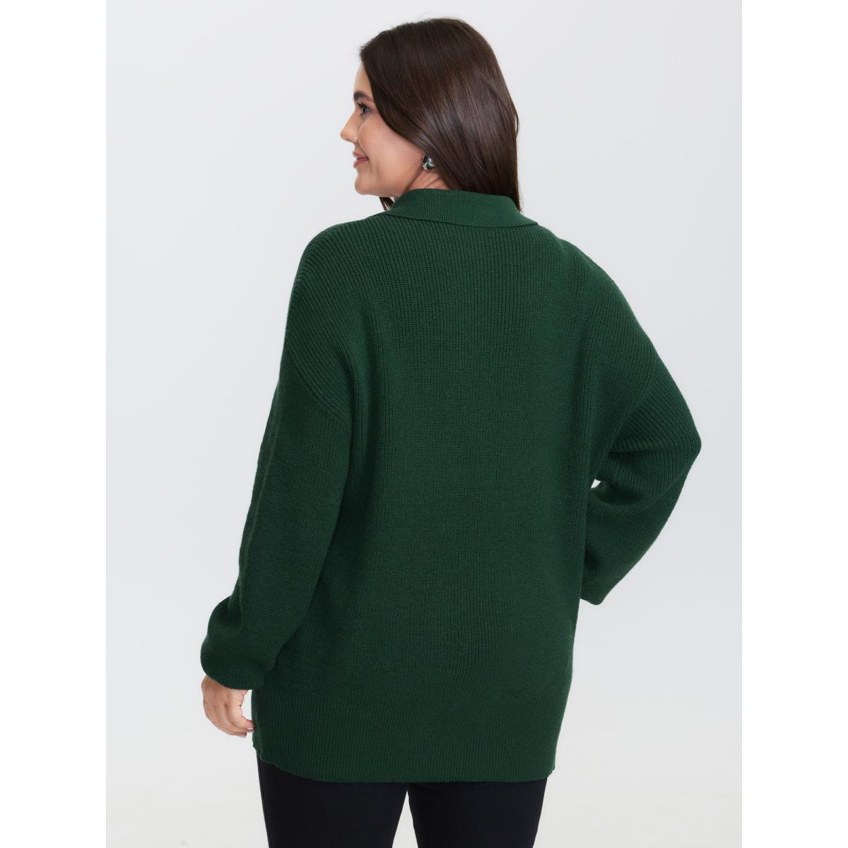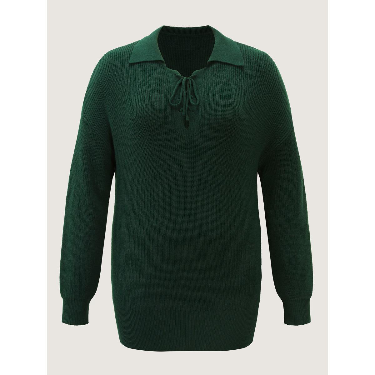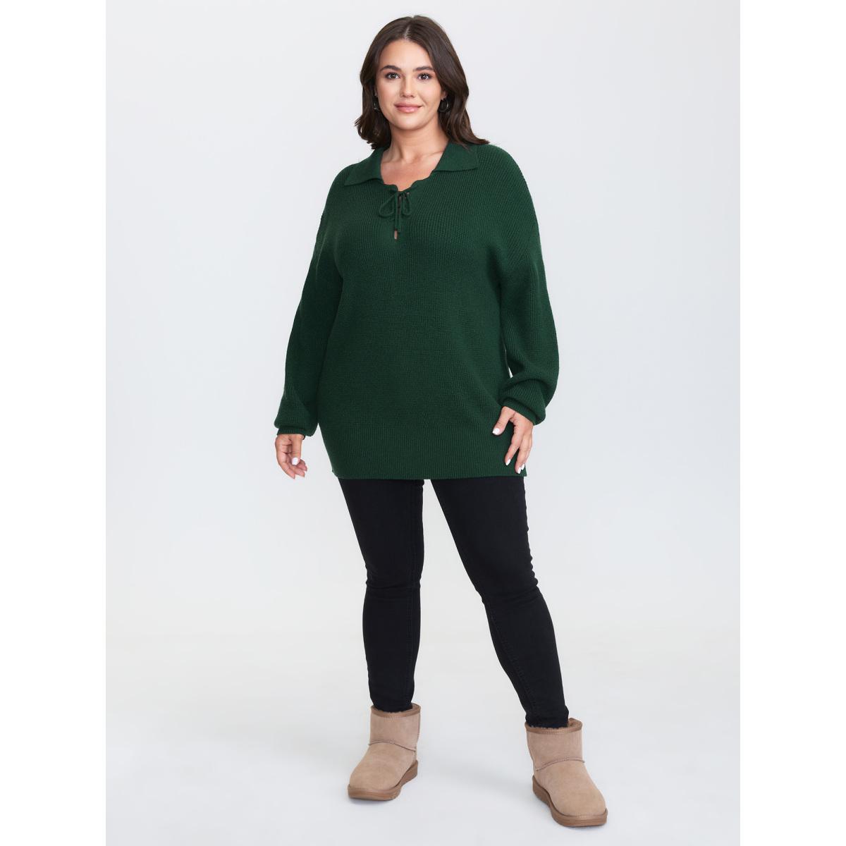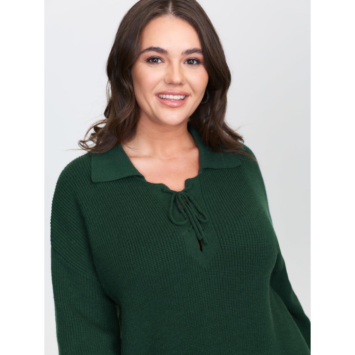 Plus Size Textured Cross Neck-Tie Ribbed Hem Pullover ArmyGreen Women Leisure Long Sleeve Polo Casual Pullovers BloomChic 28/5X