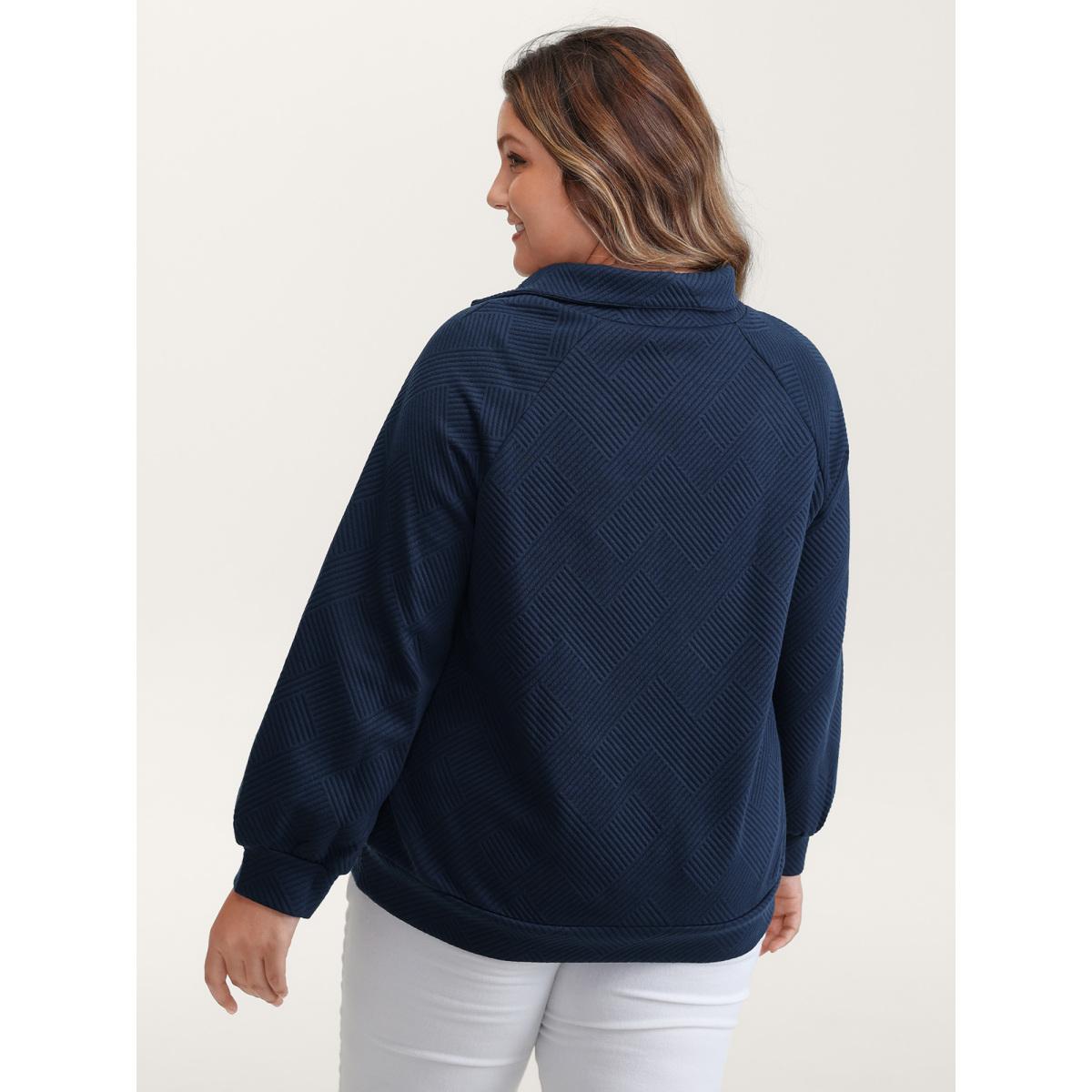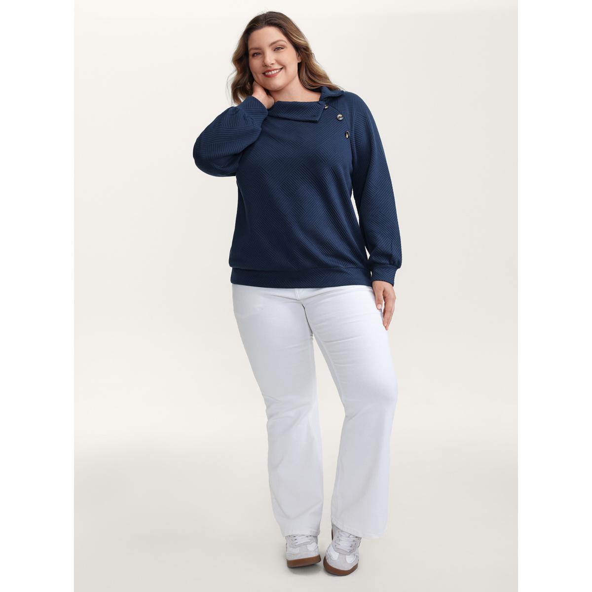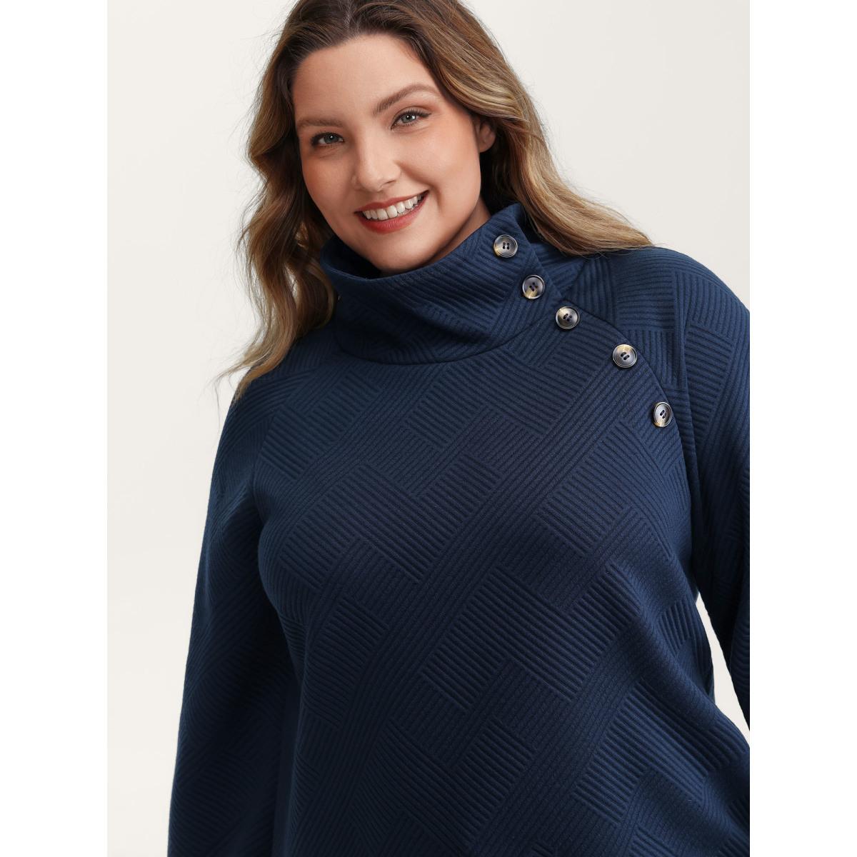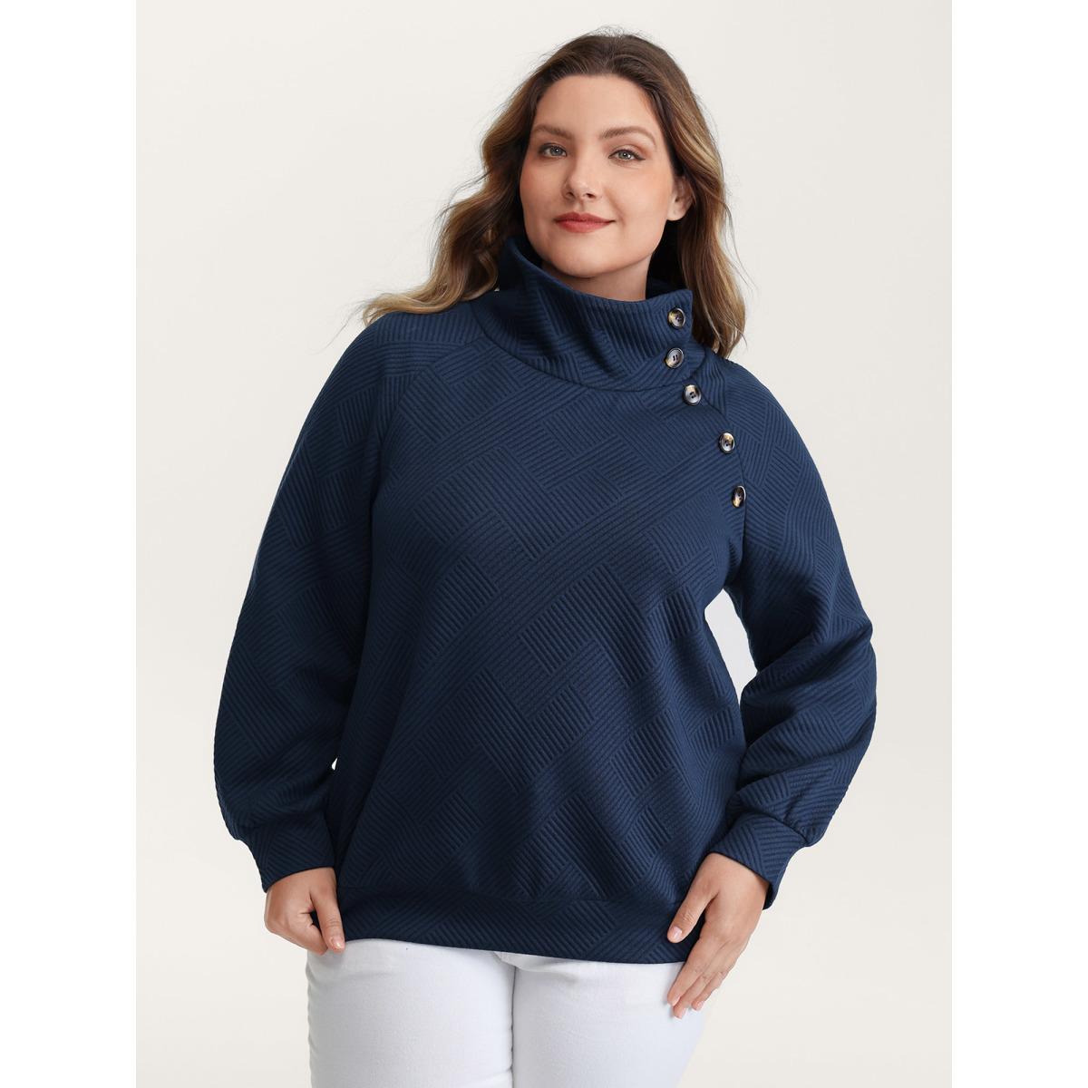 Plus Size Textured Folded Collar Button Sweatshirt Women Indigo Leisure Texture Turtleneck Casual Sweatshirts BloomChic 26/4X Product Image