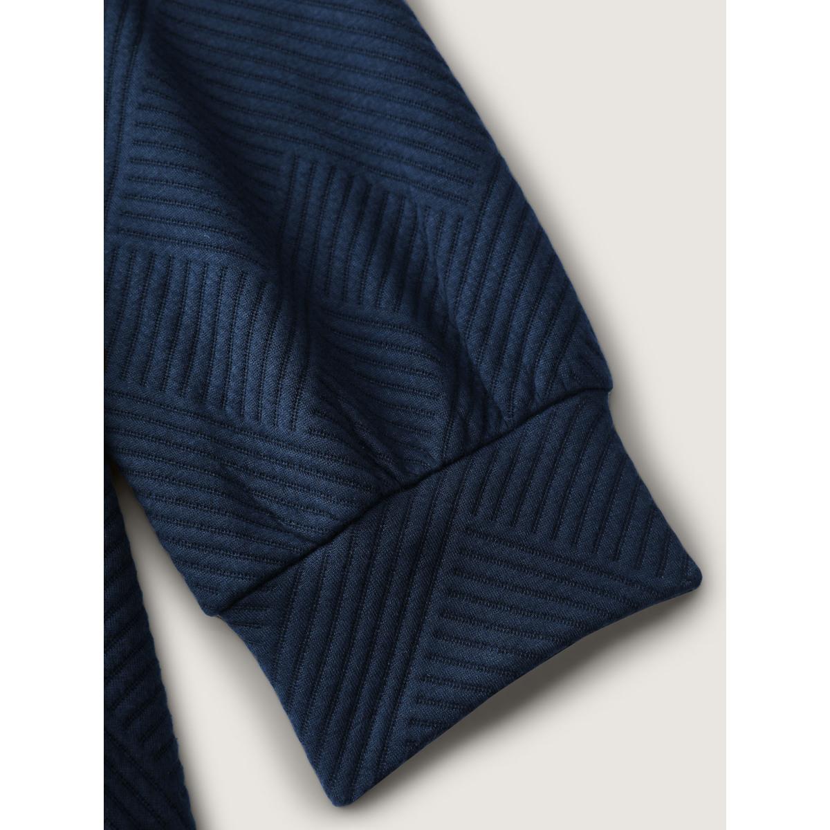Plus Size Plain Cable Knit Elastic Cuffs Sweatshirt Women Indigo Casual Texture V-neck Dailywear Sweatshirts BloomChic 26/4X