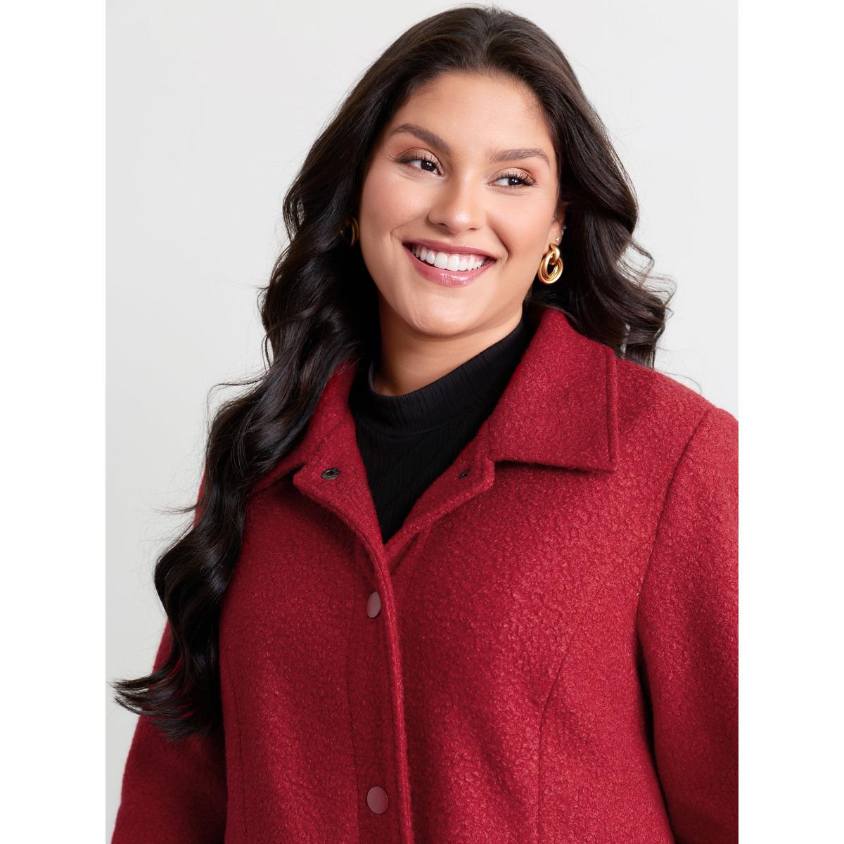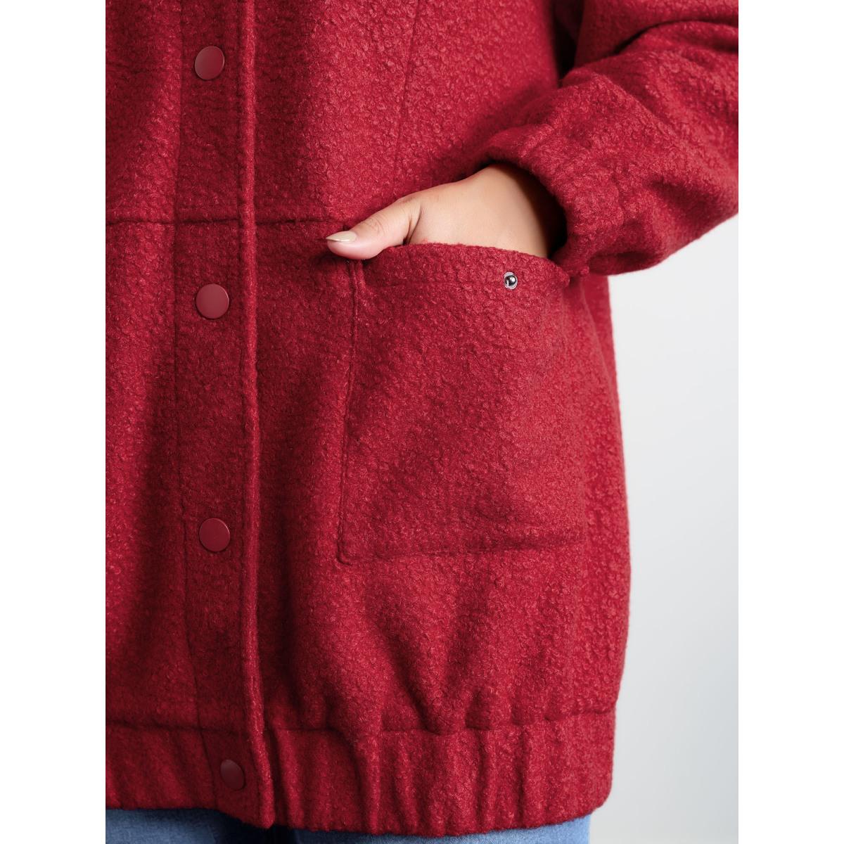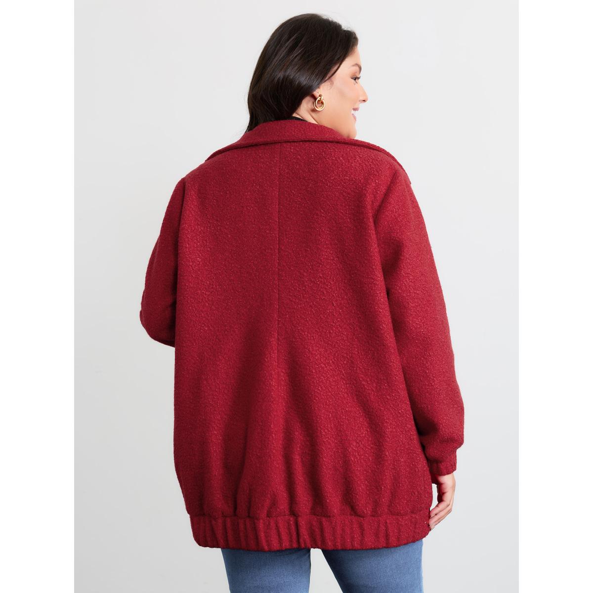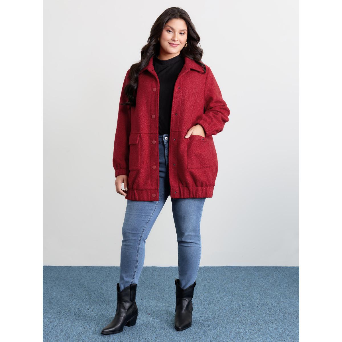 Plus Size Textured Fuzzy Button Stretchy Hem Jacket Women Crimson Button Loose Open pocket with flap Elegant Jackets BloomChic 18-20/2X