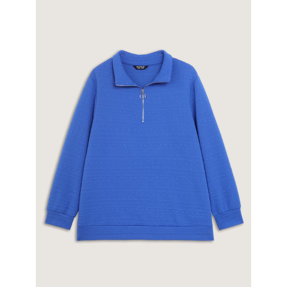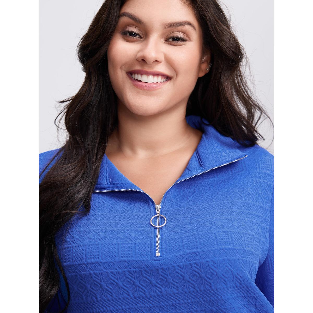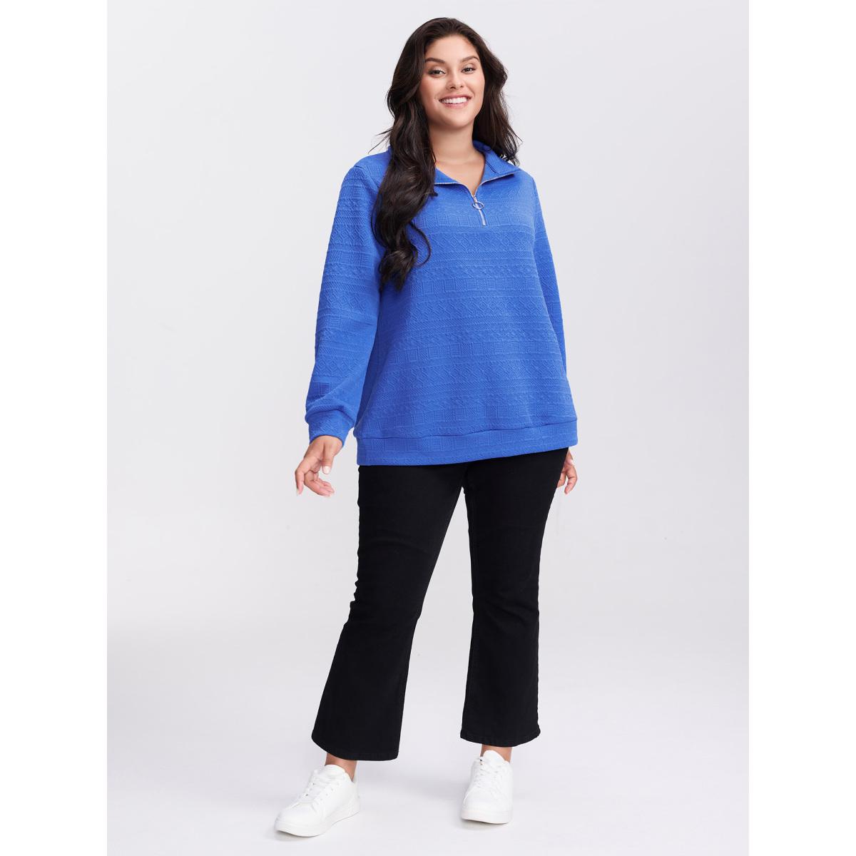 Plus Size Textured Half-Zipper Stretchy Sweatshirt Women Brightblue Leisure Texture Turtleneck Casual Sweatshirts BloomChic 14-16/1X