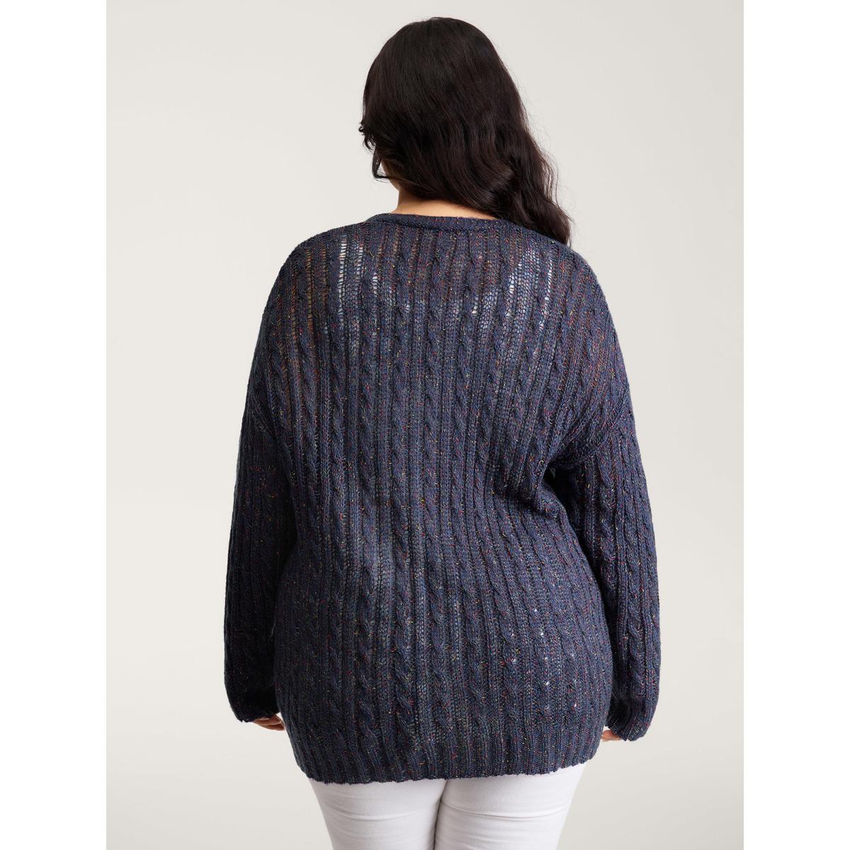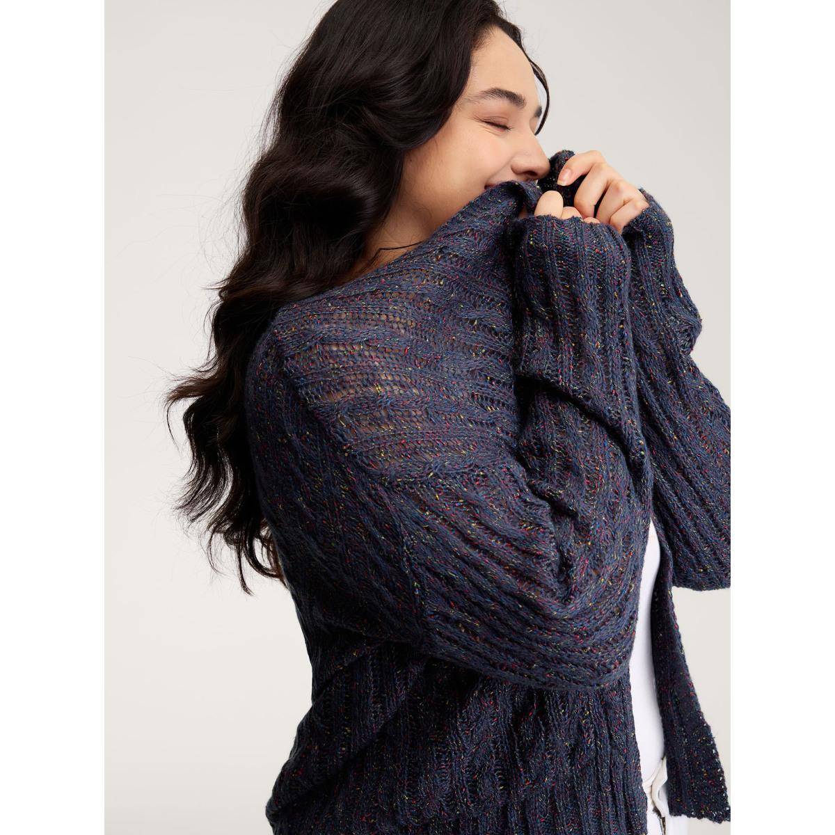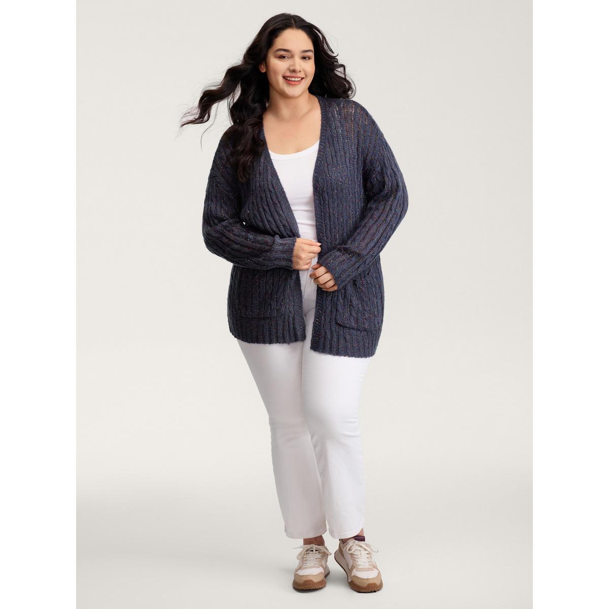 Plus Size Textured Heather Pockets Open-Front Cardigan Indigo Women Leisure Loose Long Sleeve Casual Cardigans BloomChic 18-20/2X