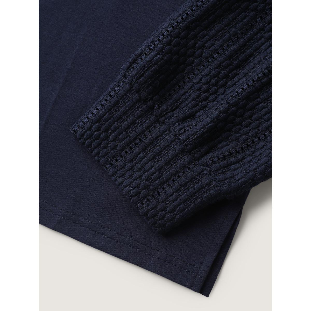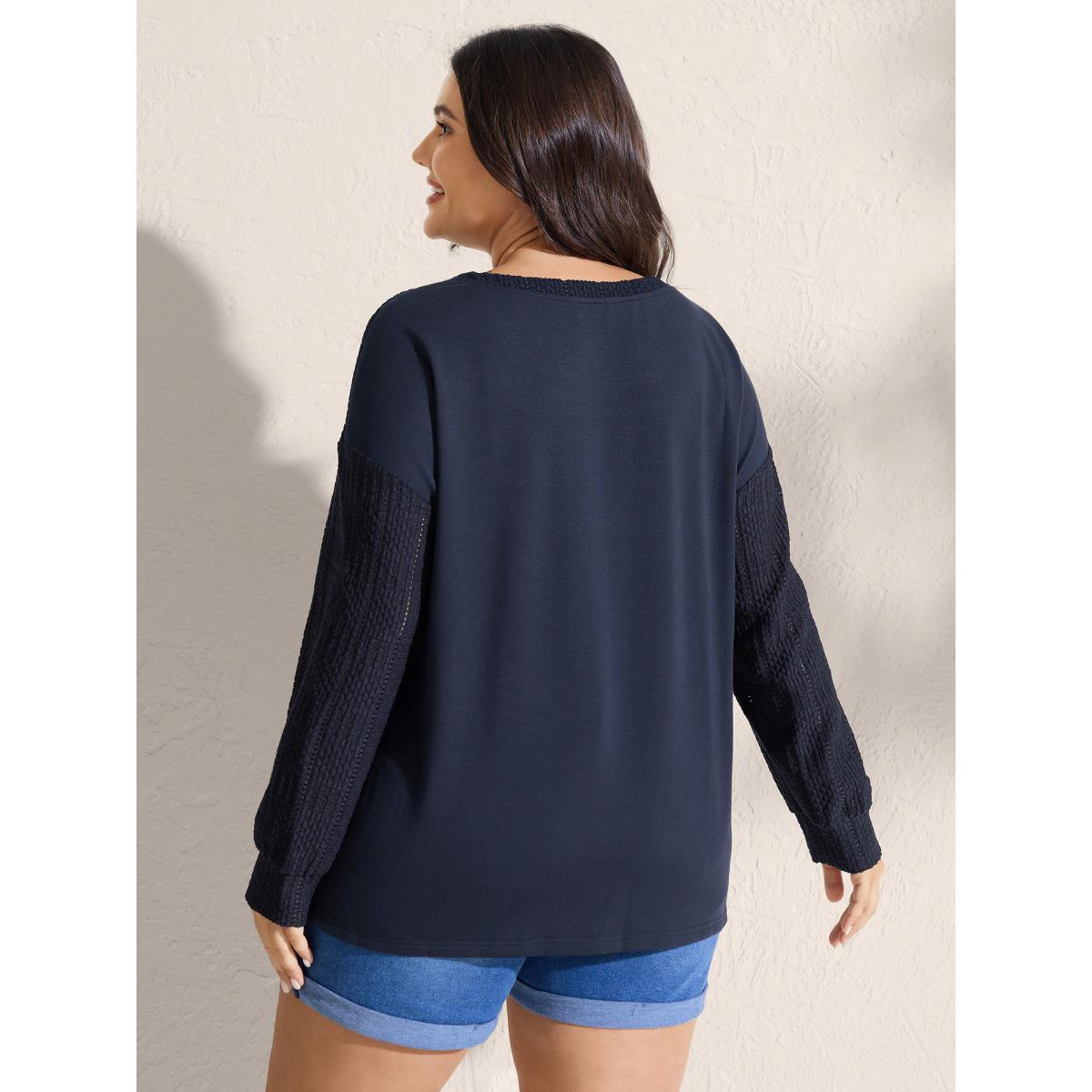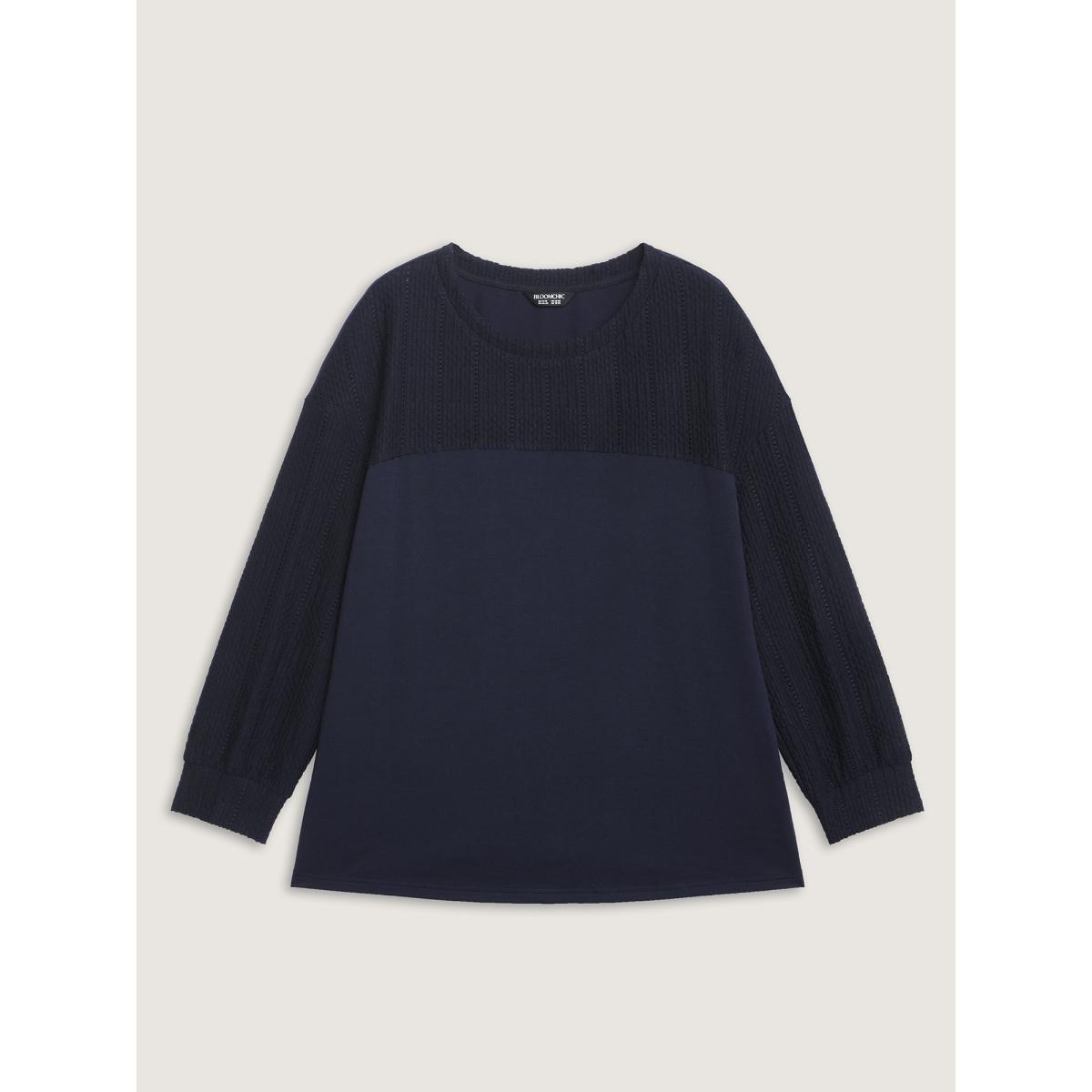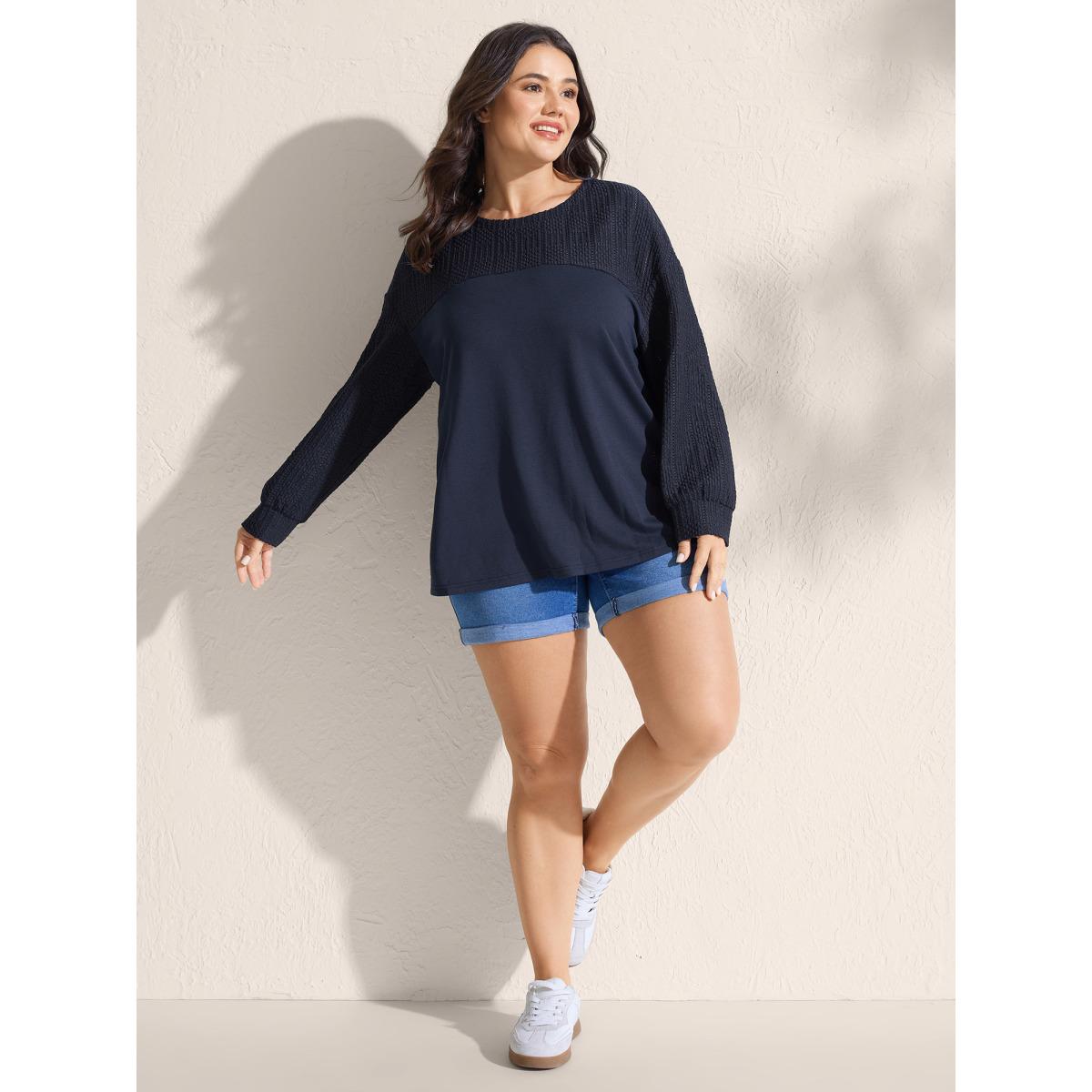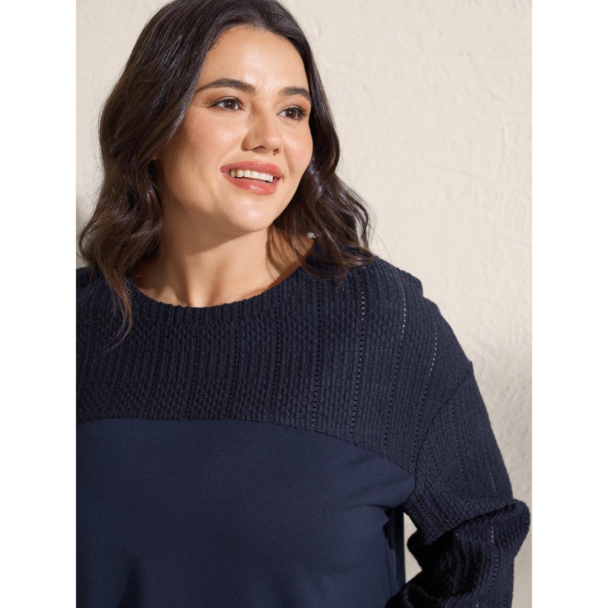 Plus Size Textured Neckline Dual Toned Sweatshirt Women DarkBlue Leisure Patchwork Round Neck Casual Sweatshirts BloomChic 22-24/3X
