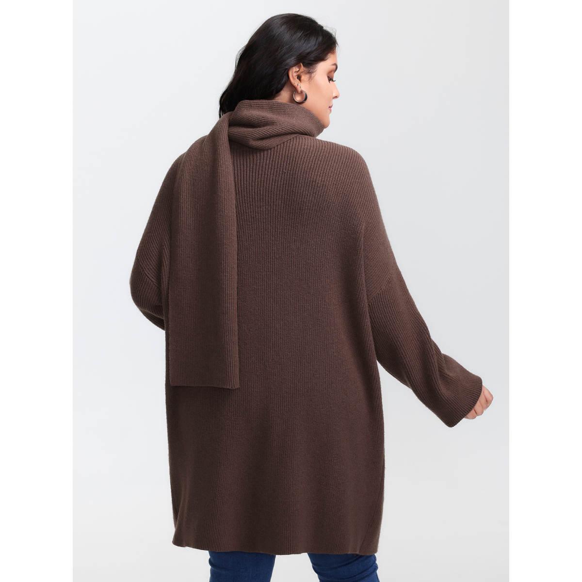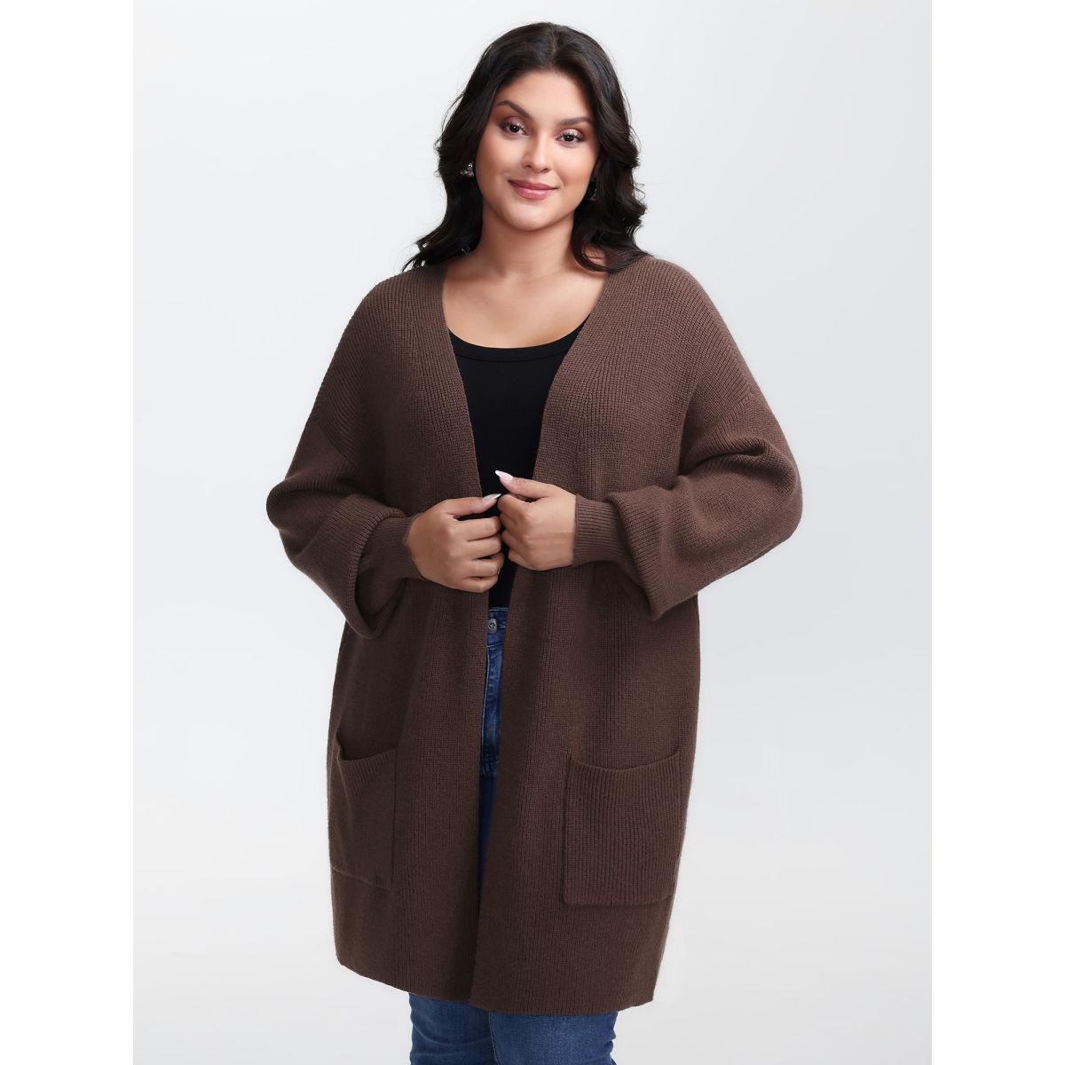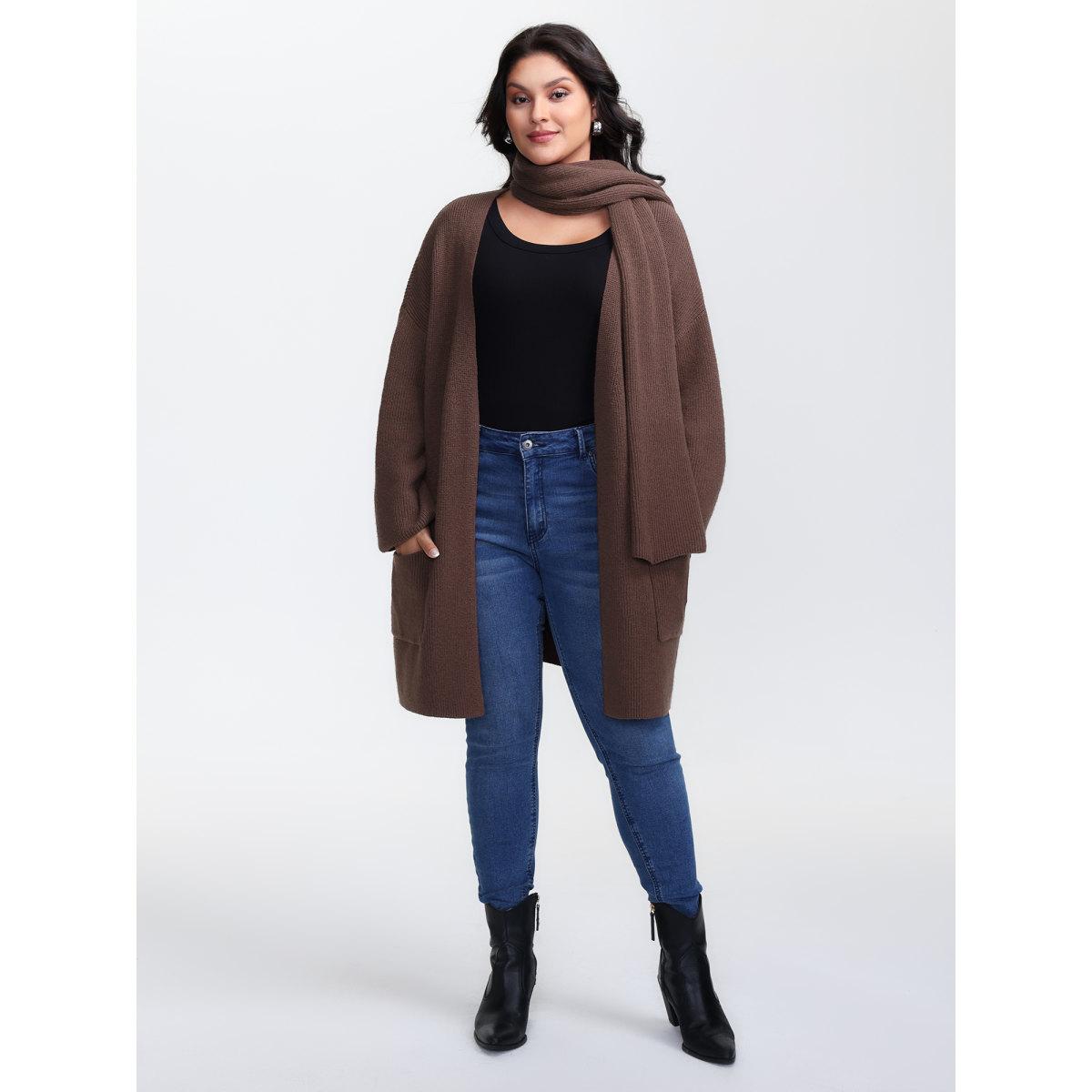 Plus Size Textured Scarf Pockets Knit Cardigan Browncoffeecolor Women Leisure Loose Long Sleeve Casual Cardigans BloomChic 14-16/1X