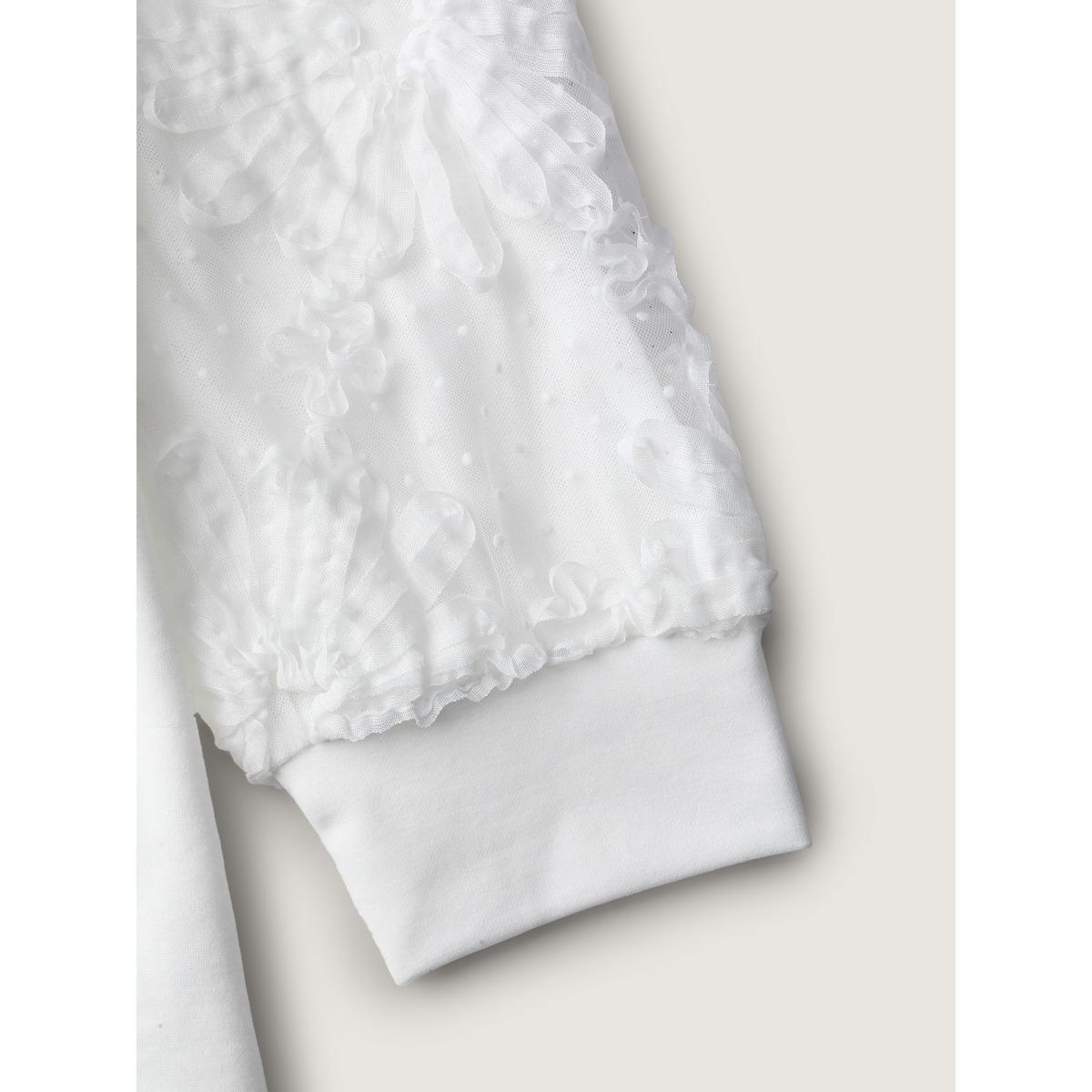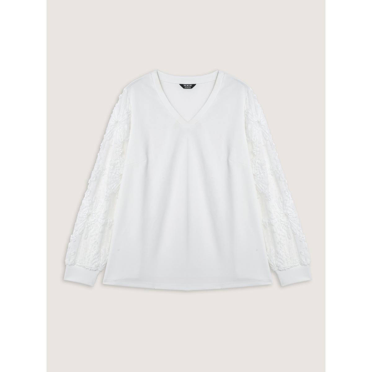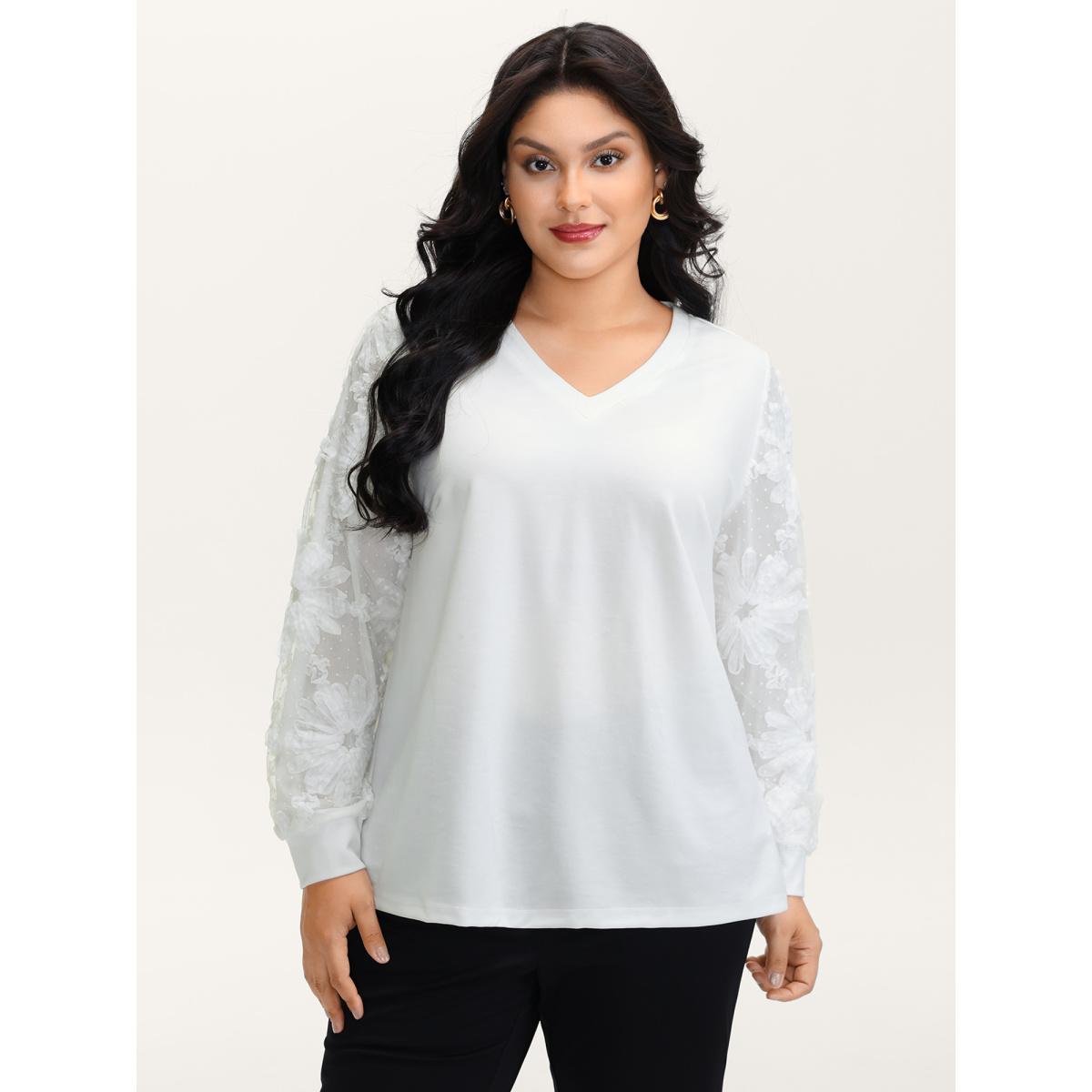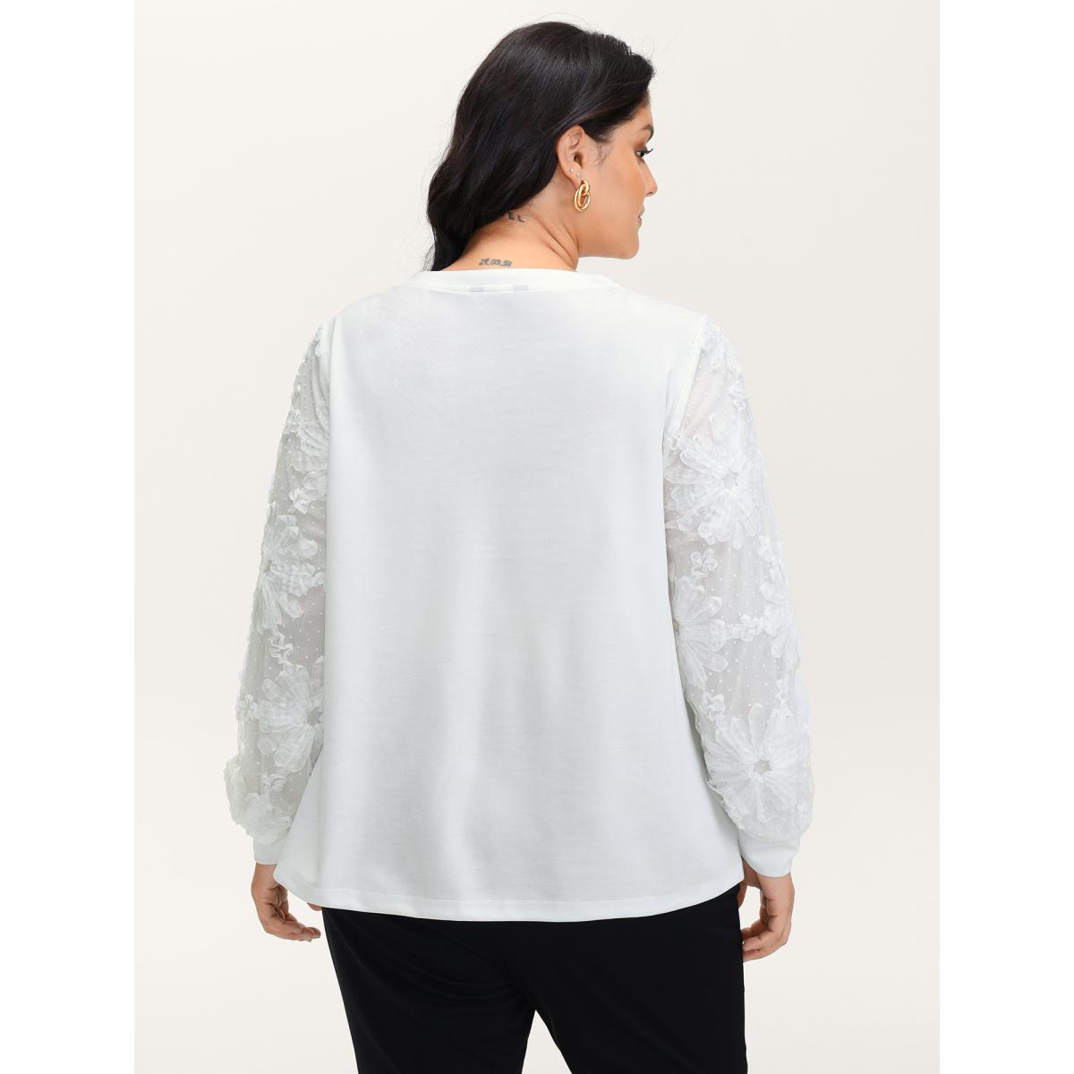 Plus Size Lace Sleeve Layered Floral T-Shirt WhiteSmoke Women Timeless Contrast Natural Flowers Round Neck Elegant T-shirts BloomChic 18-20/2X