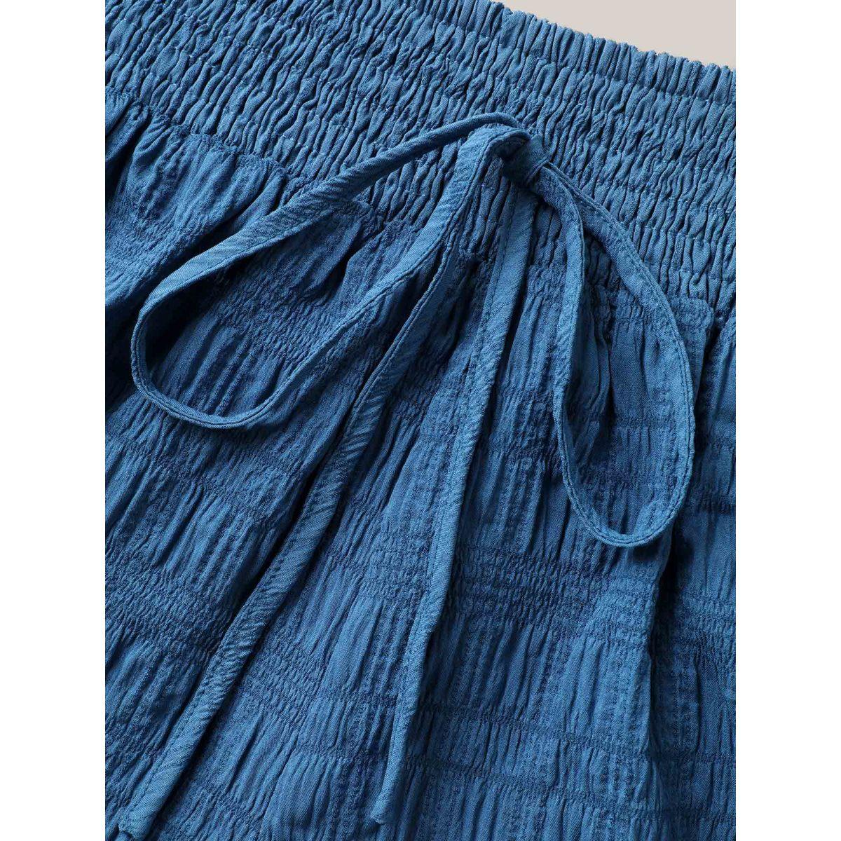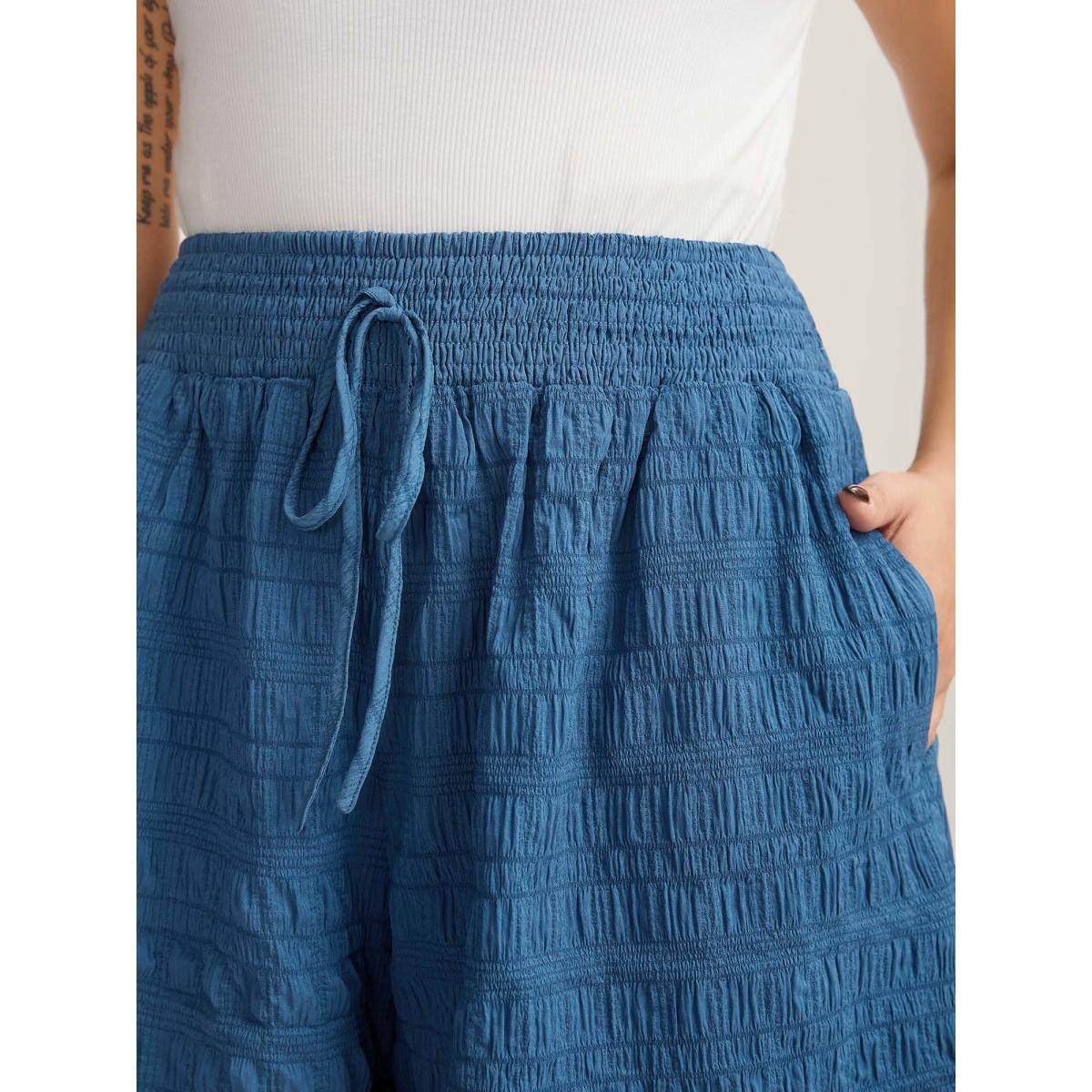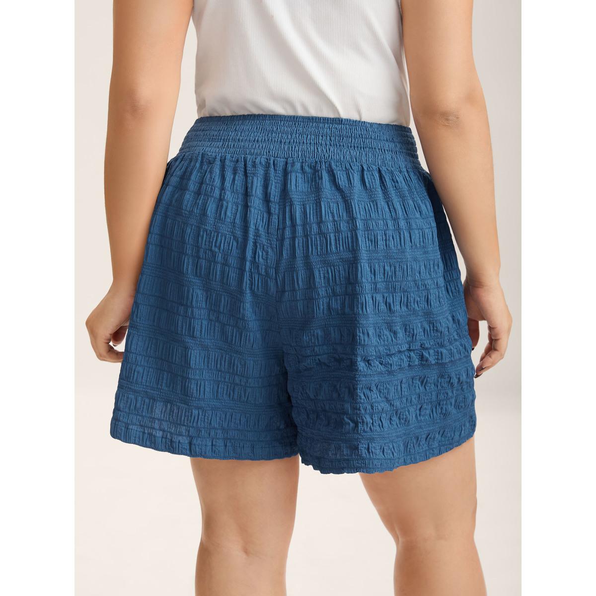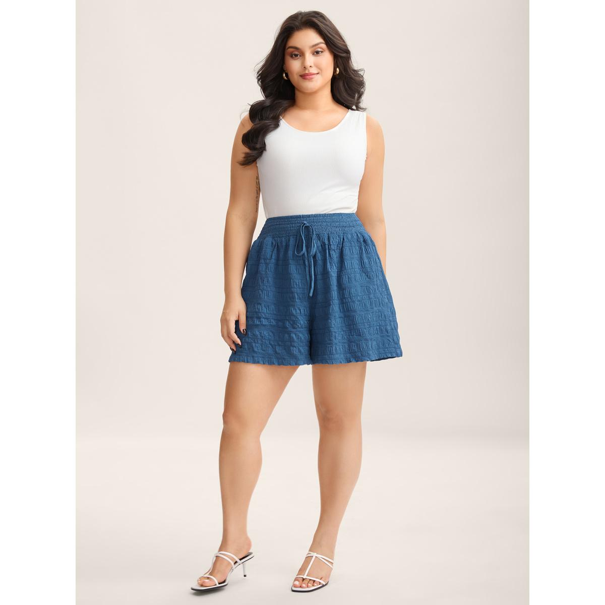 Plus Size Textured Shirred Waist Tie Shorts Women Mediumblue Timeless Texture Loose Elegant Shorts BloomChic 28/5X