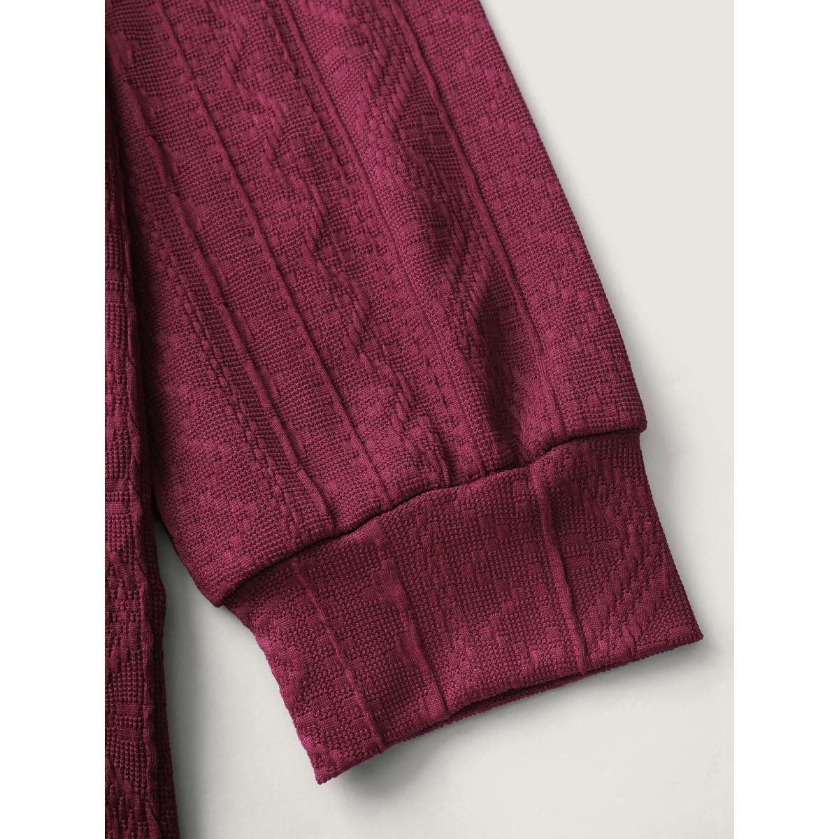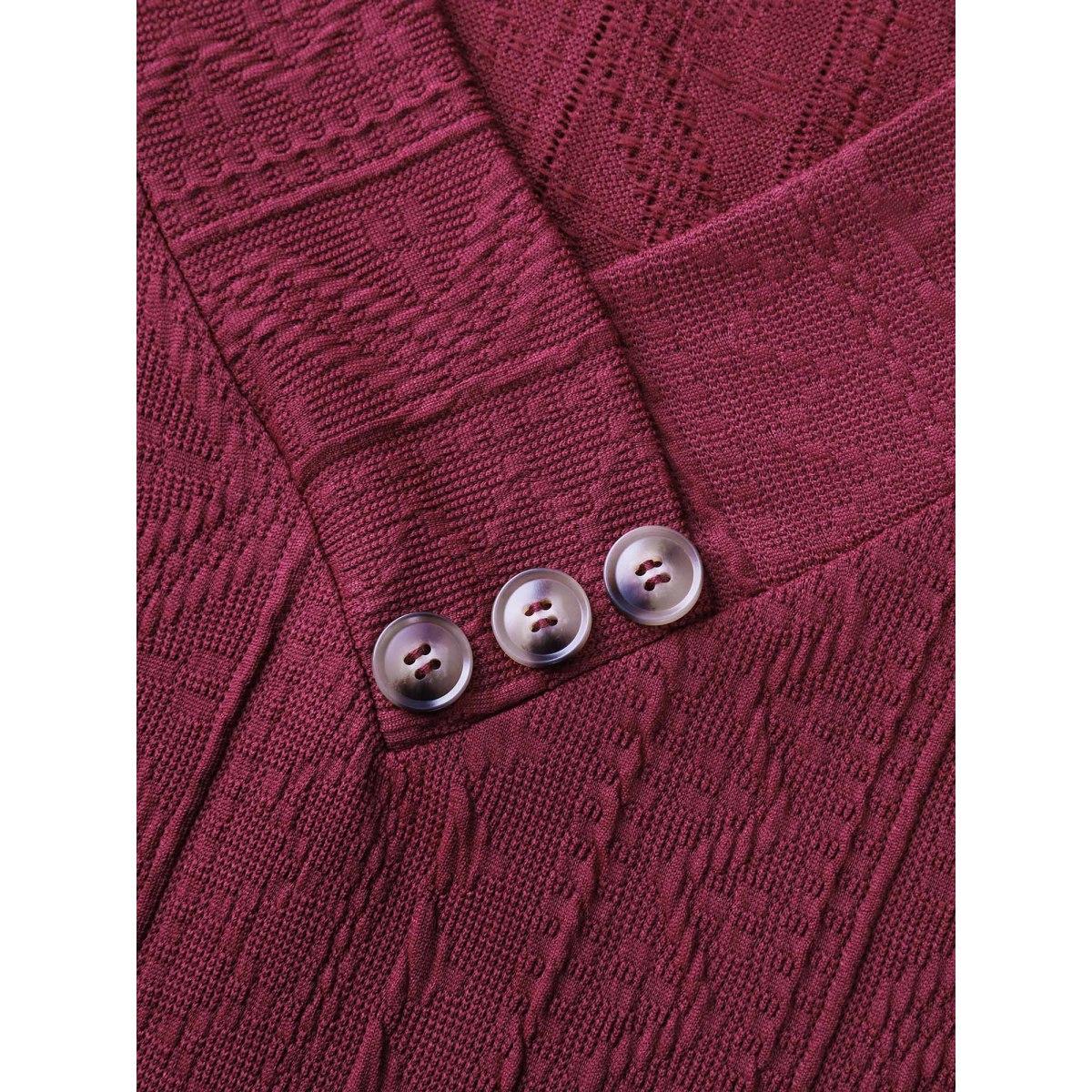 Plus Size Textured Stretchy Buttons T-Shirt Burgundy Women Leisure Texture V-neck Casual T-shirts BloomChic 14-16/1X