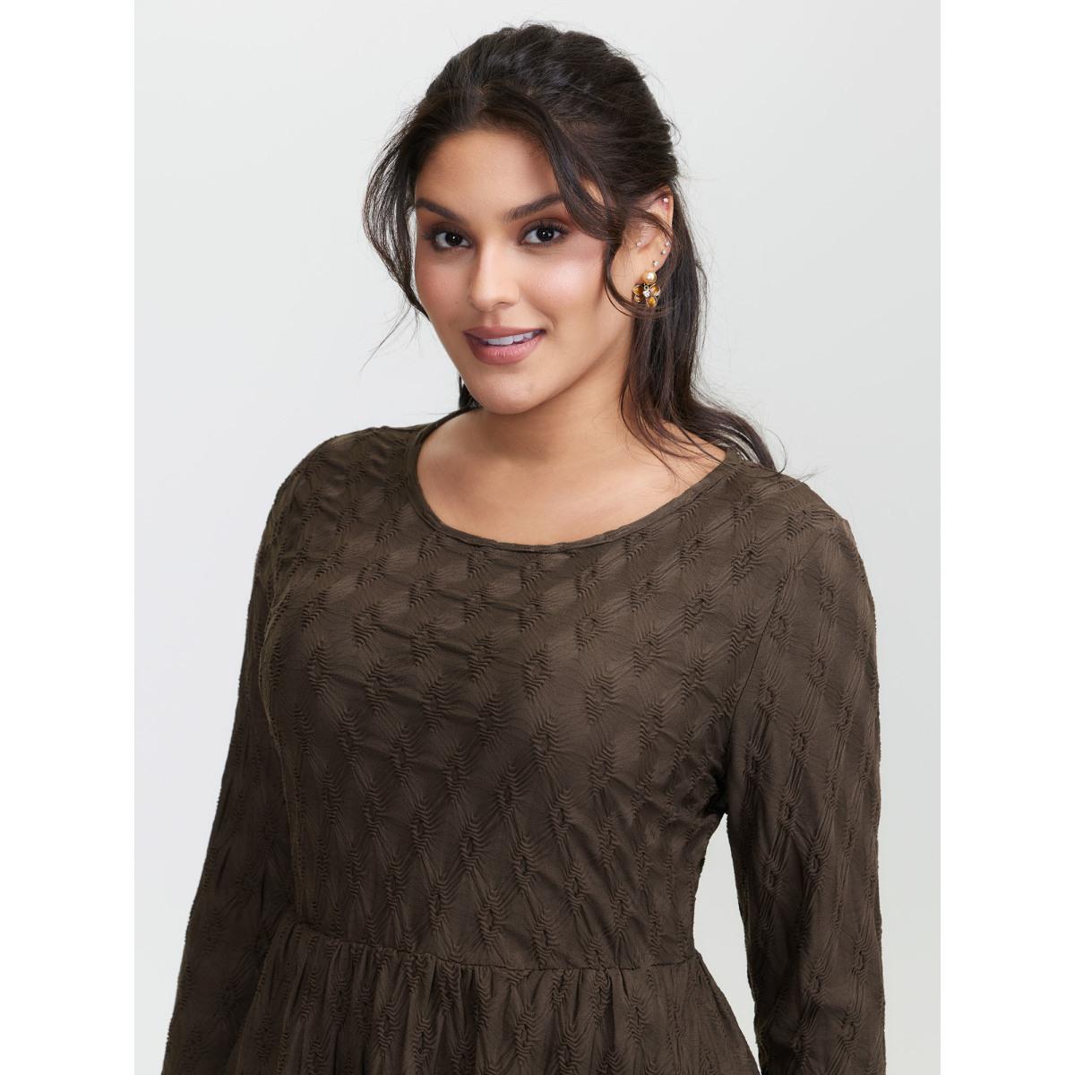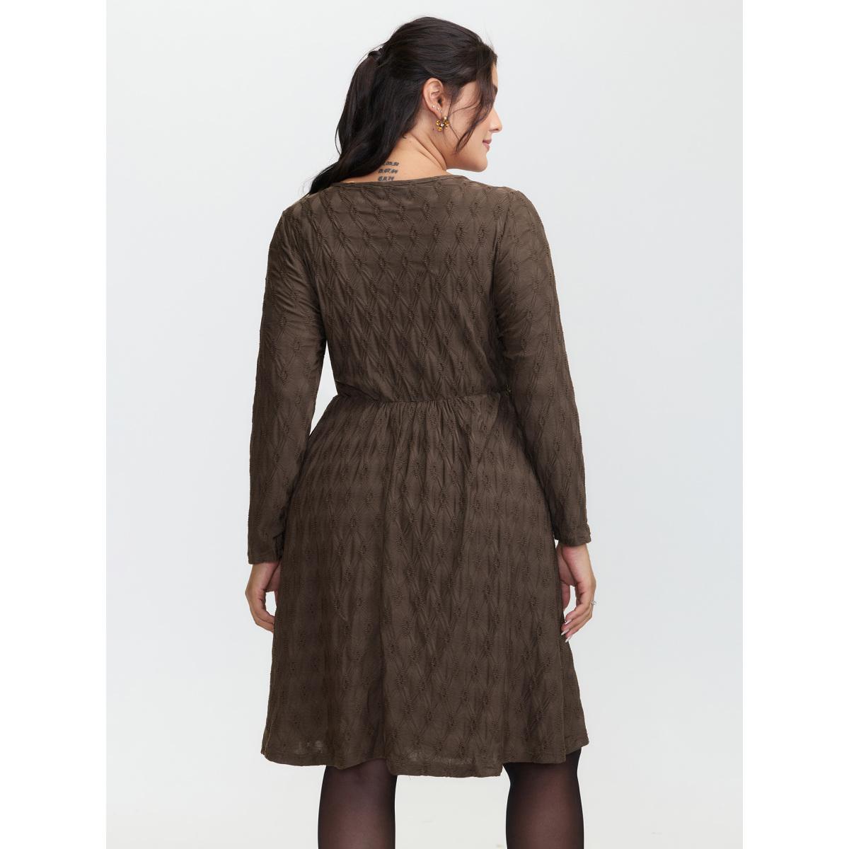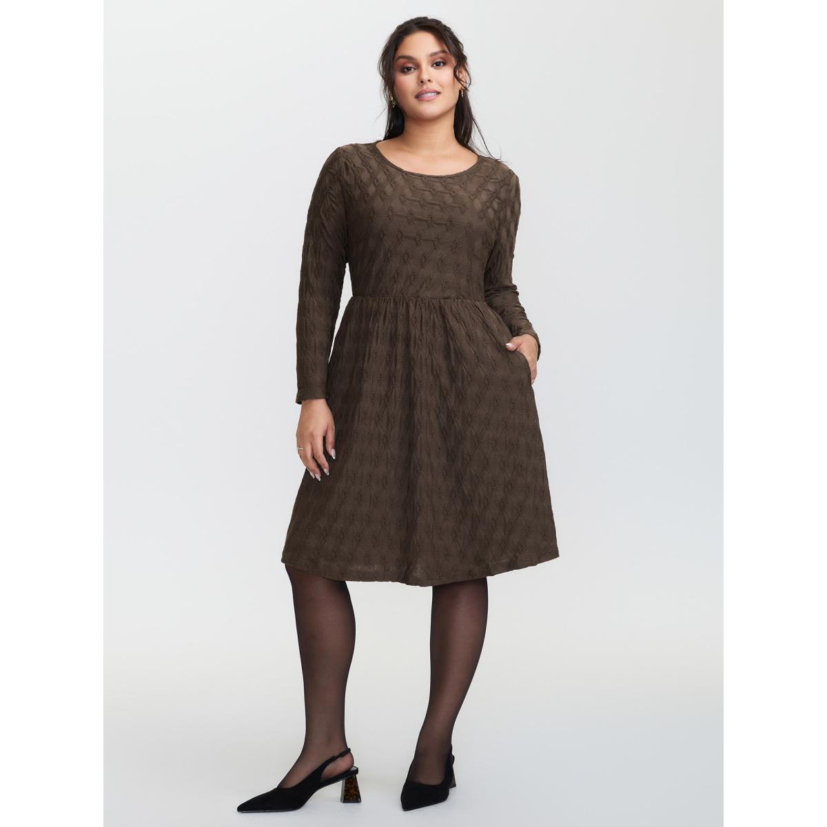 Plus Size Textured Stretchy Pockets Midi Knit Dress DarkBrown Women Timeless Knit Dresses Bloomchic 28/5X