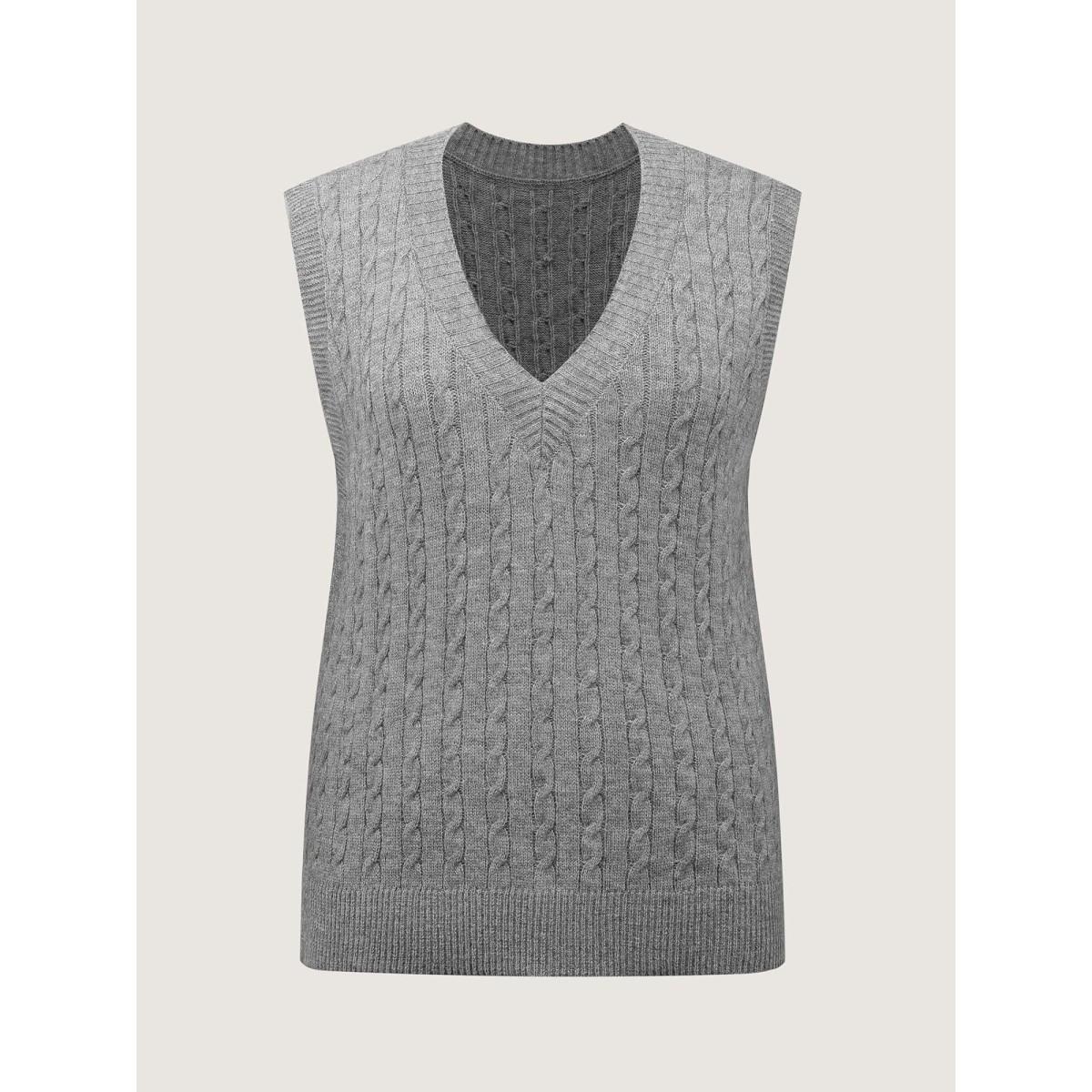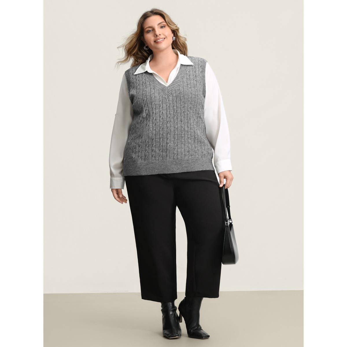 Plus Size Textured V-Neck Sweater Vest Mediumgray Women Leisure Loose Sleeveless V-neck Casual Pullovers BloomChic 26/4X