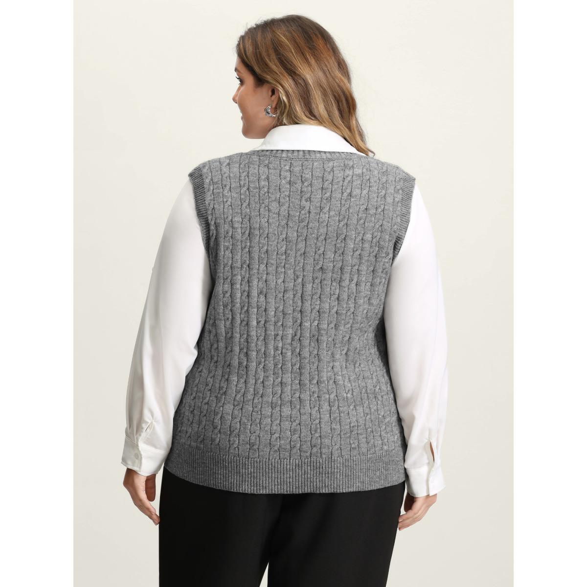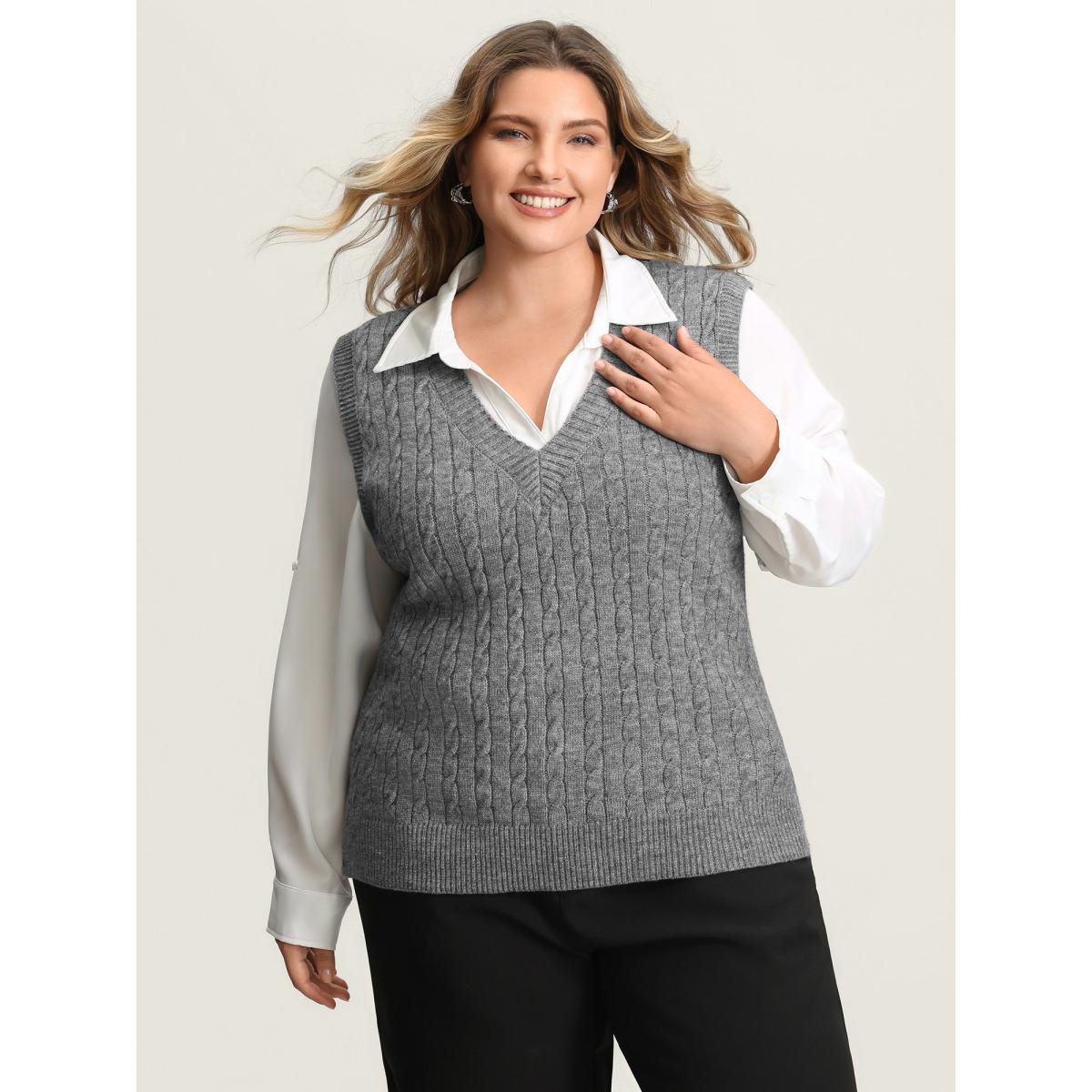 Plus Size Textured V-Neck Sweater Vest Mediumgray Women Leisure Loose Sleeveless V-neck Casual Pullovers BloomChic 26/4X Product Image