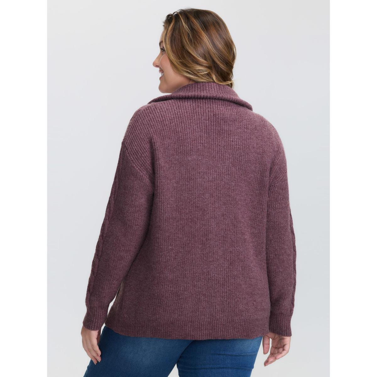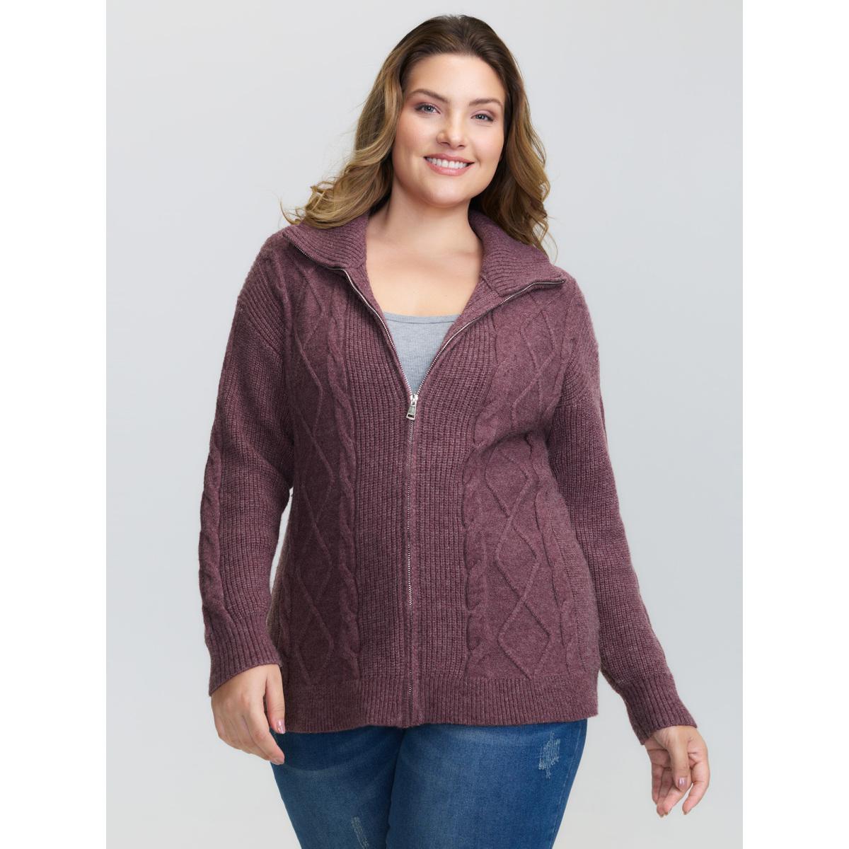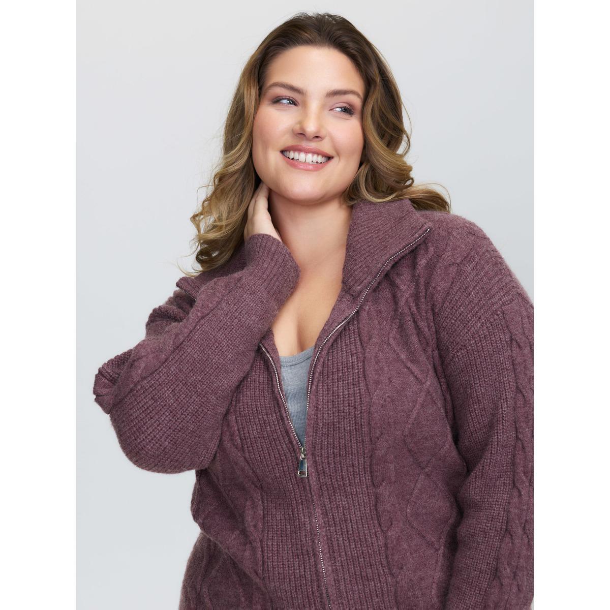 Plus Size Textured Zipper Solid Knit Cardigan Deepred Women Leisure Loose Long Sleeve Casual Cardigans BloomChic 26/4X Product Image
