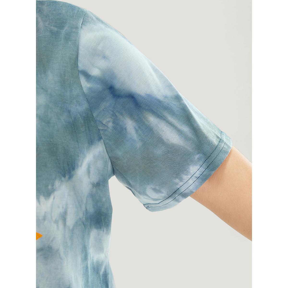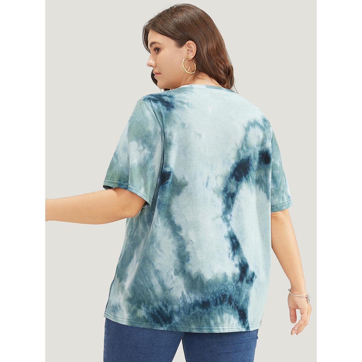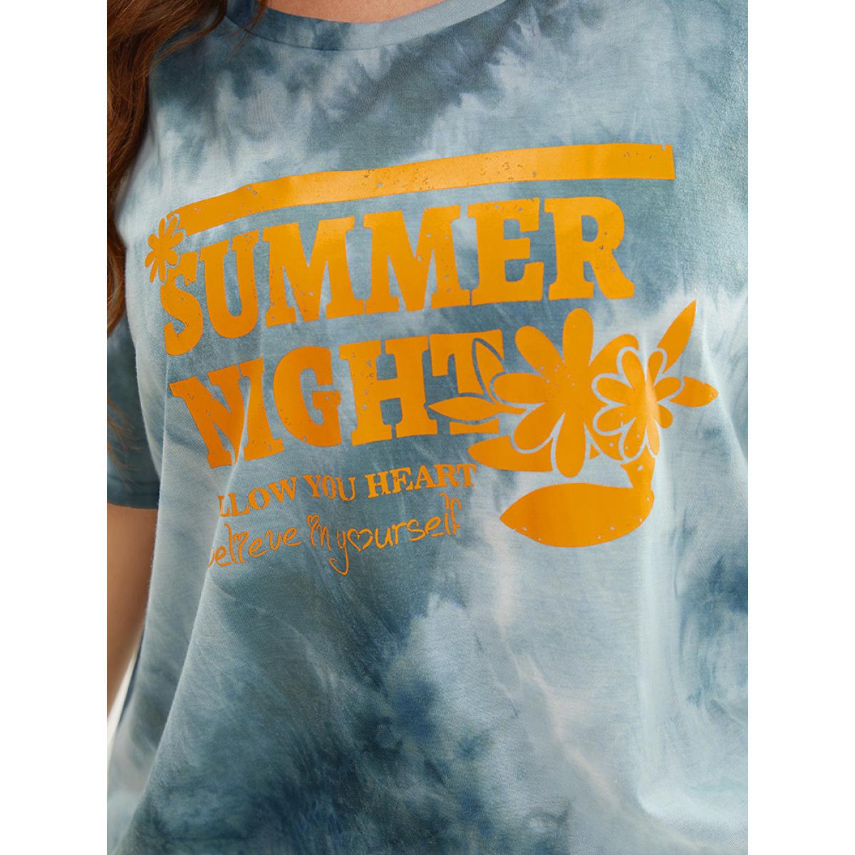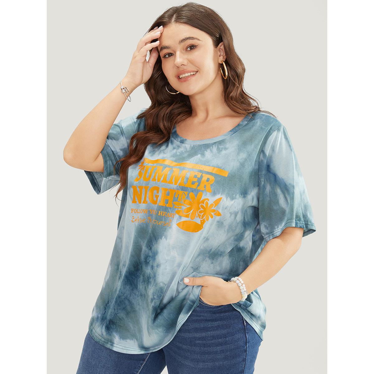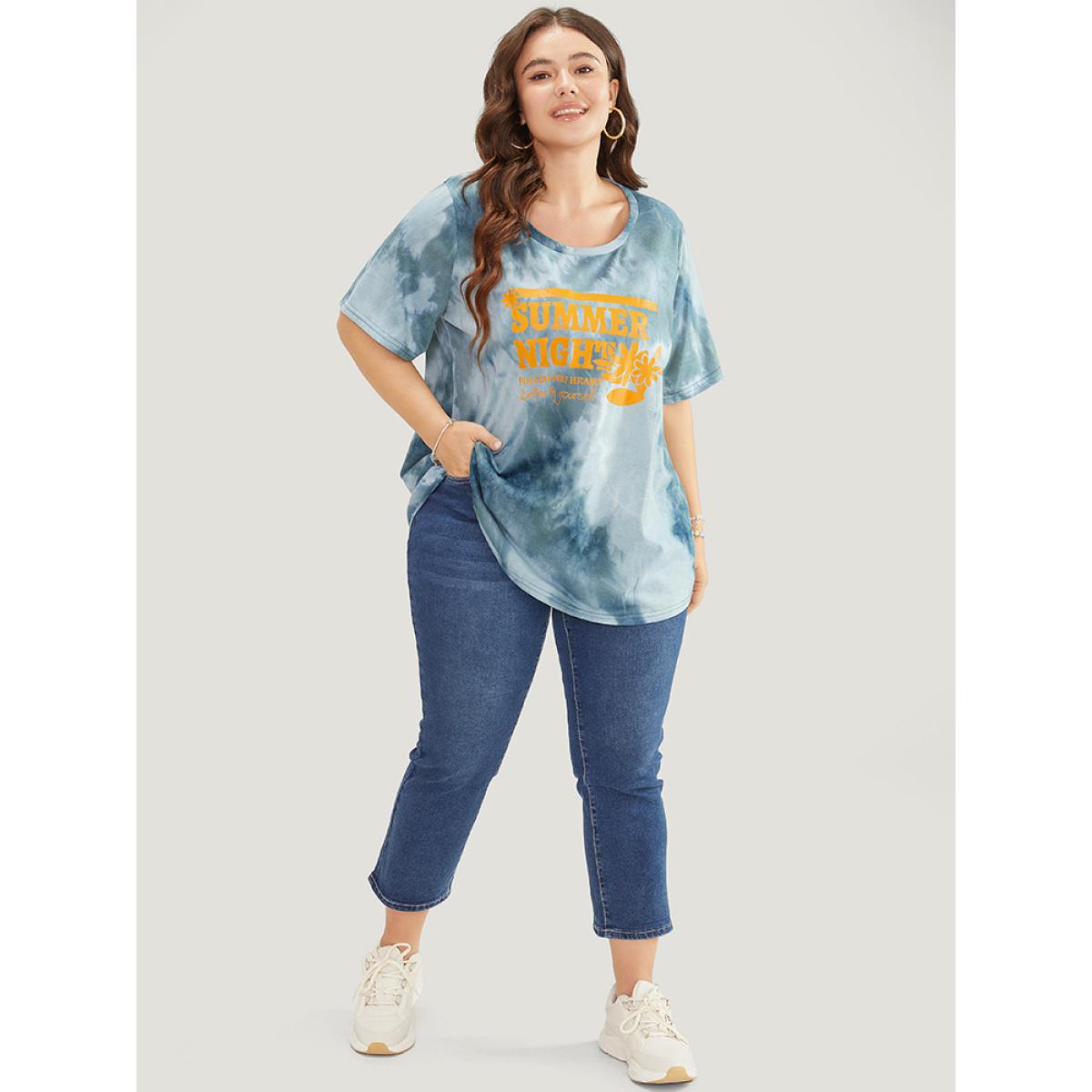 Plus Size Tie Dye Round Neck Letter Graphic T-shirt SlateGray Women Casual Printed Letter Dailywear T-shirts BloomChic 26/4X