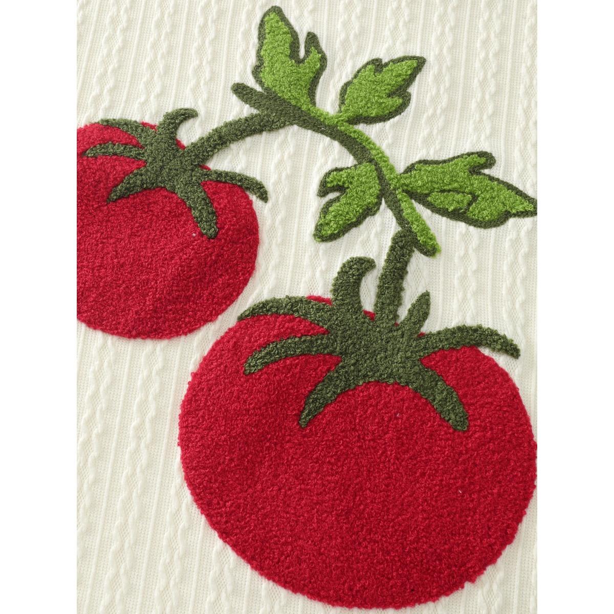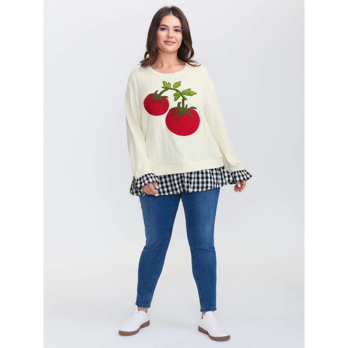 Plus Size Tomato Embroidery Textured Contrast Sweatshirt Women Ivory Playful Embroidered Round Neck Casual Sweatshirts BloomChic 26/4X
