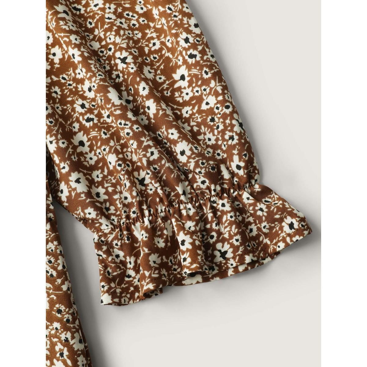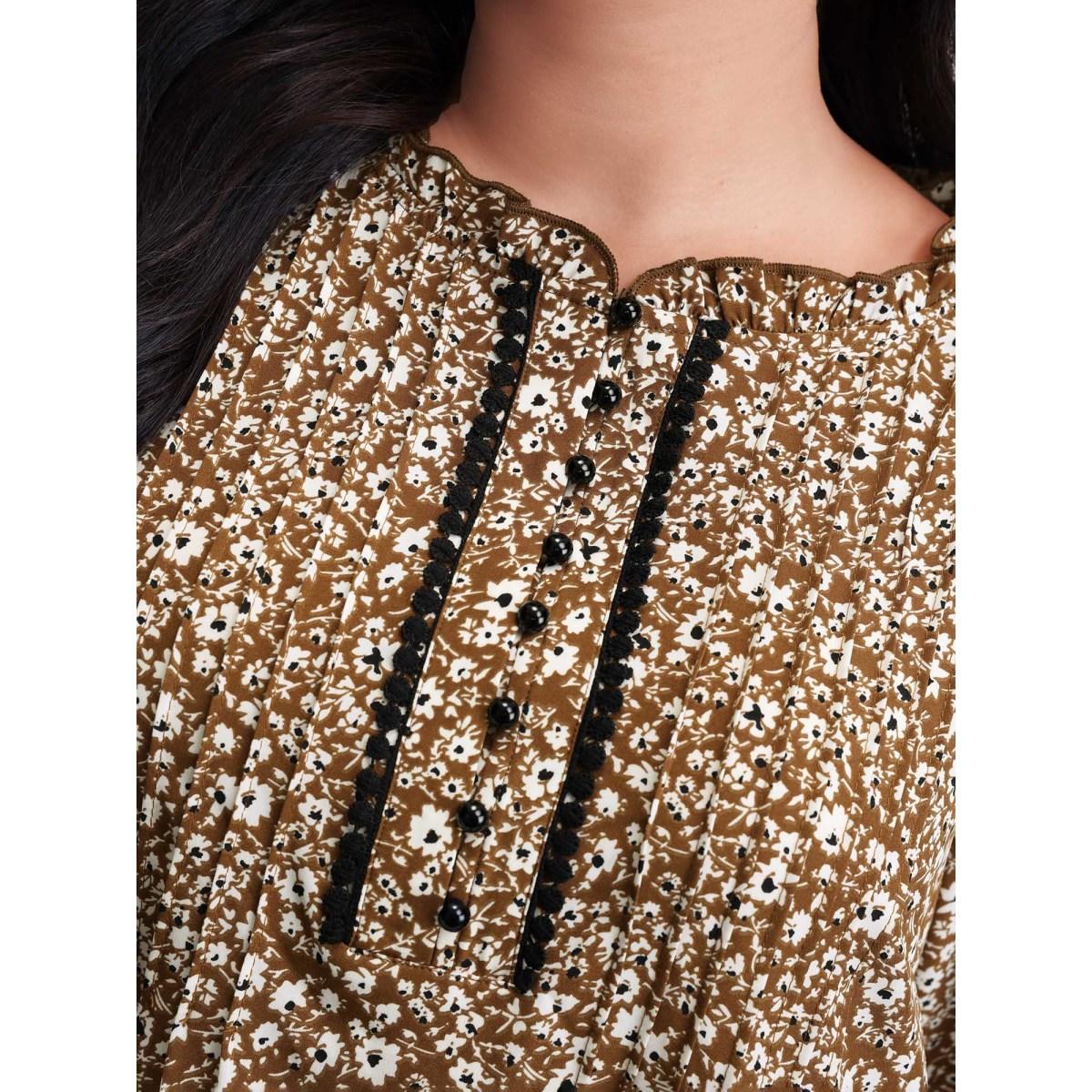 Plus Size Toothpick Pleat Contrast Placket Midi Dress Browncoffeecolor Women Playful Tucked seam Round Neck Extra Long Sleeve Curvy BloomChic 22-24/3X