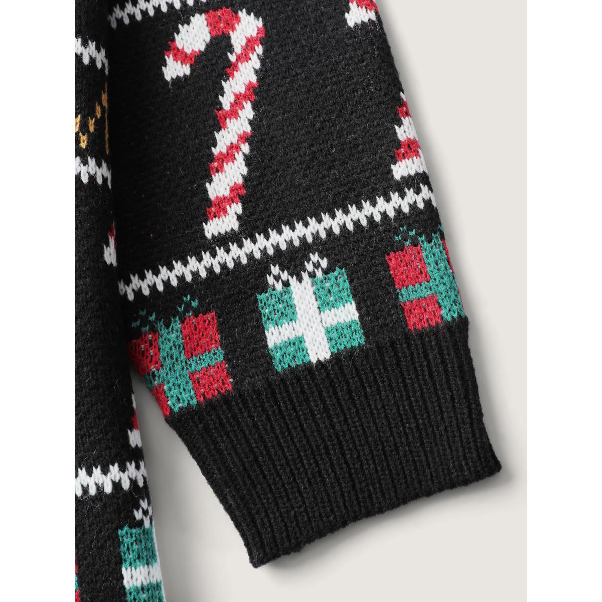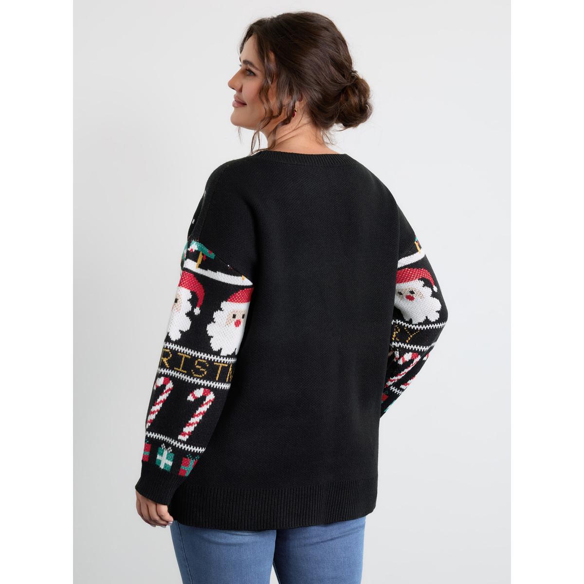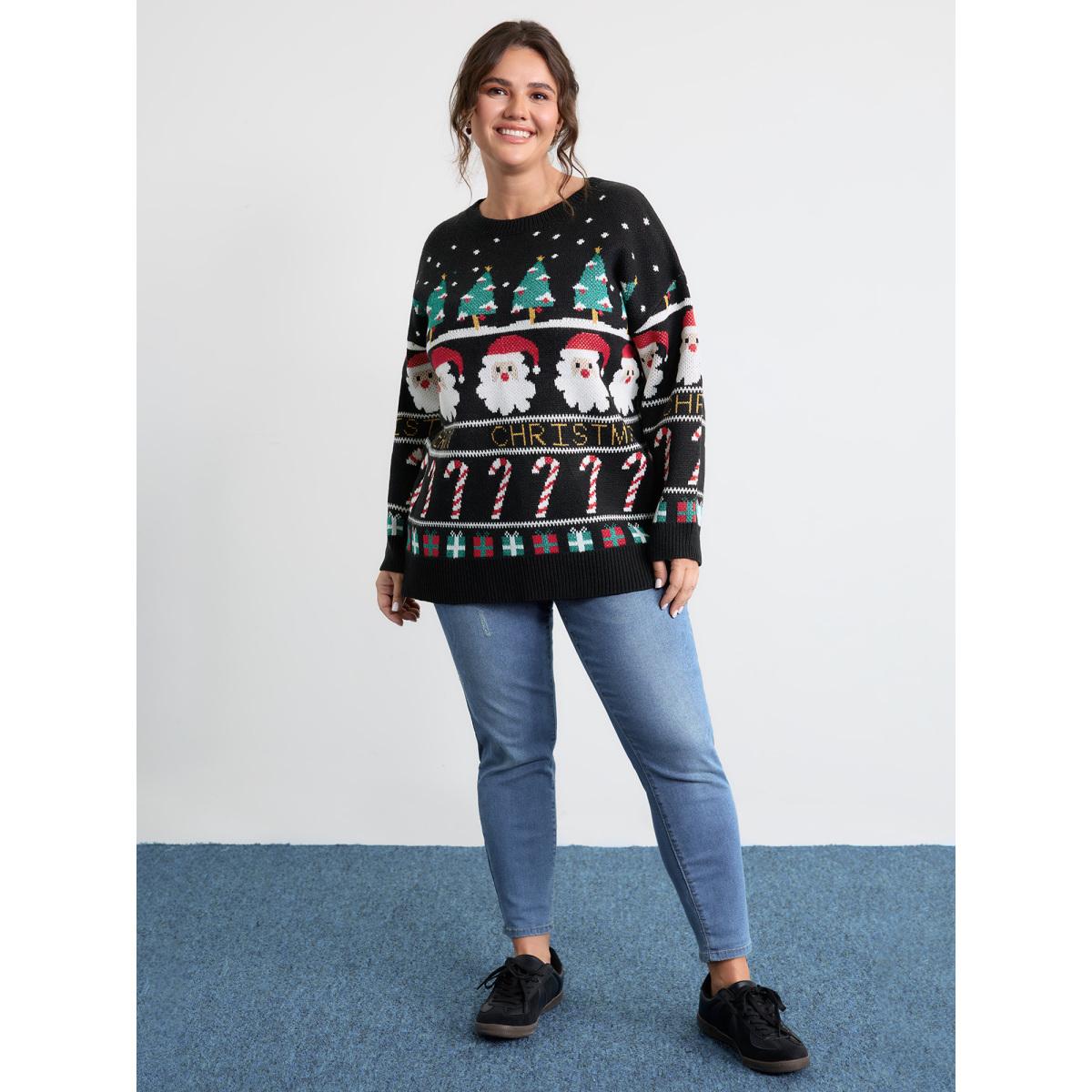 Plus Size Tree Holiday Candy Jacquard Pullover Black Women Leisure Loose Long Sleeve Round Neck Casual Pullovers BloomChic 26/4X