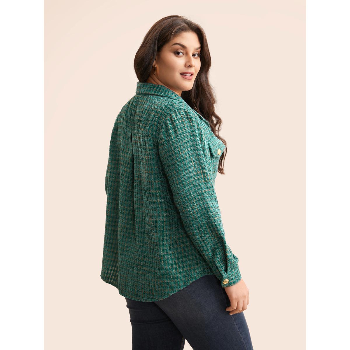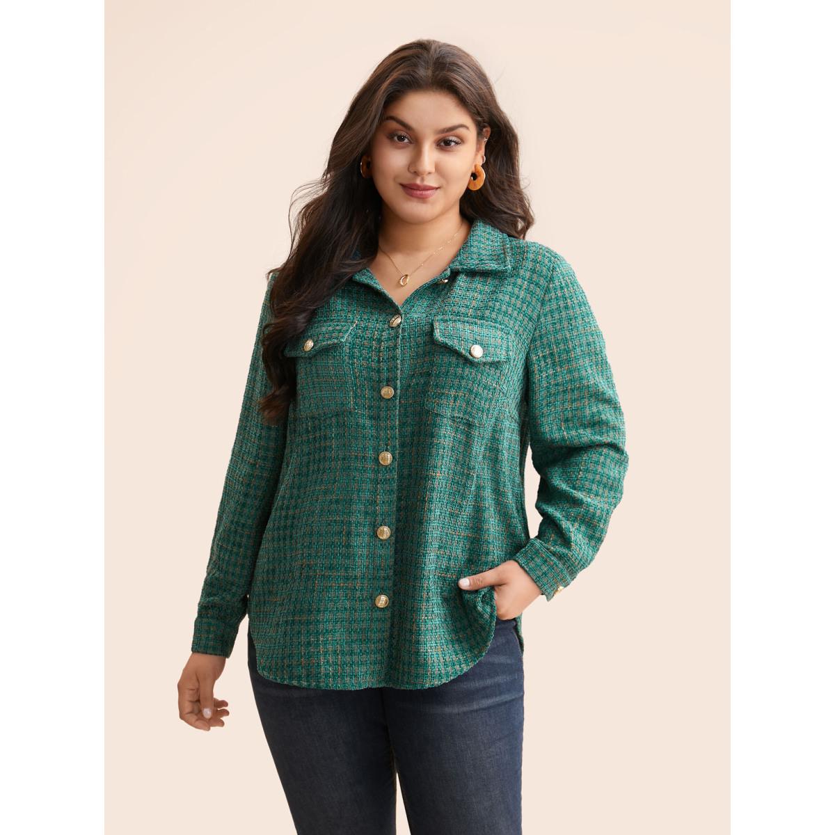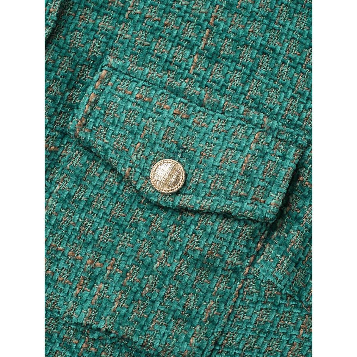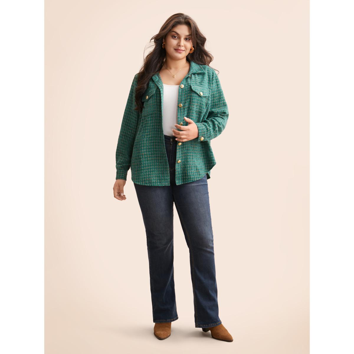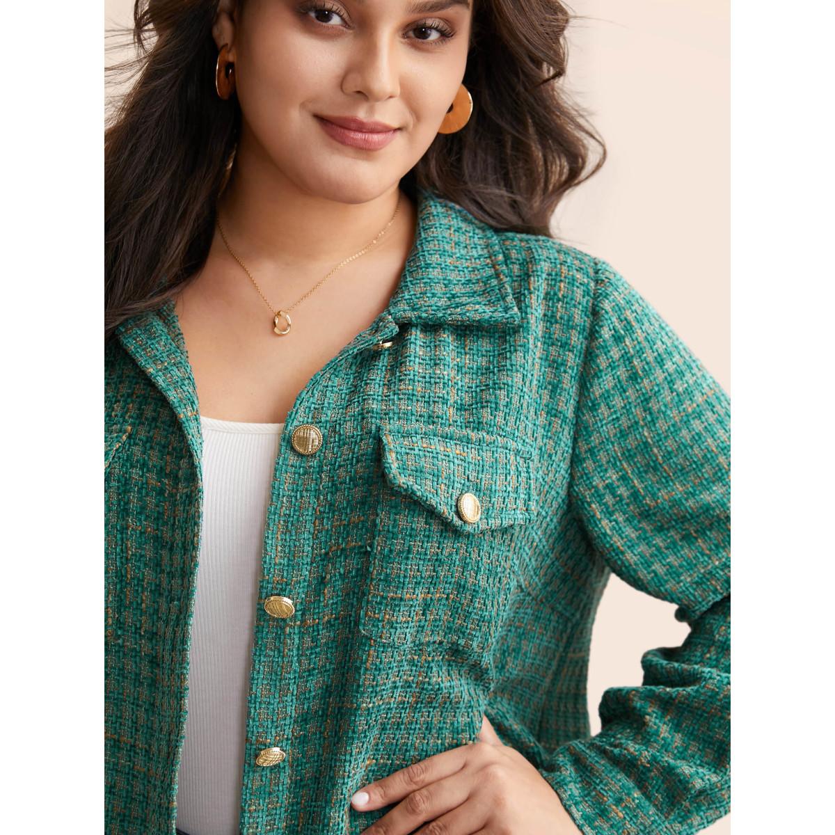 Plus Size Tweed Patch Pocket Pleated Jacket Women Teal Texture Loose Patch pocket Everyday Jackets BloomChic 30/6X
