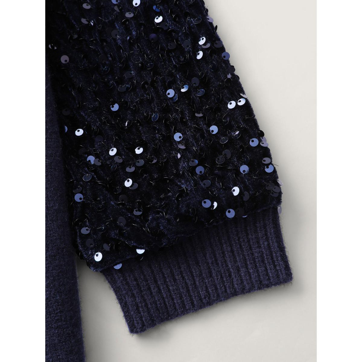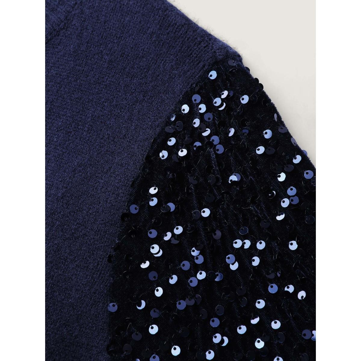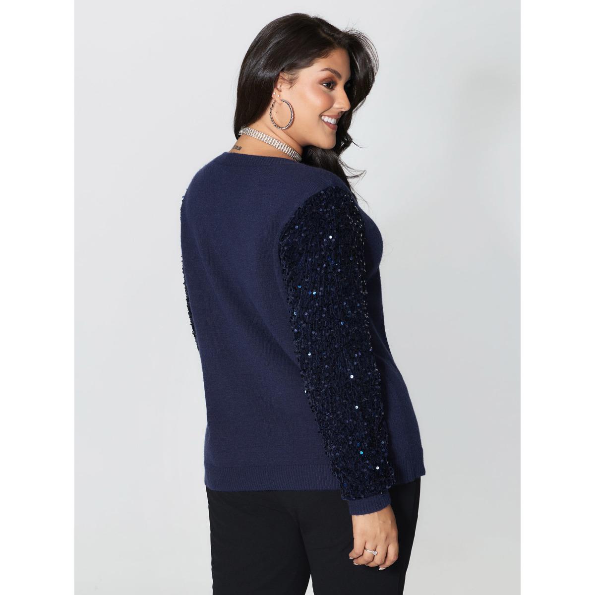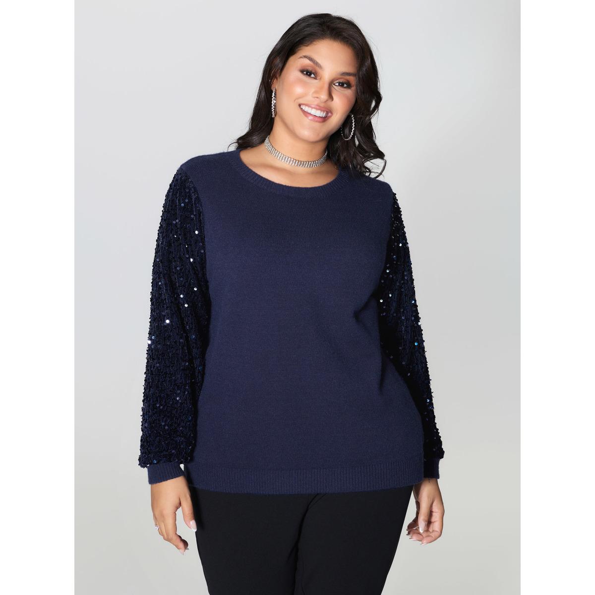 Plus Size Twist Floral Sequin Sleeve Pullover Midnight Women Party&Cocktail Loose Long Sleeve Round Neck Party Pullovers BloomChic 12/L