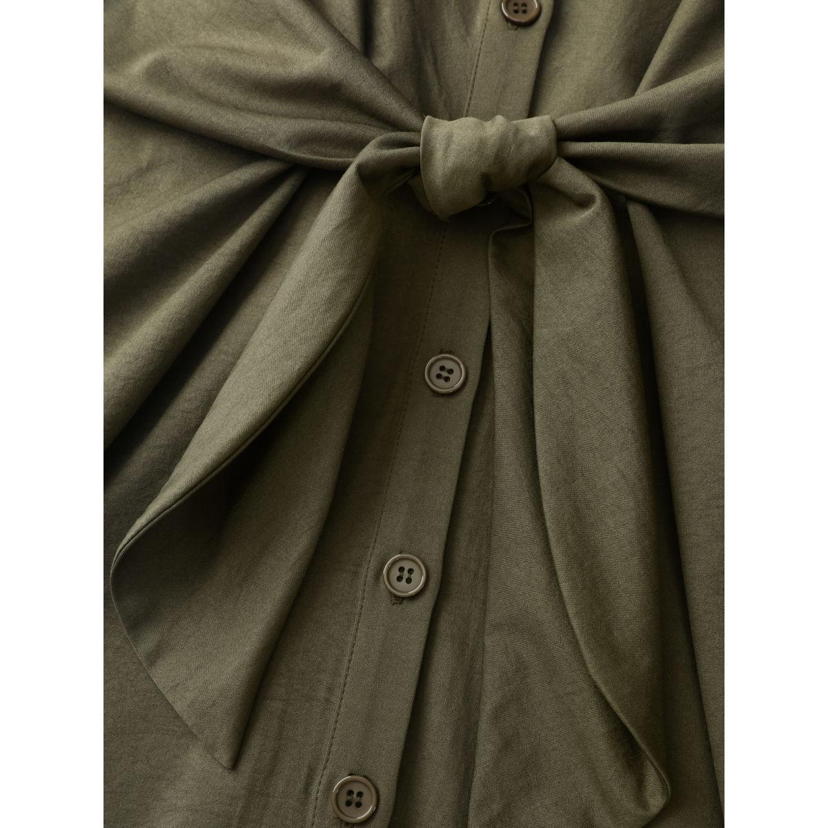 Plus Size Plain Tie Knot Button Detail Shirred Dress ArmyGreen Women At the Office Tie knot V-neck Short sleeve Curvy Midi Dress BloomChic 18-20/2X