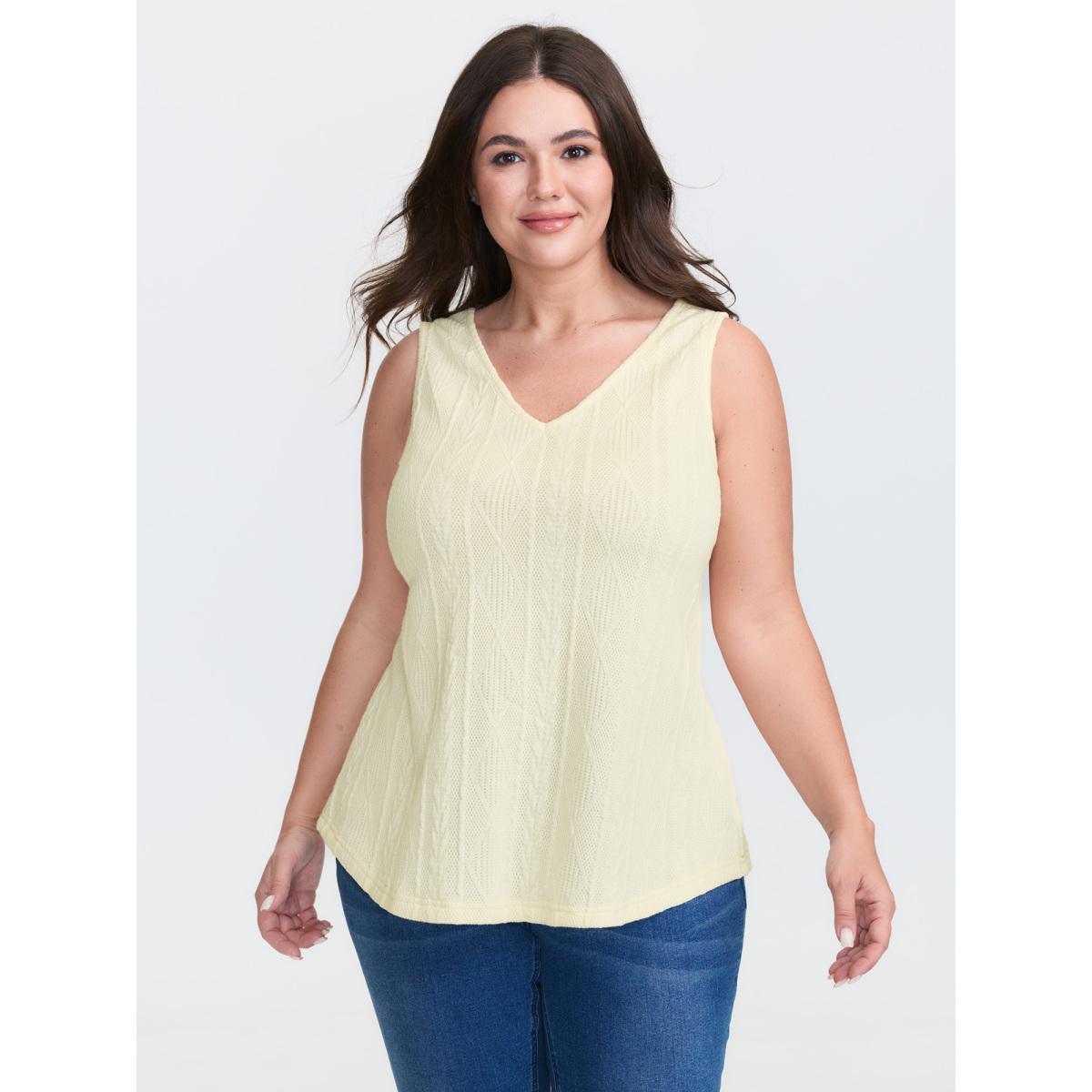 Plus Size Textured Loop V-Neckline Tank Top Women Stone Eyelet V-neck Everyday-Casual Tank Tops Camis BloomChic 26/4X