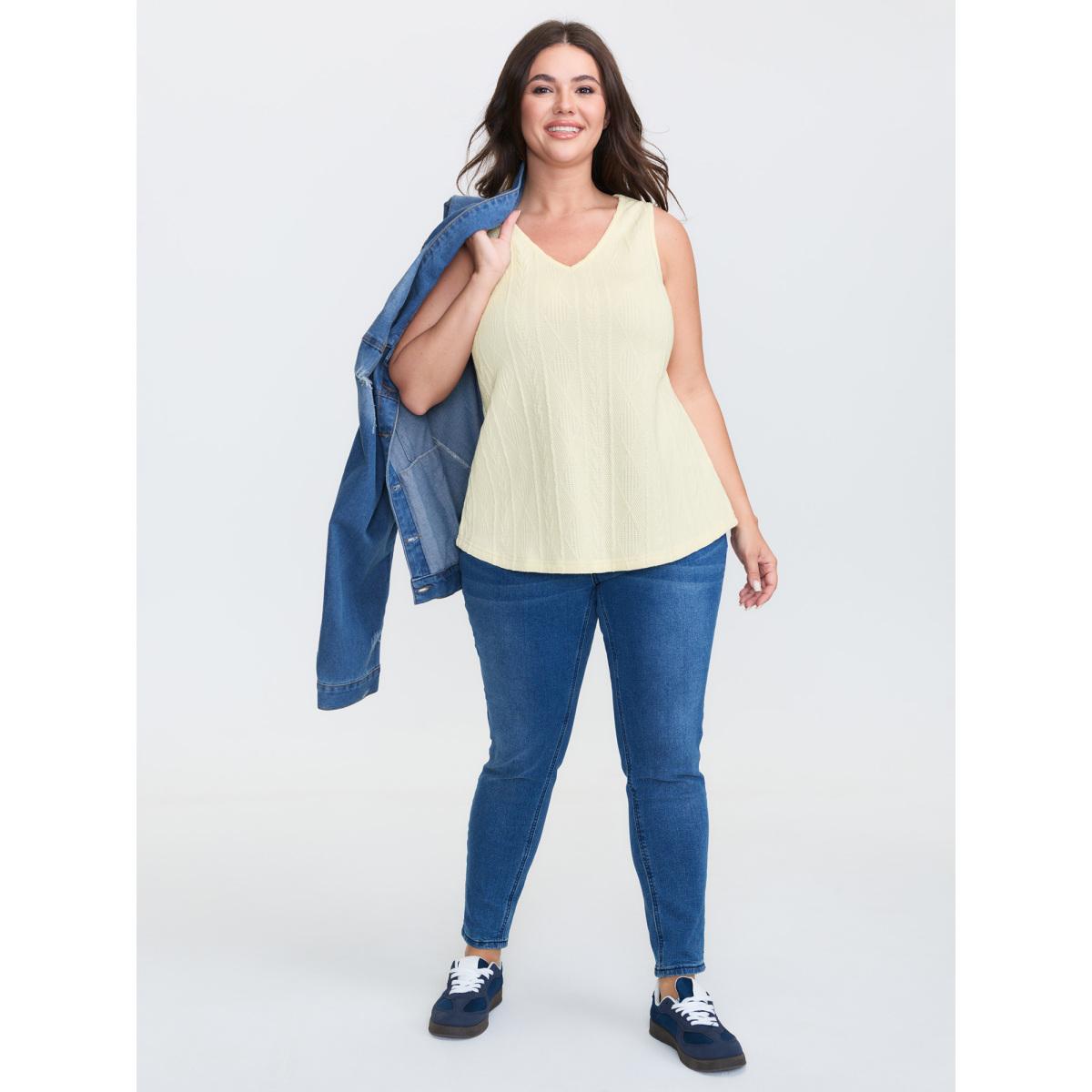 Plus Size Twisted Textured V-Neck Tank Top Women Ivory Leisure Texture V-neck Casual Tank Tops Camis BloomChic 30/6X