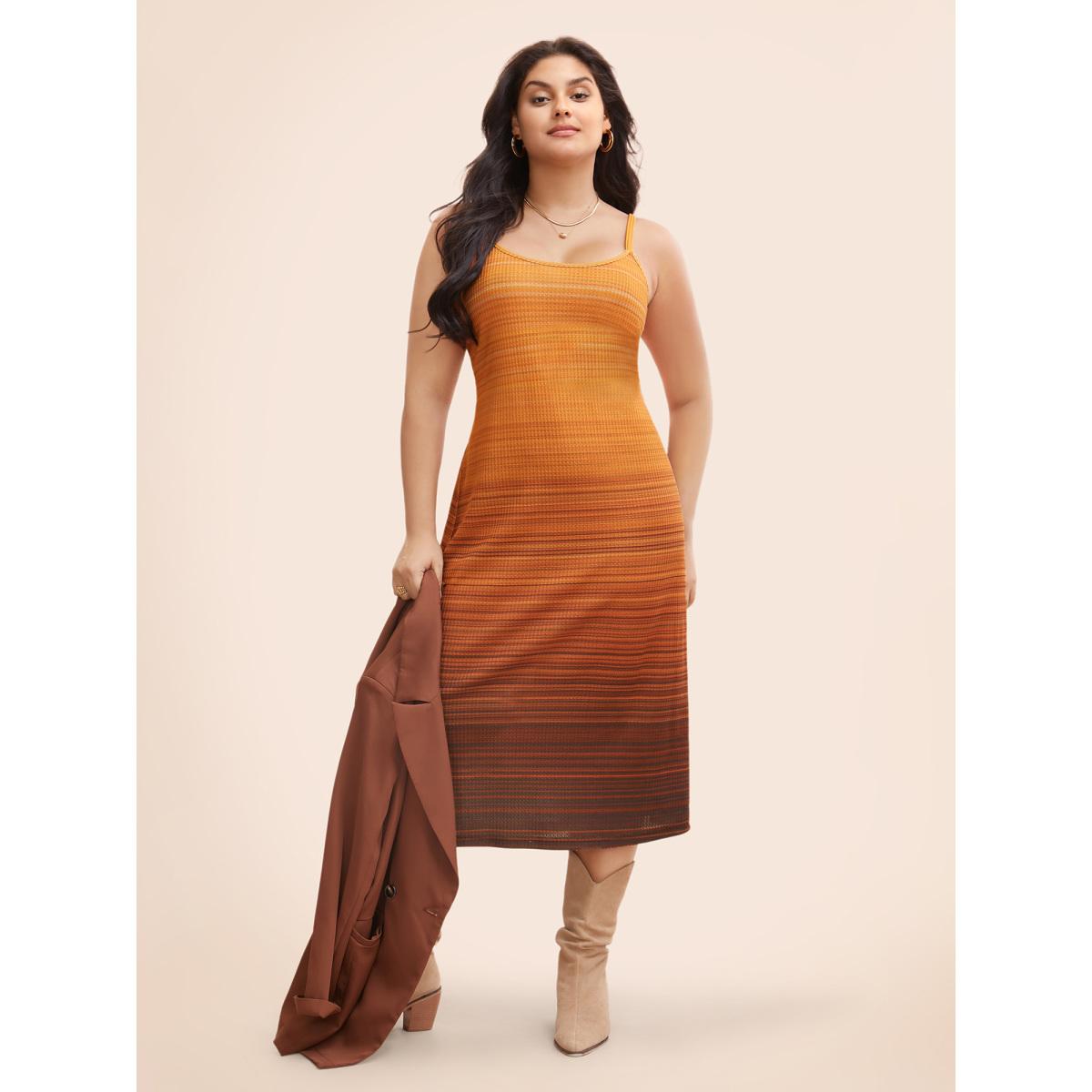 Plus Size U Neck Ombre Adjustable Straps Dress Maroon Women Casual Texture U-neck Sleeveless Curvy BloomChic 22-24/3X