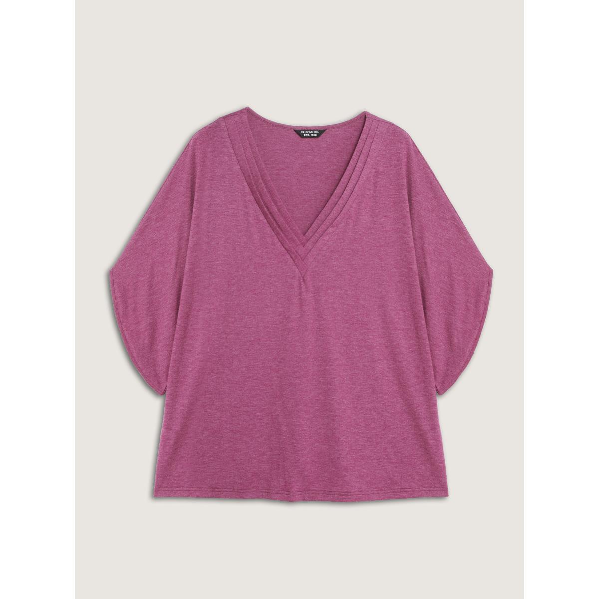 Plus Size V-Neck Plicated Detail Bat Sleeve T-Shirt Deeppurplered Women Leisure V-neck Casual T-shirts BloomChic 28/5X Product Image