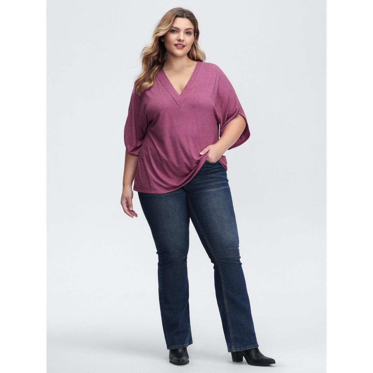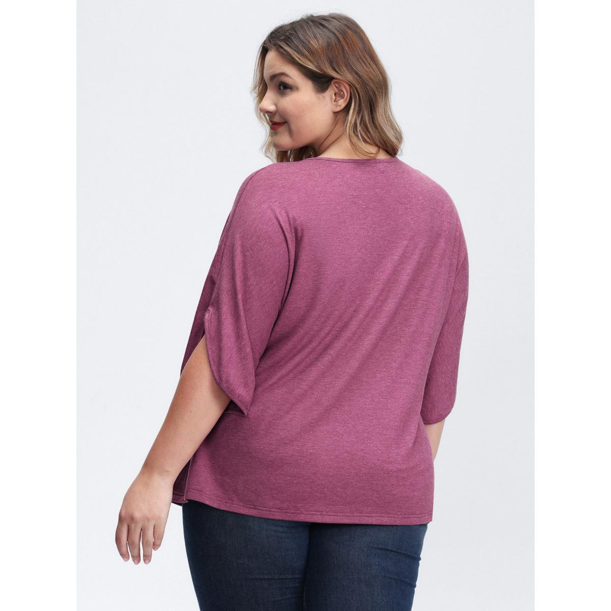 Plus Size V-Neck Plicated Detail Bat Sleeve T-Shirt Deeppurplered Women Leisure V-neck Casual T-shirts BloomChic 28/5X