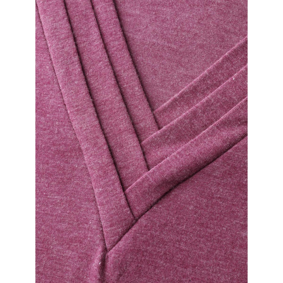 Plus Size Solid Drawstring Heather V Neck T-shirt Purple Women Casual Plain Plain V-neck Dailywear T-shirts BloomChic 18-20/2X