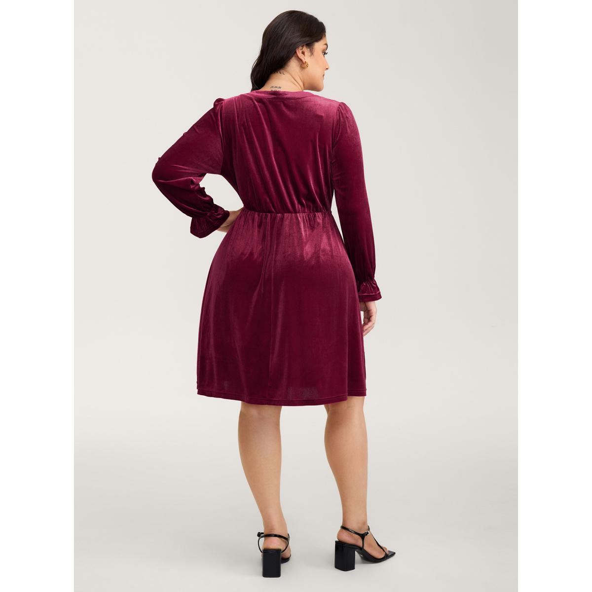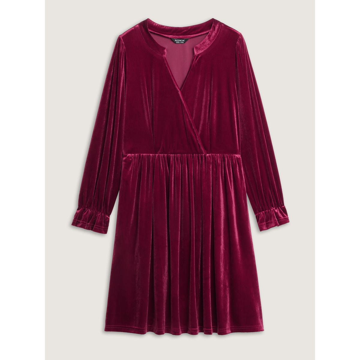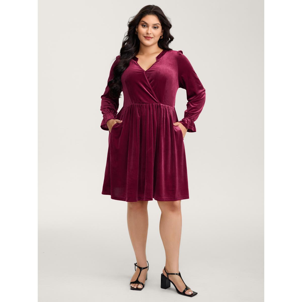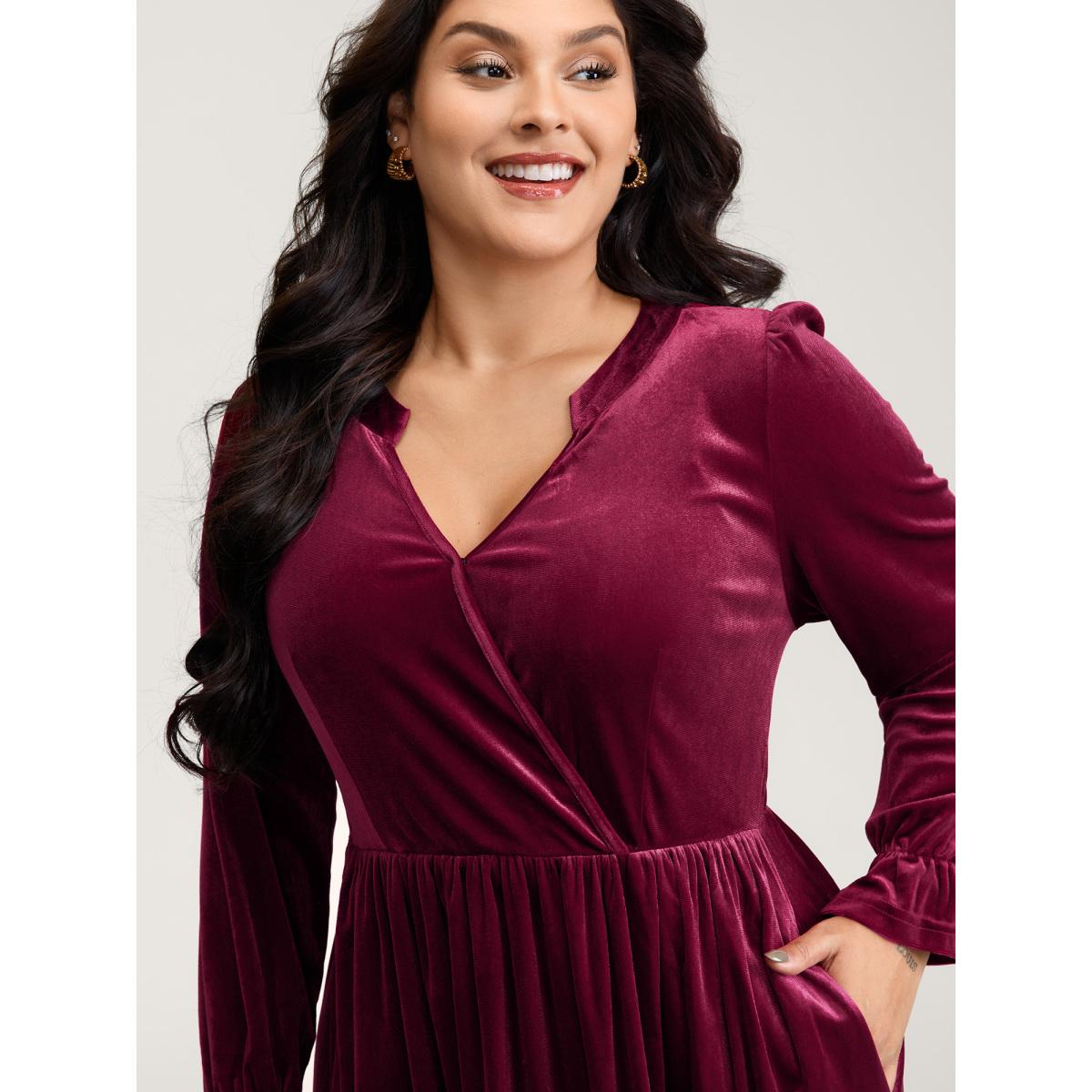 Plus Size Velvet Pockets Wrap Neck Midi Dress Burgundy Women Timeless Notched collar Long Sleeve Curvy BloomChic 18-20/2X