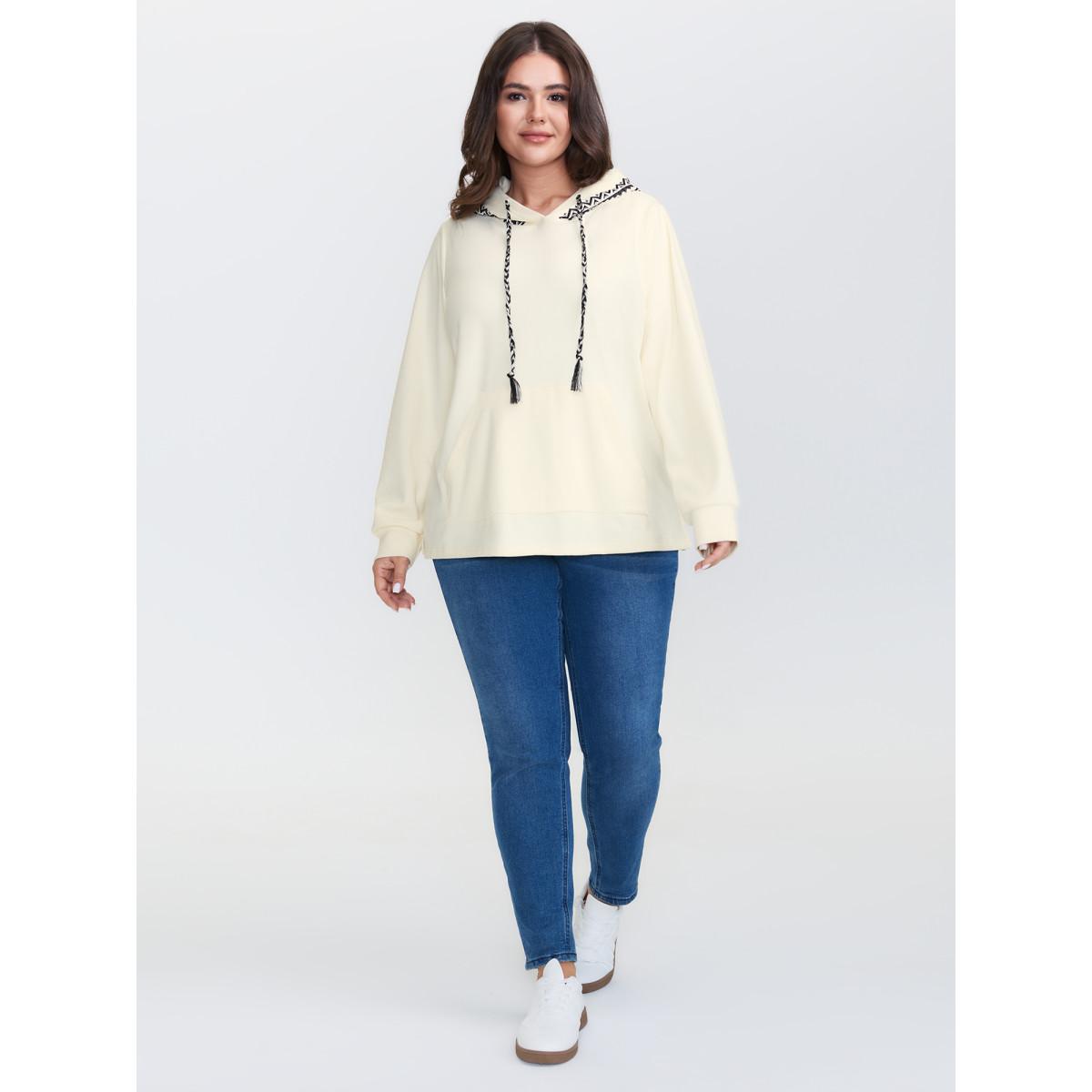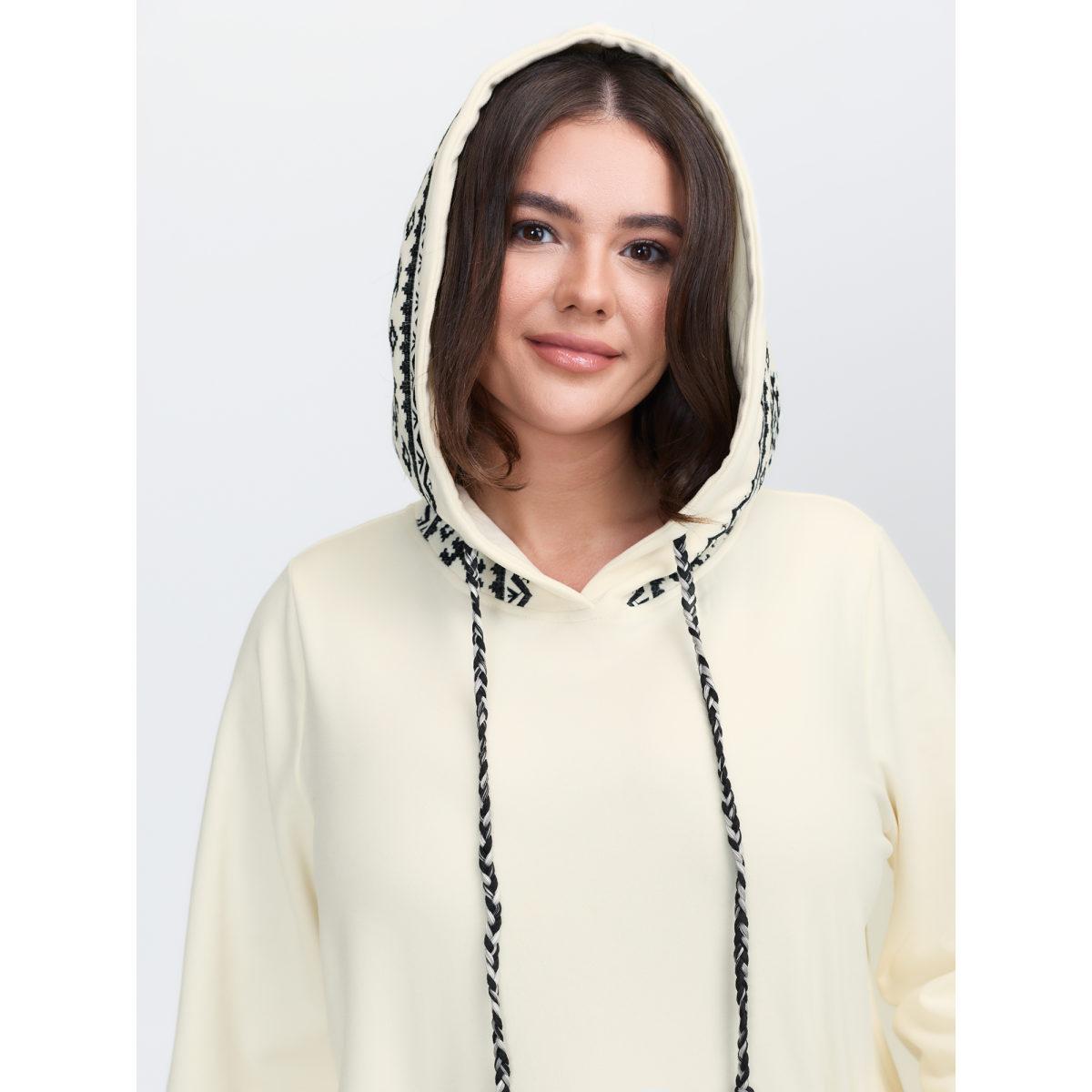 Plus Size Velvety Geometric Embroidery Hoodie Women Ivory Leisure Embroidered Hooded Casual Sweatshirts BloomChic 14-16/1X Product Image