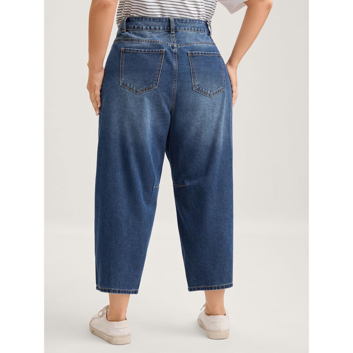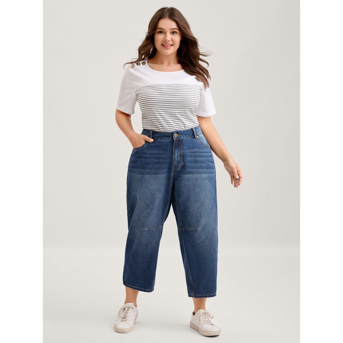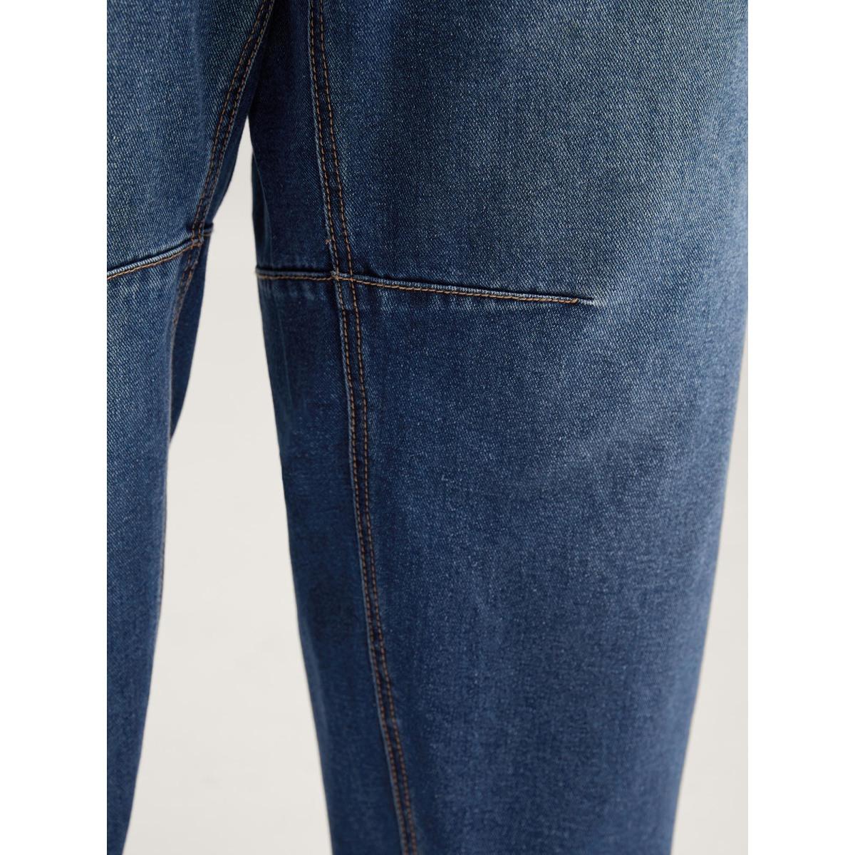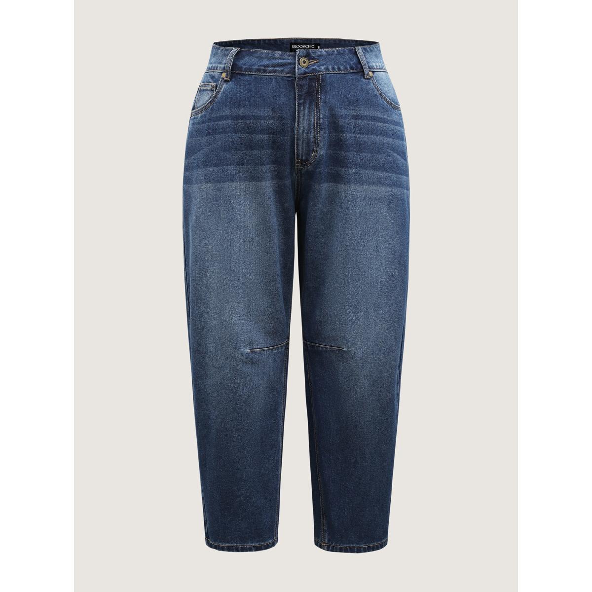 Plus Size Wash Vintage Pockets Haren Jeans Women Midblue Leisure Topstitching Medium stretch Slanted pocket Jeans BloomChic 30/6X