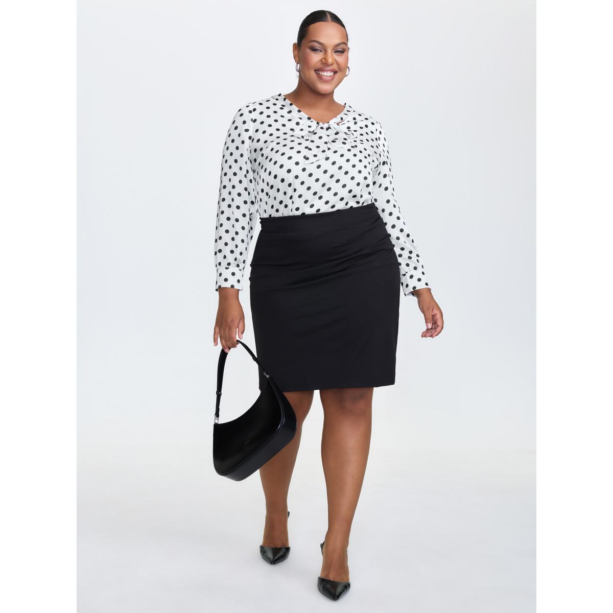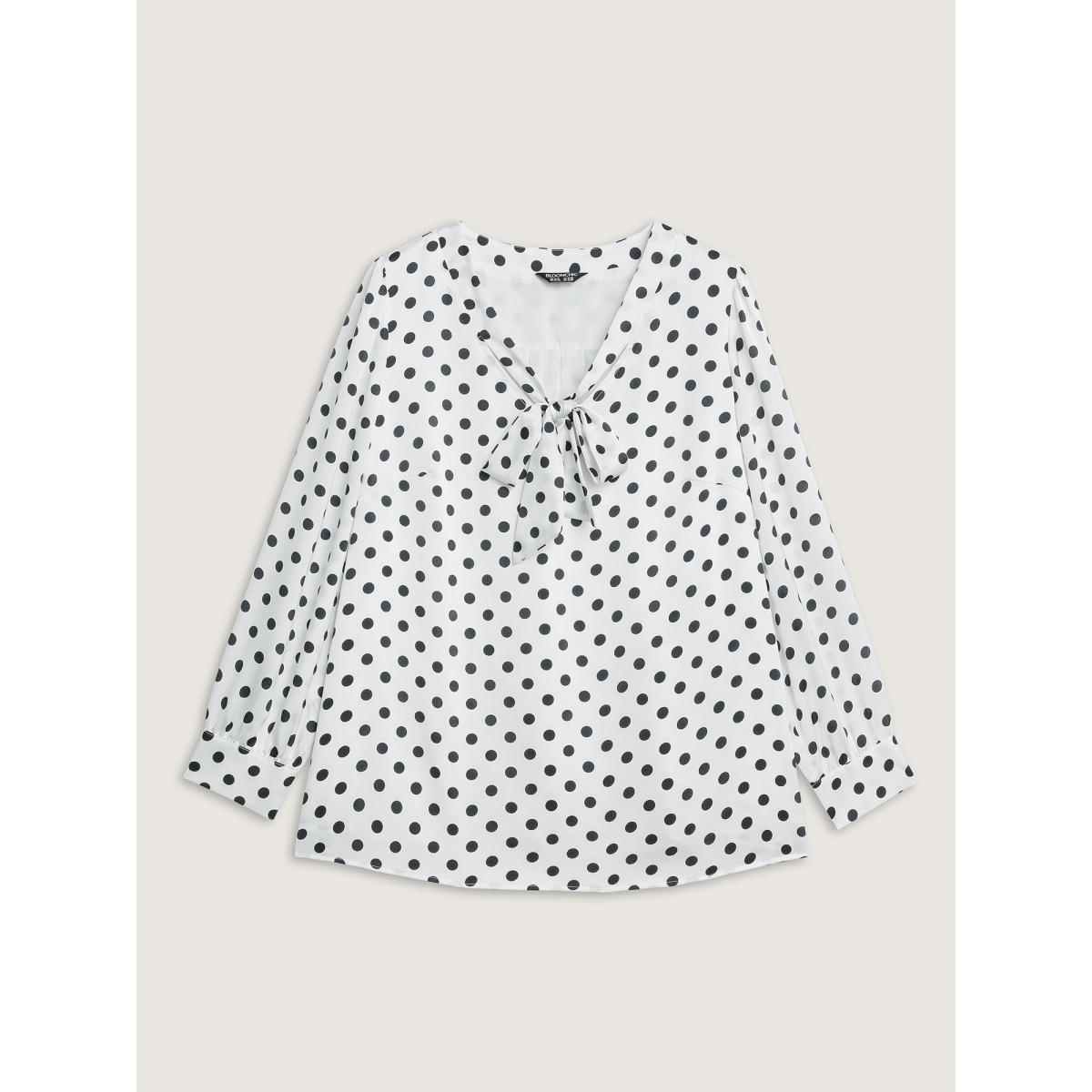 Plus Size WhiteSmoke Ribbon-Tie Neckline Polka Dots Blouse Women Office Extra Long Sleeve Ribbon-tied collar Office Blouses BloomChic 22-24/3X